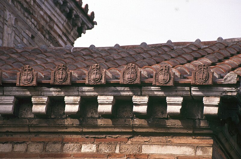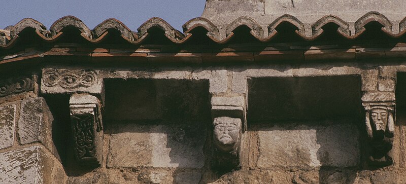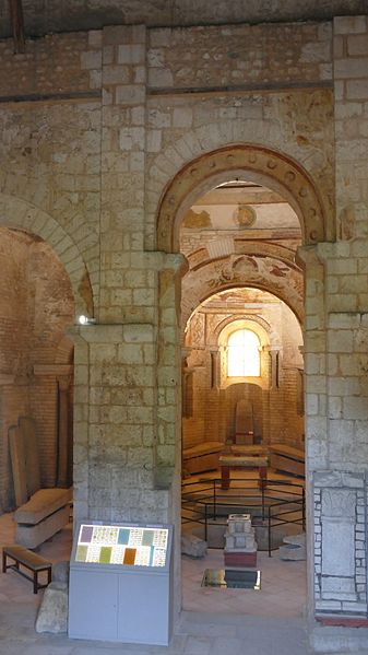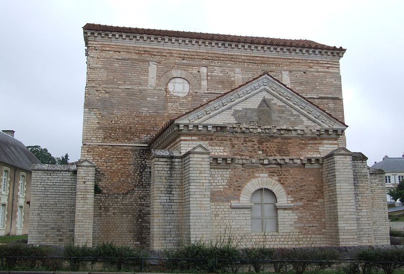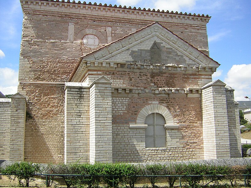 Sur le plan architectural, l’édifice — aujourd’hui réduit à une salle rectangulaire dotée de trois absides — est une référence pour l’étude de l’architecture mérovingienne : polychromie, emploi décoratif d’éléments de réemploi antiques, libre jeu des formes et richesse des parois caractérisent son esthétique. Les maçonneries de petit appareil, les tympans, rosettes et frises en marqueterie, les chapiteaux de marbre réemployés et des chapiteaux en calcaire exécutés pour le chantier participent à une vibration formelle et chromatique proche de certains monuments provinciaux romains ; à l’extérieur, frontons, tympans et pilastres portent des décors végétaux et géométriques et des modillons sculptés.
