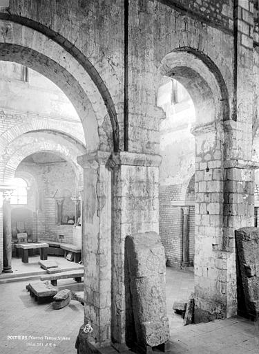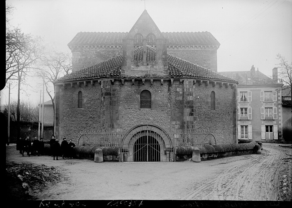 Désaffecté en 1791 et mis en vente comme bien national, il est retiré de la vente en 1796 et devient propriété de l’État ; après des usages provisoires, dont un atelier de fondeur, il est rendu au diocèse en 1822 puis, menacé par un projet de voie urbaine, acquis par l’État en 1834 et confié en gestion à la Société des Antiquaires de l’Ouest en 1836. Les interventions archéologiques et restaurations se succèdent du début du XIXe siècle à l’époque contemporaine : découverte d’une piscine octogonale en 1803, travaux et relevés à partir de 1835, campagnes de Joly-Leterme, Formigé, Camille de La Croix, François Eygun et études récentes menées entre 1995 et 2011. Ces recherches ont permis d’identifier une succession d’états et d’alimenter des interprétations diverses sur la chronologie et la fonction originelle du monument.
