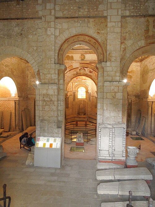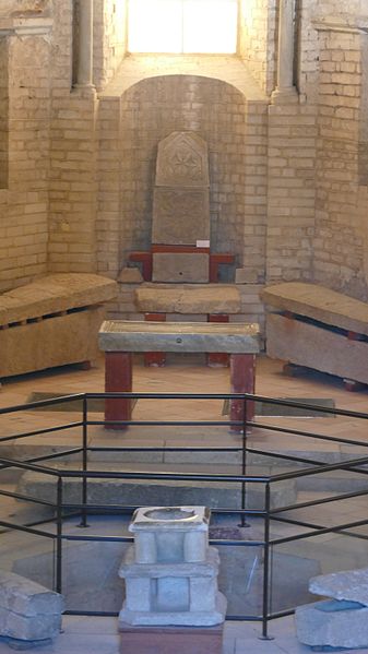 La première moitié du VIIe siècle voit la surélévation des murs, la destruction de trois annexes, l’installation d’oculi et la décoration du mur médian par trois arcs en plein cintre ; frontons et décors sculptés d’inspiration classique complètent alors l’ensemble. Après un incendie qui endommagea la cathédrale primitive, la salle occidentale fut reconstruite à pans coupés et la partie ouest réaménagée à l’époque romane. À l’époque carolingienne, quand les baptêmes se pratiquent différemment, le baptistère est converti en église et la première marche de la piscine est comblée. L’édifice apparaît dans les sources en 1096, est de nouveau mentionné lors d’une demande de réparation en 1450, et reçoit des décors peints aux XIe-XIIIe siècles. Devenu paroisse à l’époque moderne, il conserve des registres de mariages et d’inhumations à partir de 1638.