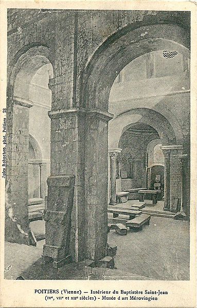 Le musée lapidaire installé dans le baptistère depuis 1838 réunit une centaine d’objets, principalement des sarcophages mérovingiens en pierre locale souvent décorés d’une croix à trois traverses propre à l’« école du Poitou », ainsi que des moulages, des éléments décoratifs et un autel en marbre blanc. Classé parmi les Monuments historiques, le baptistère Saint-Jean reste un lieu clé pour la compréhension de l’histoire religieuse, artistique et archéologique de Poitiers.