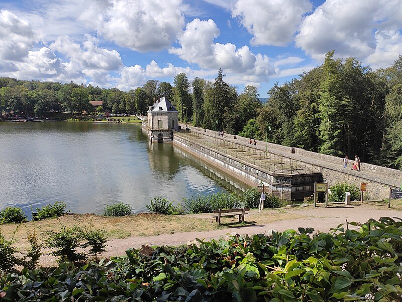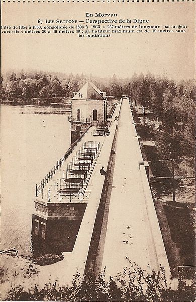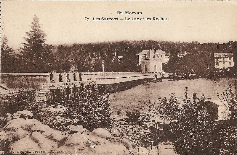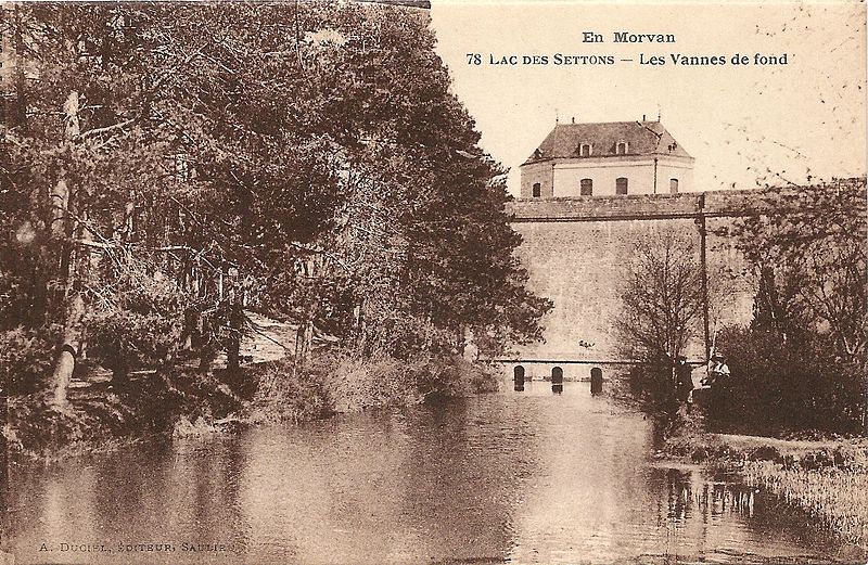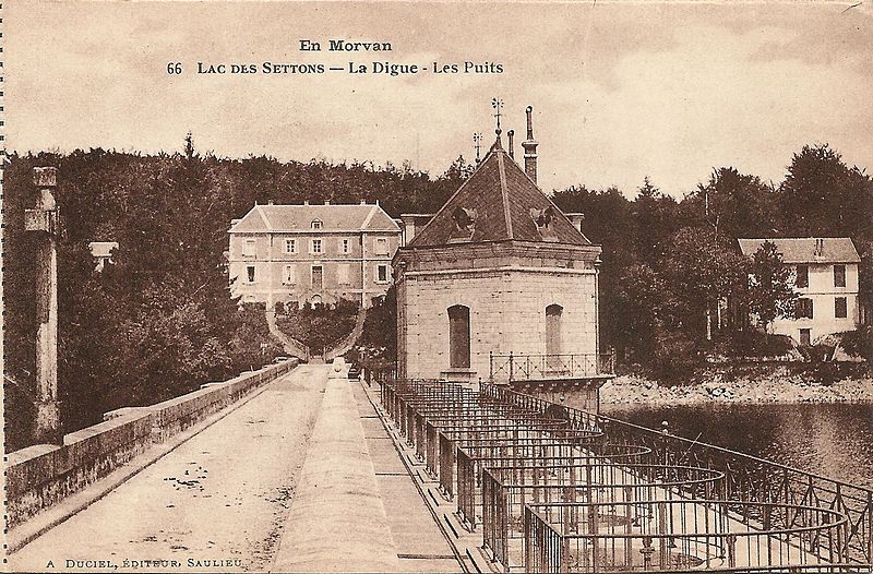 Le barrage du lac des Settons, situé au cœur du parc naturel régional du Morvan dans la Nièvre, retient un lac artificiel alimenté principalement par la Cure et intégré aux Grands lacs du Morvan. Le plan d'eau couvre environ 360–366 hectares, a un périmètre supérieur à 13 km, une profondeur moyenne de 6 m et se trouve à une altitude d'environ 586 m. Il a été conçu au XIXe siècle pour réguler les cours de l’Yonne et de la Cure, prévenir les crues de la Seine et faciliter le flottage du bois vers Paris. Les travaux débutèrent en 1854 ; l’ouvrage fut inauguré et béni en 1858 et une nouvelle tranche de travaux intervint en 1861 après des attaques des eaux. La maison du garde, destinée à loger les ingénieurs, fut construite dès 1848. Construite en blocs de granite selon le principe des « barrages de force », la digue mesure 267 m de long, 20 m de haut et 20 m à sa base ; elle s’appuie au sud sur la hauteur d’Outre-Cure et au nord sur celle des Ponceaux. Trois épanchoirs et des vannes de fond, manœuvrées depuis la salle des machines et la chambre de manœuvres au-dessus de la tour de prise d’eau, permettent de contrôler l’écoulement vers la Cure. En aval, des réservoirs à poissons furent installés pour la pisciculture et le terrain a été aménagé en parc accessible au public ; une maison pour le cantonnier et sa famille fut édifiée en 1888. Après la rupture de la digue du lac du Bouzey en 1895, l’ouvrage fut renforcé par un mur de garde en amont, dit « masque de Levy », qui double la digue, condamne un épanchoir et comprend 35 puits de drainage pour récupérer les infiltrations ; une travée en béton armé fut par ailleurs expérimentée dans ce mur. Le flottage du bois, activité traditionnelle du Morvan et principal motif de la construction, déclina fortement avec l’arrivée du charbon et cessa définitivement en 1924. Classé en 1937, le site s’est progressivement orienté vers les loisirs et le tourisme, avec l’ouverture d’un premier camping et le développement d’hôtels au milieu du XXe siècle. À partir de 1967 le lac connut des problèmes d’eutrophisation et de prolifération d’algues ; un bilan environnemental dressé en 1989 fut défavorable et une étude de 1991 recommanda un programme d’assainissement. Aujourd’hui le barrage sert surtout à la régulation des cours d’eau et le lac accueille de nombreuses activités de loisirs : une base nautique propose voile, planche à voile, dériveur, catamaran, canoë, aviron et ski nautique, tandis que des sentiers balisés conviennent au VTT, à la randonnée pédestre et équestre, incluant des itinéraires de grande randonnée qui traversent la commune. La pêche est très pratiquée ; le lac, classé en deuxième catégorie, abrite truites fario, saumons de fontaine, brochets, carpes, perches et poissons blancs, et des parcours spécifiques, dont des nocturnes pour la carpe, sont ouverts certaines saisons. La gestion piscicole et le rempoissonnement sont assurés par l’Association de pêche et de protection du milieu aquatique du Haut-Morvan. Des découvertes archéologiques ont mis au jour plusieurs centaines de silex taillés sur l’îlot Cerney, pour la plupart mésolithiques, provenant de sources variées parfois lointaines, ainsi que des pièces attribuées à la fin du Néolithique; une pointe de la fin du Néolithique a été retrouvée près du lieu-dit les Branlasses au sein d’une structure circulaire partiellement bordée de murs en pierres sèches, mais les fouilles furent trop peu précises pour dater cette structure avec certitude.