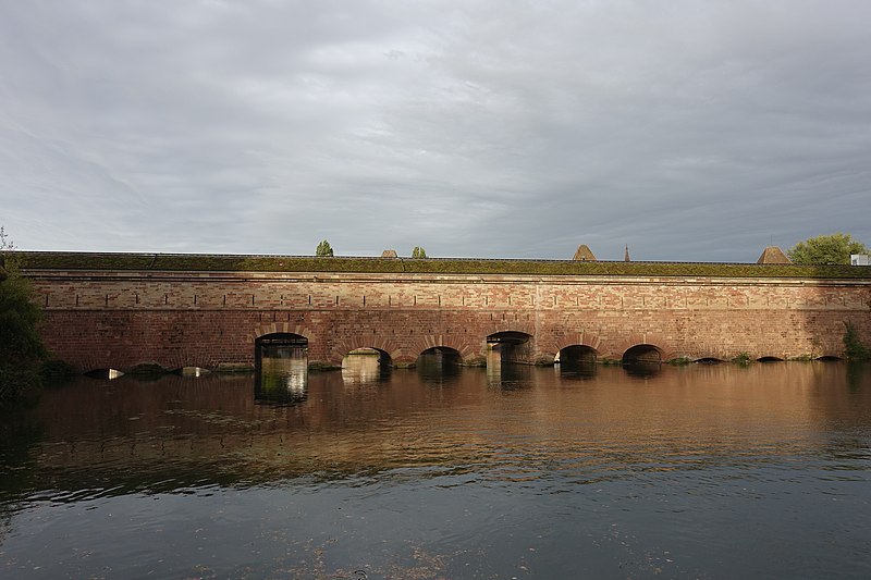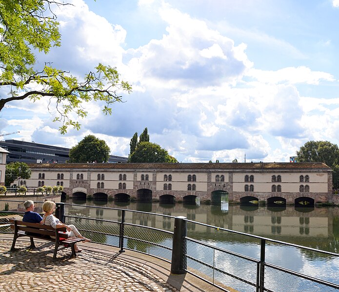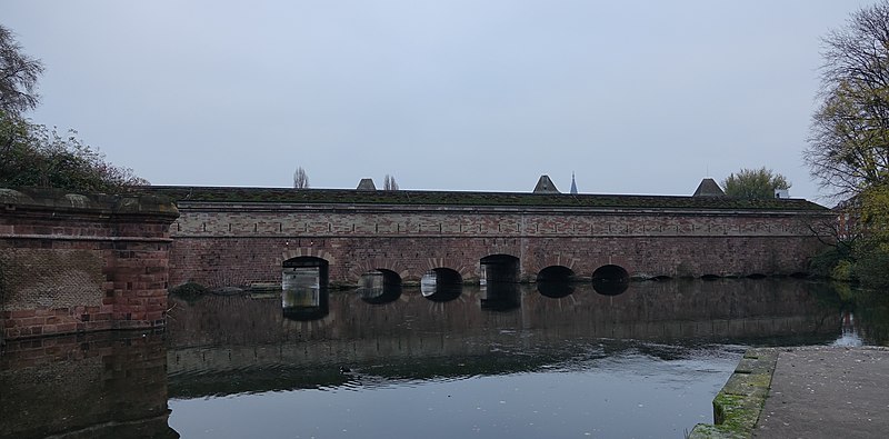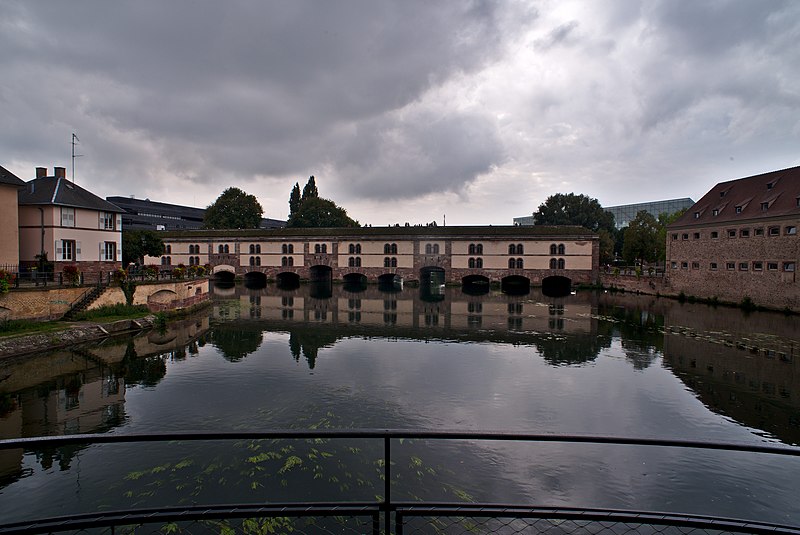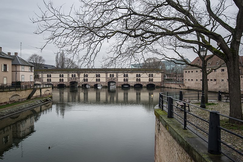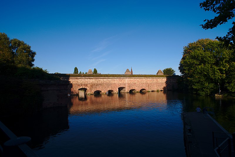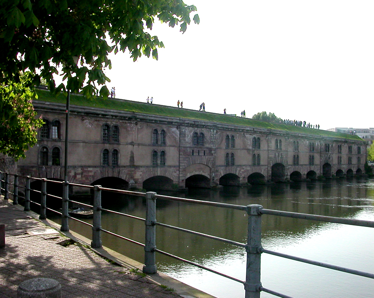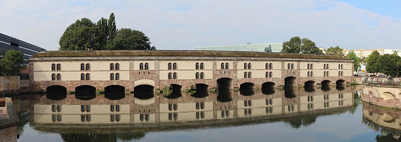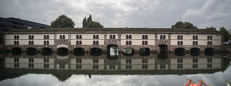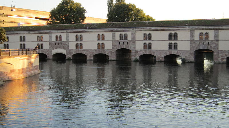 Le barrage Vauban, aussi appelé Grande Écluse de fortification et parfois désigné sous les noms d’écluse aux farines ou pont-casemate, est un pont‑écluse classé monument historique situé à Strasbourg. Construit de 1681 à 1688 par l’ingénieur Tarade d’après les plans de Vauban, il a été édifié car l’entrée de l’Ill dans le centre historique constituait un point faible des défenses. Face aux progrès de l’artillerie, les anciens ponts couverts ne suffisaient plus et l’on décida d’implanter, une centaine de mètres en amont, une construction capable de répondre aux exigences de la guerre moderne. Baptisé « Grande Écluse », le barrage pouvait, par la fermeture de ses vannes, élever le niveau de l’Ill et inonder les terrains situés au sud de la ville, transformant champs et vergers en marécages destinés à entraver l’ennemi. Il fut utilisé lors du siège de Strasbourg en 1870, provoquant l’inondation des quartiers en amont. Après 1870, les autorités allemandes élevèrent le barrage d’un étage et le recouvrirent de terre et de gazon. En 1966, la ville aménagea une terrasse panoramique sur son toit. Le barrage Vauban est inscrit au titre des monuments historiques depuis le 18 mai 1971. En 2011, il a été l’objet d’une étude archéologique du bâti menée par le Pôle d’Archéologie Interdépartemental Rhénan sous la direction de Maxime Werlé, complétée par une étude des archives.