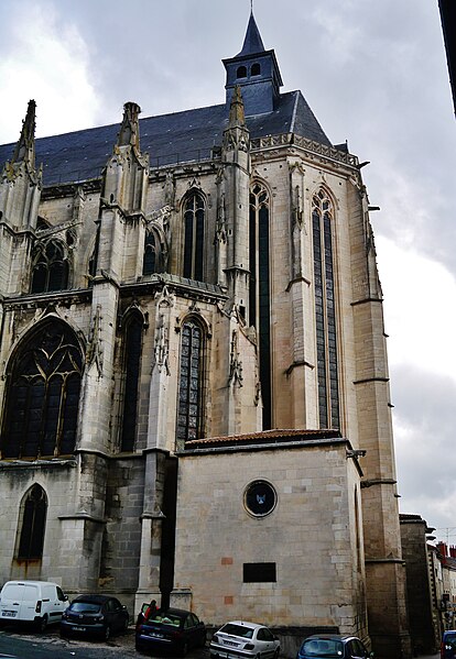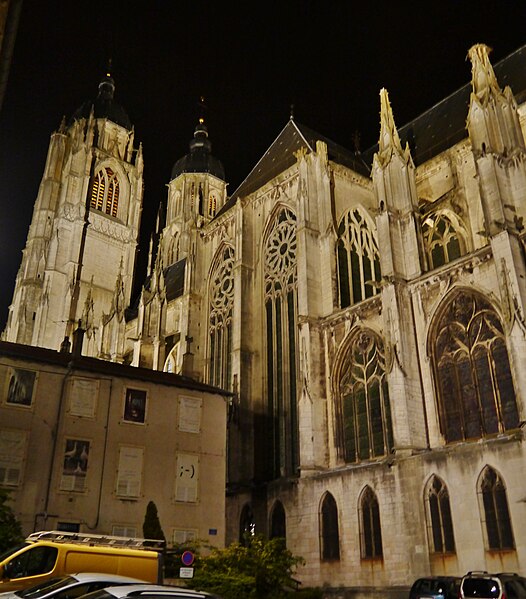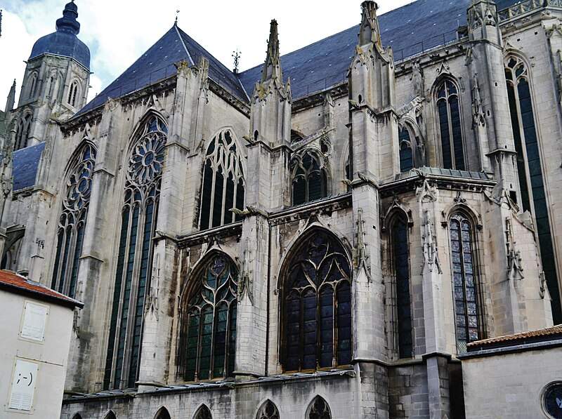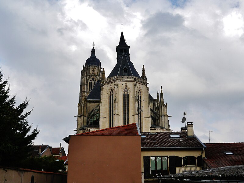 Orientée du nord‑ouest au sud‑est, la basilique présente les proportions et les volumes d'une cathédrale gothique flamboyante : elle mesure 71,50 mètres de long sur 31 mètres de large, la nef culminant à 30 mètres, et deux colonnes du transept atteignant 21,50 mètres, l'une d'elles étant torsadée pour corriger un faux aplomb ; les deux tours, coiffées de clochers à bulbes, s'élèvent respectivement à 85 et 87 mètres. La construction relativement rapide et fidèle aux plans initiaux confère à l'édifice une grande homogénéité de style ; l'influence champenoise est perceptible dans le chœur et la coursière, tandis que la tradition lorraine apparaît dans l'absence de déambulatoire. Le transept, original, se compose en fait de deux nefs fusionnées et s'affirme en élévation par la hauteur et l'élancement de ses colonnes. L'axe de la nef présente une déviation d'environ six degrés, sans explication unique mais vraisemblablement liée aux contraintes du terrain, et la seconde phase du chantier, engagée en 1515, a utilisé des travées non orthogonales pour préserver l'harmonie visuelle. Côté nord, la déclivité du terrain a permis d'ouvrir, sous les chapelles latérales, six loges commerçantes donnant sur la rue des Fonts.