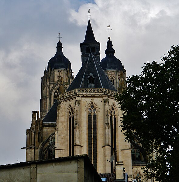 La basilique de Saint-Nicolas-de-Port, située en Meurthe-et-Moselle près de Nancy, est un édifice catholique de style gothique flamboyant élevé aux XVe et XVIe siècles par René II, duc de Lorraine et de Bar, en action de grâce pour la victoire de Nancy. Selon la tradition, une phalange de saint Nicolas apportée de Bari par le chevalier Aubert de Varangéville vers 1087 a suscité l'implantation d'un lieu de culte et fait de Saint-Nicolas-de-Port un important pèlerinage dès le XIIe siècle. La relique, conservée aujourd'hui dans un bras reliquaire du XIXe siècle, a attiré des dons de souverains et de familles lorraines et a fait du saint le patron des Lorrains. Divers récits légendaires se rattachent au sanctuaire, notamment la libération miraculeuse de Cunon de Linange et le vœu de la reine Marguerite de Provence, relaté par Jean de Joinville, qui fit don d'une nef d'argent. La renommée du lieu perdura au fil des siècles, marquée aussi par une vision attribuée à la bienheureuse Barbe Acarie en 1602.
