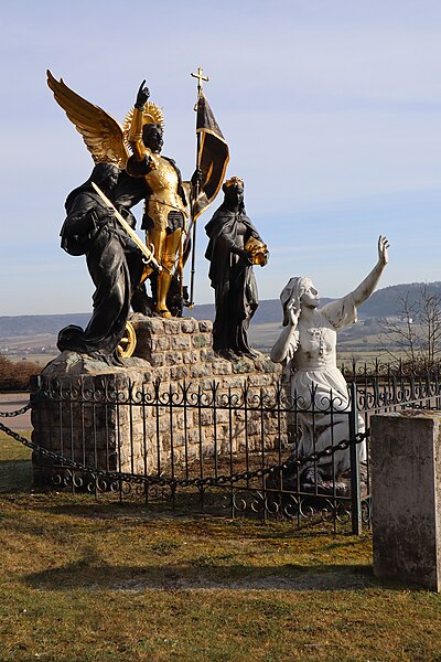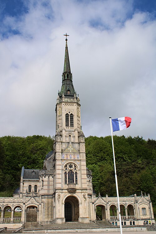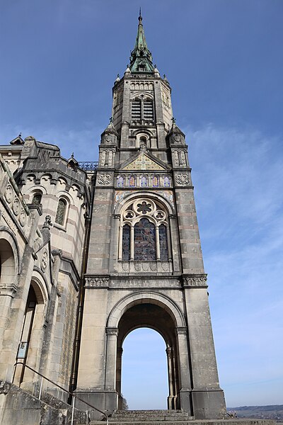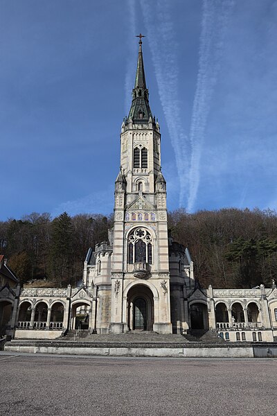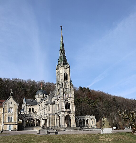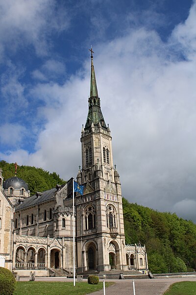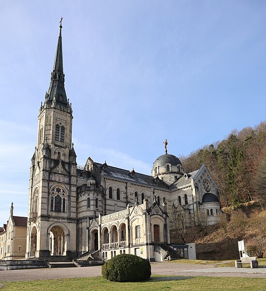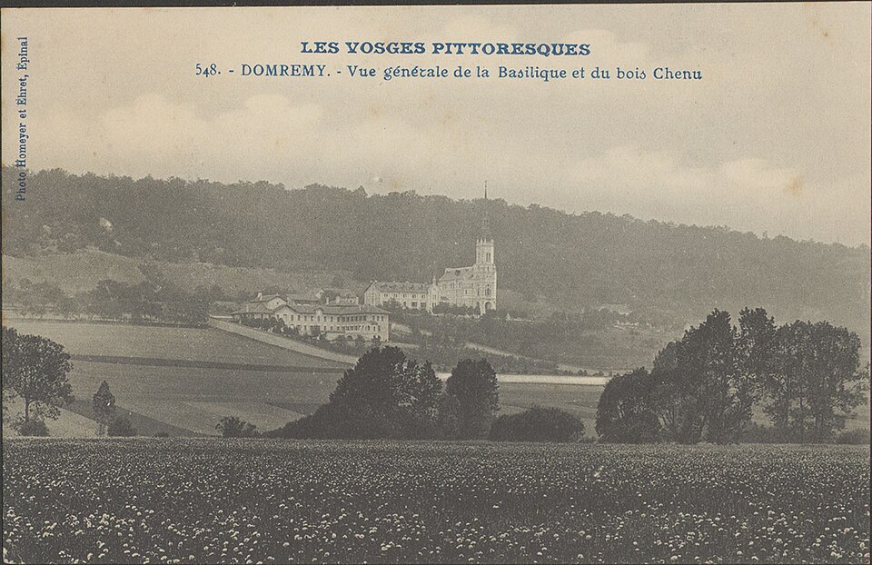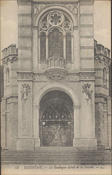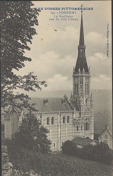 La basilique Sainte-Jeanne-d'Arc, dite du Bois-Chenu, domine le coteau forestier de Domrémy-la-Pucelle, village natal de la sainte, dans les Vosges. Édifiée à l'emplacement où Jeanne d'Arc aurait entendu des voix, sa construction a débuté en 1881 et s'est poursuivie jusqu'en 1934 ; les travaux furent initiés d'après les plans de Paul Sédille et, après son décès en 1900, pris en charge par Georges Demay puis par ses fils Émile et René Demay jusqu'en 1926. Conçue sur deux niveaux, la basilique présente une crypte au niveau du parvis et une nef à l'étage supérieur, un plan en croix latine ponctué d'un clocher-porche en façade et d'un dôme à la croisée du transept. L'architecture se caractérise par une polychromie obtenue par l'alternance du granit rose des Vosges et de la pierre blanche d'Euville ; la charpente et le plafond sont peints. De vastes mosaïques, réalisées entre 1891 et 1934 d'après des cartons de Charles Lameire, Lionel Royer, Pierre Dié-Malet et Henri Pinta, ornent l'édifice, qui abrite également huit grandes toiles de Lionel Royer illustrant la vie de la sainte. La crypte, dédiée à Notre-Dame des Armées, renferme la statue de Notre-Dame de Bermont devant laquelle Jeanne avait l'habitude de prier. Sur le parvis se dressent plusieurs statues, dont Jeanne s'offrant à Dieu par le sculpteur Couteau, offerte en 1946 par le gouvernement du Québec, Jeanne et ses voix d'André-Joseph Allar (1894) et des représentations en fonte de 1911 des parents de Jeanne, Jacques d'Arc et Isabelle Rommée. Deux toiles d'Alphonse Monchablon sur le thème du sacrifice de l'armée de terre et de la marine pendant la guerre de 1870 se trouvent dans la crypte. La sonnerie comprend aujourd'hui cinq cloches de volée : quatre cloches coulées en 1897 par Farnier de Robécourt (3 440 kg) et une cinquième ajoutée en 1926 en souvenir des noces de diamant sacerdotales de monseigneur Alphonse-Gabriel Foucault, dont les marraines furent les filles du donateur Georges Farnier. La basilique possède un orgue à tuyaux de deux claviers et pédalier construit par la maison Jacquot-Lavergne de Rambervillers entre 1942 et 1944, inauguré le 10 avril 1944 par André Marchal, qui participa à sa composition. Béatifiée en 1909 puis canonisée en 1920, Jeanne d'Arc fut proclamée sainte patronne secondaire de la France en 1922 et l'édifice fut consacré en 1926 ; l'église reçut le titre de basilique mineure en 1939. Classée monument historique dans son ensemble par arrêté du 28 mai 2013, elle avait été inscrite par un premier arrêté le 24 juillet 2006. Illuminée chaque soir, la basilique domine la vallée de la Meuse ; son clocher sert également de point géodésique d'ordre 4 pour l'IGN dans le système NTF.