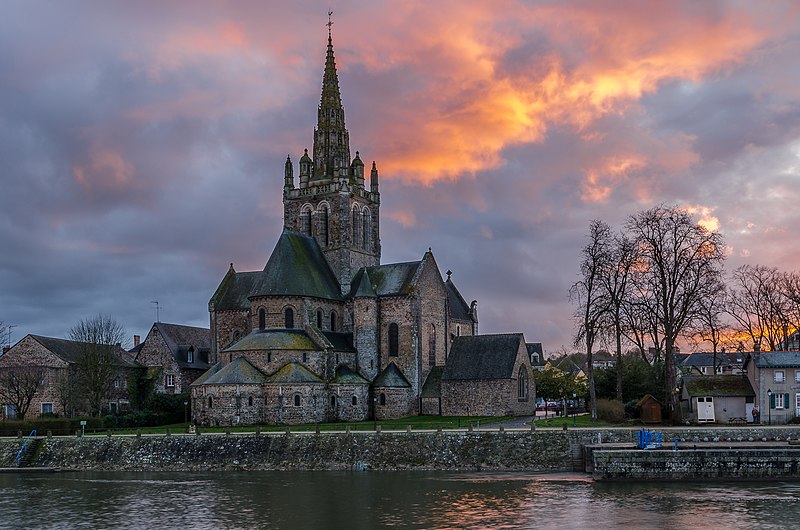 L'église Notre‑Dame d'Avesnières, élevée au rang de basilique mineure en 1898, se situe à Laval, sur la rive droite de la Mayenne, et fait partie de la paroisse La Trinité - Avesnières - Cordeliers. Elle est mentionnée comme ancienne dès le début du XIe siècle et aurait été restaurée vers 1040‑1050 par Yves de Saint‑Berthevin avant d'être donnée, vers 1073, aux bénédictines du Ronceray d'Angers qui y établissent un prieuré tout en maintenant sa fonction paroissiale. Les religieuses entreprennent une reconstruction importante au cours de la seconde moitié du XIIe siècle. L'édifice souffre d'incendies et de pillages lors de la prise d'Avesnières par les Anglais en 1429 ; les premières travées de la nef sont partiellement détruites et ne sont relevées qu'en 1478, tandis que les sœurs se réfugient définitivement à Angers. La réputation de pèlerinage se développe après la guerre de Cent Ans autour d'une statue vénérée, dite Madone d'Avesnières, qui attire de nombreux donateurs et permet de financer des restaurations et constructions, notamment l'élévation du clocher entre 1534 et 1538 par Jamet Nepveu. La flèche, en mauvais état au XIXe siècle, est reconstruite à l'identique par l'architecte Lambert de 1874 à 1876, puis les deux premières travées de la nef et la façade occidentale sont refaites entre 1883 et 1887 par E. Lambert et Eugène‑Joseph Hawke. Classée parmi les premiers monuments historiques en 1840, la basilique a connu plusieurs cérémonies et processions marquantes au XIXe et XXe siècles, dont le couronnement de la Vierge et son élévation au titre de basilique mineure.