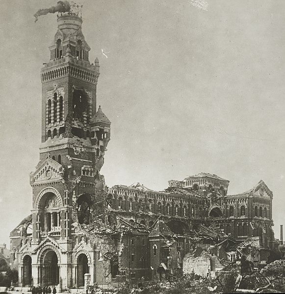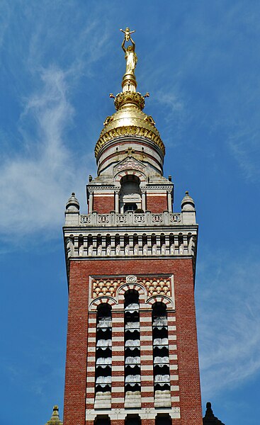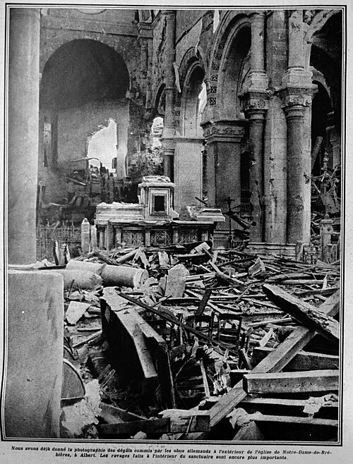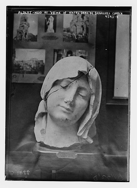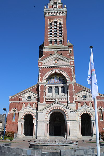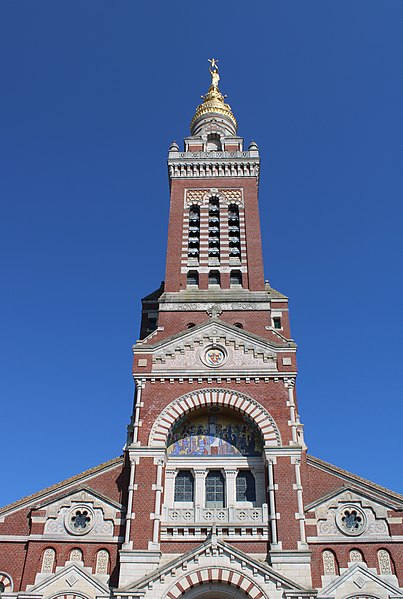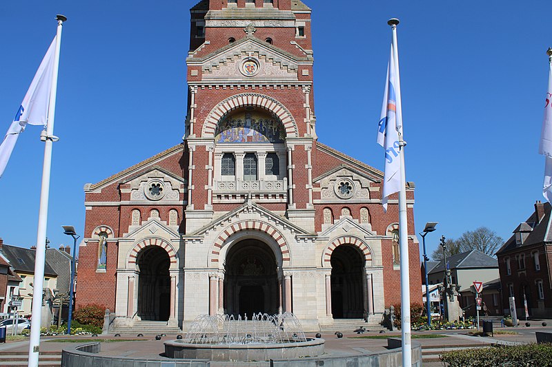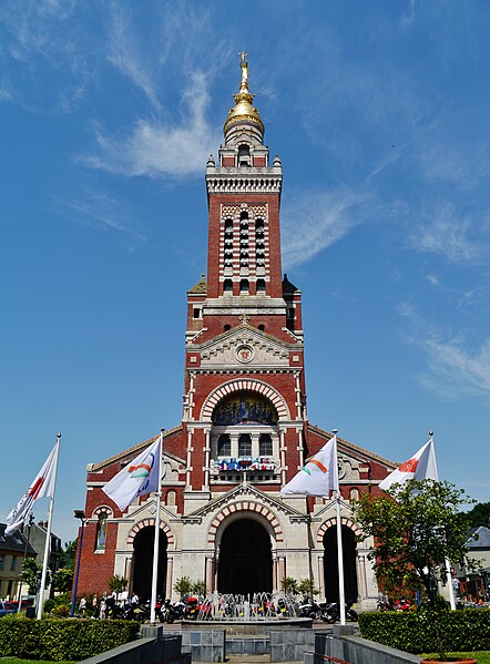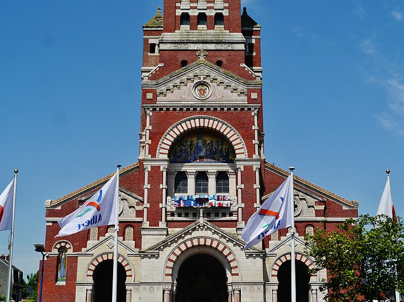 Notre-Dame-de-Brébières est un haut lieu de pèlerinage marial en Picardie, attesté depuis les XIe–XIIe siècles et connu d’autant plus avec le renouveau de la dévotion mariale au XIXe siècle. À la fin du XIXe siècle, sous l'impulsion du curé-doyen Anicet Godin, une nouvelle église fut édifiée pour remplacer l'ancienne paroissiale devenue trop petite ; les plans sont de l'architecte Edmond Duthoit (1884–1897). En 1895, Léon XIII conféra à l'édifice le titre de basilique mineure et le qualifia de « Lourdes du Nord ». Influencé par ses voyages au Proche et au Moyen-Orient, Duthoit combina des références variées : le clocher-porche évoque un minaret de Tlemcen, la corniche de l'abside rappelle Monreale en Sicile, et l'ensemble mêle éléments de basiliques chrétiennes, d'architecture byzantine et d'églises romanes de pèlerinage. L'édifice en brique adopte un plan inspiré des premières basiliques chrétiennes : une nef de cinq travées flanquée de collatéraux ouvrant sur des chapelles, une grande abside surélevée encadrée d'absidioles et une croisée du transept surmontée d'une tour-lanterne. La façade présente un porche à trois portails sous un clocher-porche couronné d'un dôme portant une Vierge dorée de six mètres revêtue de 40 000 feuilles d'or ; une galerie extérieure offre un belvédère sur la ville. La basilique mesure environ 70 mètres de long, 35 mètres de large au transept et présente une hauteur sous plafond de 23 mètres. Durant la Première Guerre mondiale, l'édifice fut gravement endommagé : en 1915 un obus inclina la statue de la Vierge, image devenue légendaire et largement diffusée par les soldats, puis la basilique fut anéantie lors des offensives de 1918. La reconstruction, conduite par Louis Duthoit entre 1927 et 1931, a restitué l'architecture dans ses grandes lignes, la décoration intérieure n'ayant été restituée que partiellement. Le décor associe mosaïques, peintures murales et vitraux : les mosaïques ont été dessinées par Albert Polart et Le Breton et réalisées par Jean Gaudin, les peintures murales sont de Victor-Ferdinand Bourgeois et les vitraux figurés de Jacques Gruber. Dans l'abside, la mosaïque du Couronnement de la Vierge, initialement réalisée par Giandomenico Facchina d'après Georges Grellet et détruite pendant la guerre, a été refaite d'après les dessins originels entre les deux guerres. La statue de Notre-Dame de Brebières, attribuée au XIVe siècle et exposée dans une niche de l'abside, a retrouvé ses couleurs lors d'une restauration en 2014. La grande statue qui couronnait le dôme, dite Madone aux brebis et due à Eugène Delaplanche, fut détruite ; la réplique installée pendant la reconstruction est l'œuvre d'Albert Roze, qui signe aussi de nombreuses sculptures et médaillons de la basilique. Le mobilier liturgique comprend le maître-autel, la chaire, les fonts baptismaux en marbre de Carrare, un lutrin en forme d'aigle du XVIIIe siècle et l'ombrellino. Le trésor conserve divers objets liturgiques et deux couronnes en argent incrustées de pierreries, œuvres de la maison Mellerio (1901) aujourd'hui conservées par le trésor de la cathédrale d'Amiens. L'orgue de tribune initial, réalisé par Joseph Gutschenritter en 1901, fut détruit et remplacé en 1958 par un instrument de la maison Jacquot-Lavergne comptant 1 944 tuyaux ; en 2018 le facteur Antoine Pascal a entrepris des travaux de sauvegarde et d'entretien, estimant l'instrument à 400 000 euros. L'orgue de chœur, également de Jacquot-Lavergne, est un instrument de système unit réutilisant un buffet ancien de la manufacture Merklin. Le beffroi en bois abrite quatre cloches d'airain fondues par Wauthy en 1934, dont le bourdon « Marie de Brebières » (6 300 kg) ; les battants de trois de ces cloches ont été remplacés en 2018. La programmation sculptée et picturale réunit des œuvres d'Albert Roze, d'Anne-Marie Roux et d'autres artistes, tandis que la basilique conserve deux tableaux d'Adrien Duthoit. En 2016, dans le cadre des commémorations du centenaire de la bataille de la Somme, la basilique a accueilli un Concert de la paix donné par la cantatrice Barbara Hendricks et l'orchestre de Picardie. Le Musée Somme 1916 se situe juste au sud de la basilique.