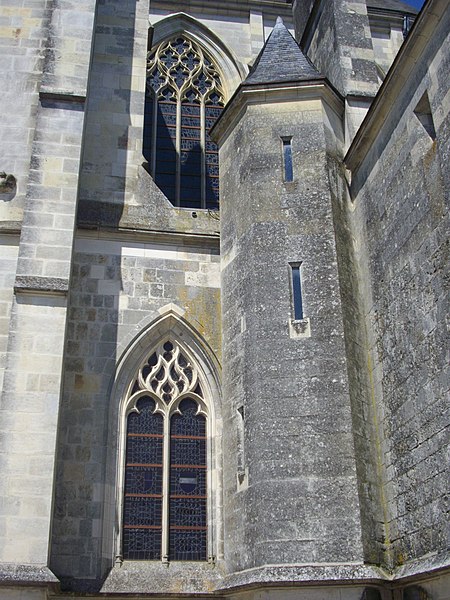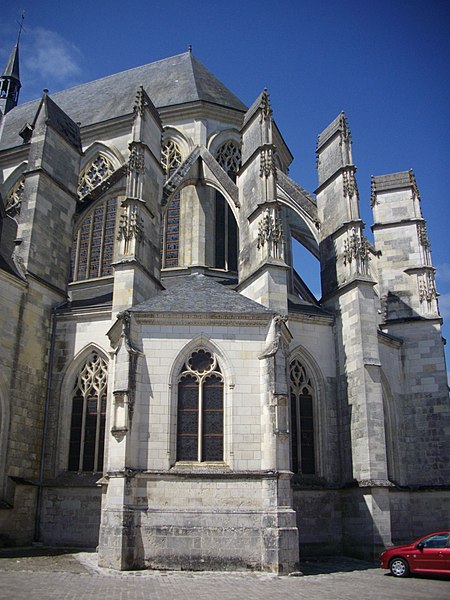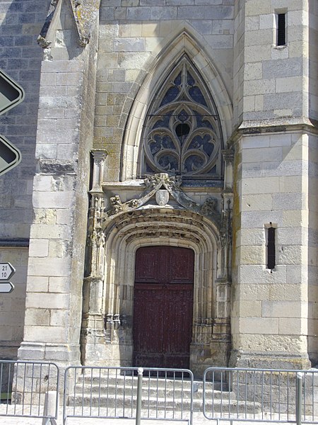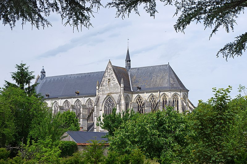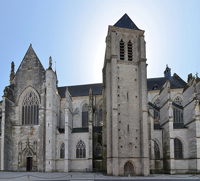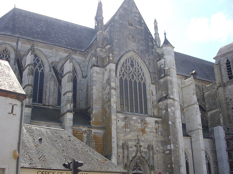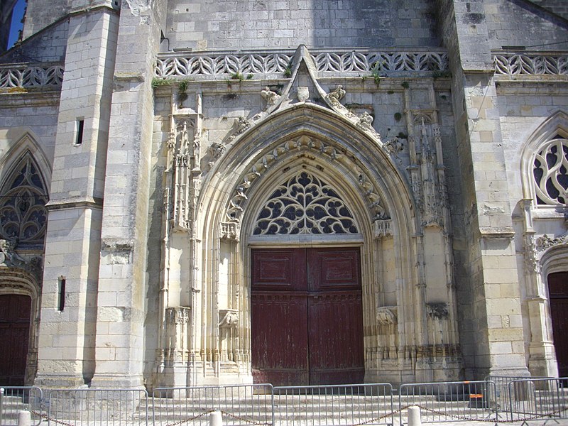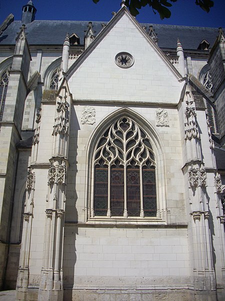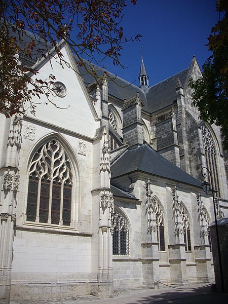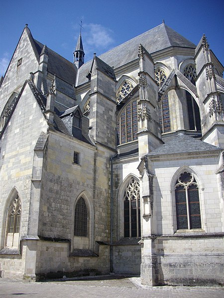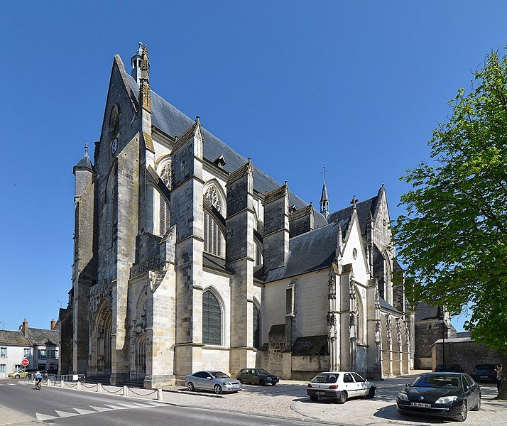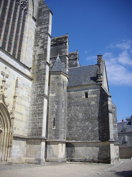 L'église actuelle a été élevée par le roi Louis XI sur les ruines d'un premier édifice détruit par les Anglais en 1428 ; seul le clocher, daté d'environ 1300, subsista. La reconstruction, conduite pour le roi, s'étendit de 1449 à 1485 et devait être achevée en 1490. Les maîtres d'œuvre furent Gilles et François de Pontbriant ; Pierre Chauvin et Pierre Le Page assurèrent la maîtrise d'œuvre du gros-œuvre à différentes phases. La chapelle Saint-Jean-Baptiste fut réalisée par Simon du Val entre 1464 et 1468. À la Renaissance, trois chapelles furent ajoutées, dont deux en 1518 — l'une d'elles, de plan hexagonal, est due à Jean des Roches ; l'une des chapelles de cette période a ensuite été démolie. Après les guerres de Religion, l'édifice fut restauré par Henri IV. Sous la Révolution, la collégiale devint église paroissiale. Des campagnes de restauration ont été menées de 1870 à 1874 puis de 1887 à 1892. L'architecture illustre le style flamboyant de la région, avec un transept non saillant et l'absence de triforium. Les fenêtres du sanctuaire étaient autrefois garnies de vitraux du XVIe siècle ; il n'en subsiste aujourd'hui qu'un dans la fenêtre centrale du chœur.