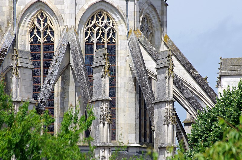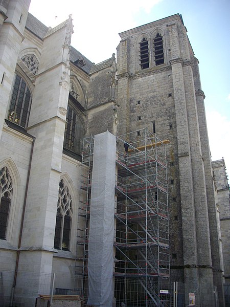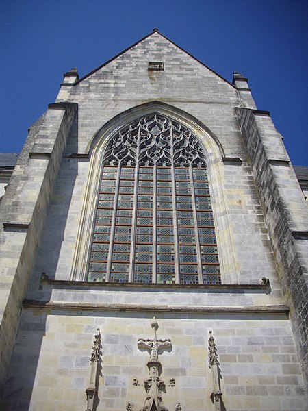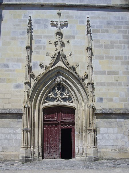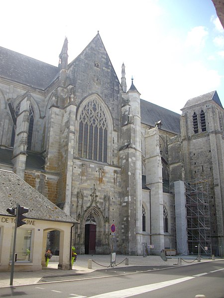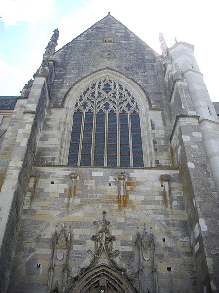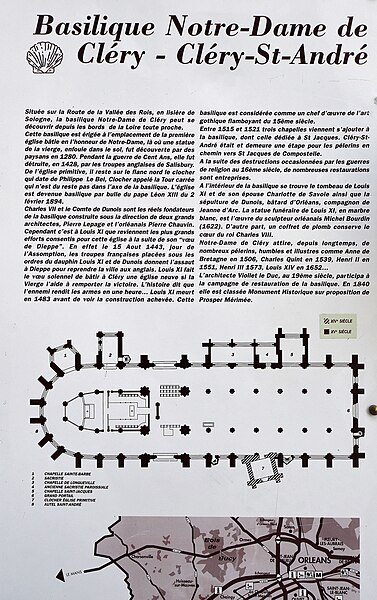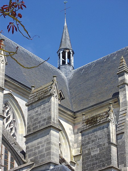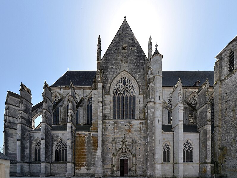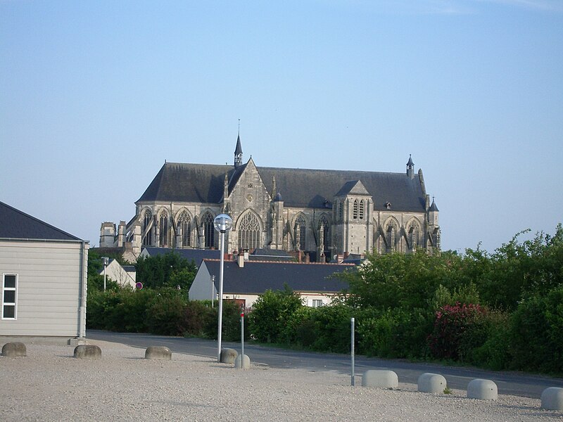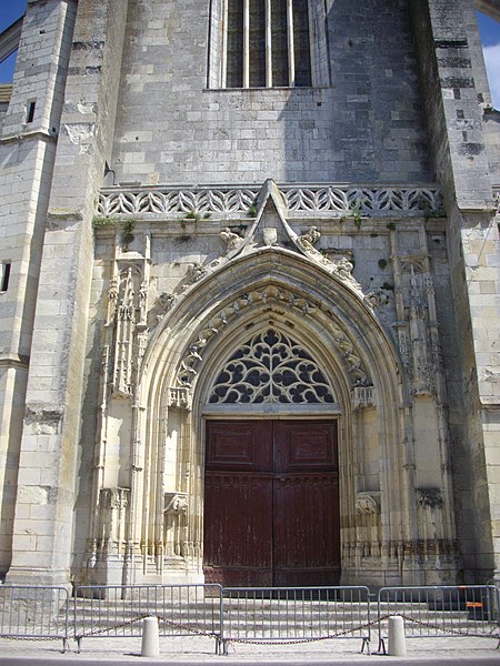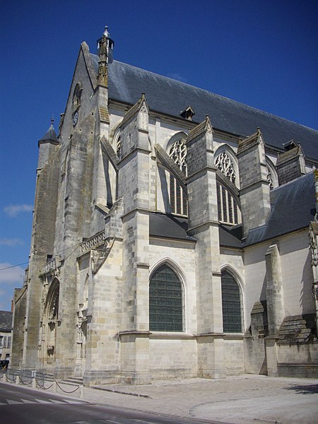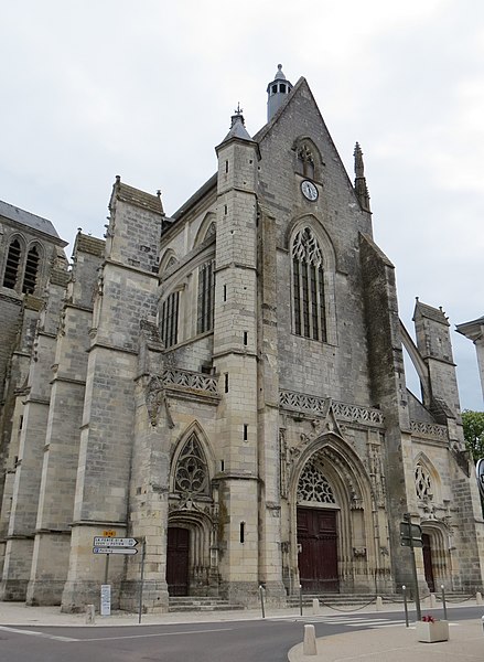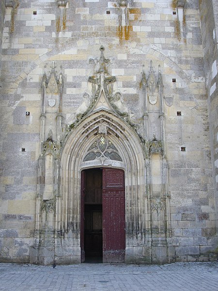 L'église actuelle a été élevée par le roi Louis XI sur les ruines d'un premier édifice détruit par les Anglais en 1428 ; seul le clocher, daté d'environ 1300, subsista. La reconstruction, conduite pour le roi, s'étendit de 1449 à 1485 et devait être achevée en 1490. Les maîtres d'œuvre furent Gilles et François de Pontbriant ; Pierre Chauvin et Pierre Le Page assurèrent la maîtrise d'œuvre du gros-œuvre à différentes phases. La chapelle Saint-Jean-Baptiste fut réalisée par Simon du Val entre 1464 et 1468. À la Renaissance, trois chapelles furent ajoutées, dont deux en 1518 — l'une d'elles, de plan hexagonal, est due à Jean des Roches ; l'une des chapelles de cette période a ensuite été démolie. Après les guerres de Religion, l'édifice fut restauré par Henri IV. Sous la Révolution, la collégiale devint église paroissiale. Des campagnes de restauration ont été menées de 1870 à 1874 puis de 1887 à 1892. L'architecture illustre le style flamboyant de la région, avec un transept non saillant et l'absence de triforium. Les fenêtres du sanctuaire étaient autrefois garnies de vitraux du XVIe siècle ; il n'en subsiste aujourd'hui qu'un dans la fenêtre centrale du chœur.
