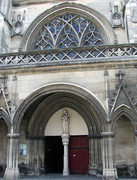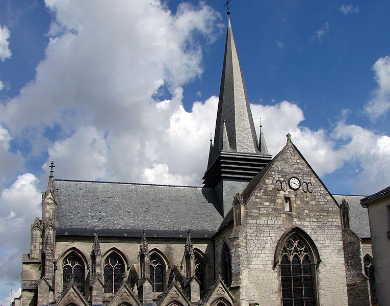 L'édifice, construit en pierre selon un plan basilical, est de style gothique flamboyant ; la façade principale est percée d'un porche du XVe siècle élevé par Charles de Luxembourg et surmonté d'une large baie flamboyante. La nef, composée de quatre travées, s'ouvre sur une croisée de transept surmontée d'un clocher coiffé d'une flèche d'ardoise ; la façade, complétée de deux galeries, est épaulée par de puissants contreforts. À l'intérieur, les clefs de voûte de la nef portent les armes des ducs d'Orléans et une maquette de navire ex‑voto représente le Soleil Royal, offerte en 1692 par le vice‑amiral Anne Hilarion de Tourville après la bataille de la Hougue. La nef et le chœur sont séparés par un jubé en marbre blanc et noir offert par Marie de Gonzague ; la grille en fer forgé provient de la famille de Soyécourt et le jubé est surmonté d'un Christ en croix offert par le duc de Guise au XVIe siècle. L'orgue de tribune, construit en 1864 par Joseph Merklin, a été relevé en 2017 par Laurent Plet.