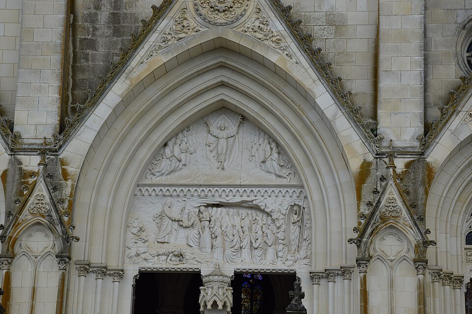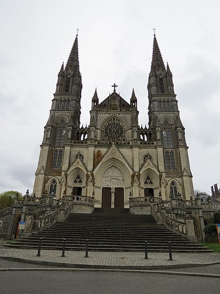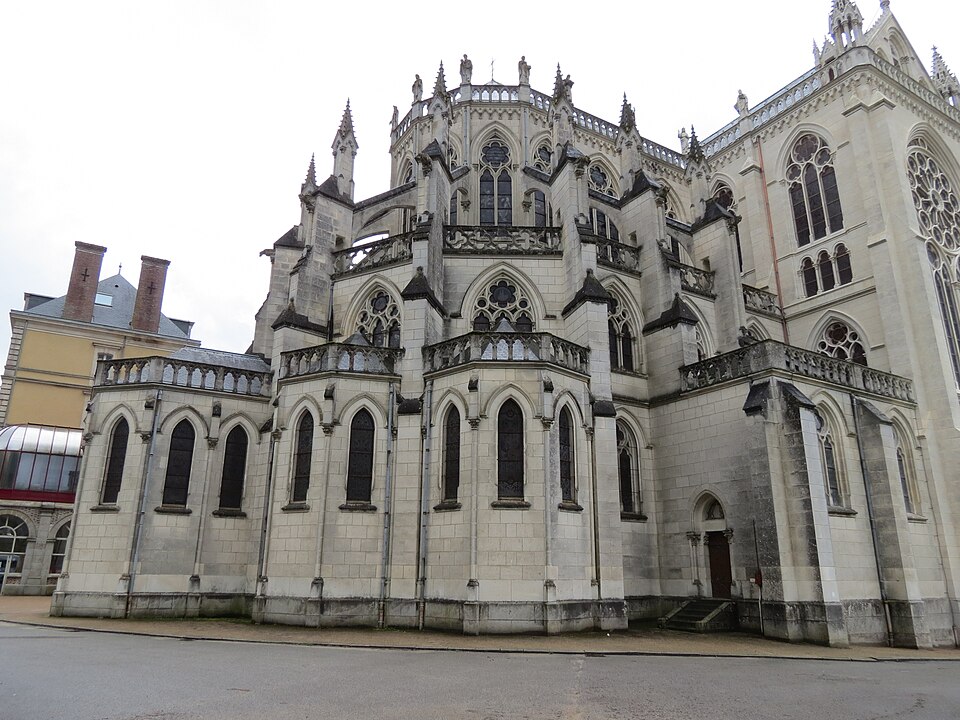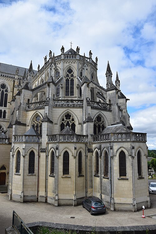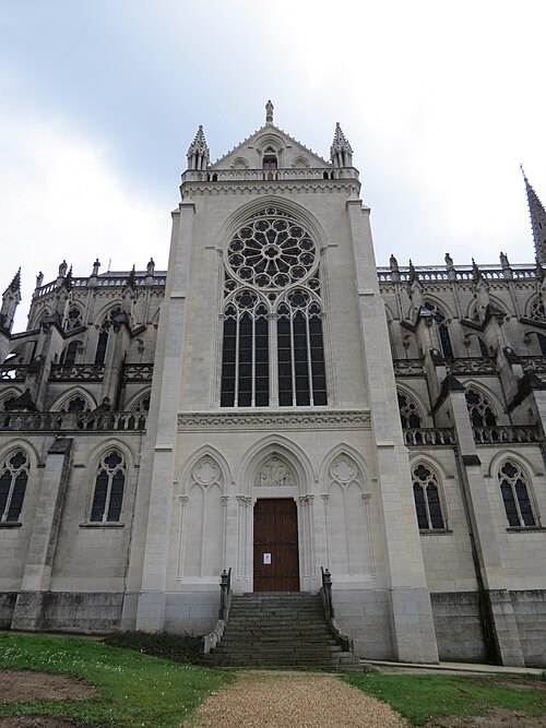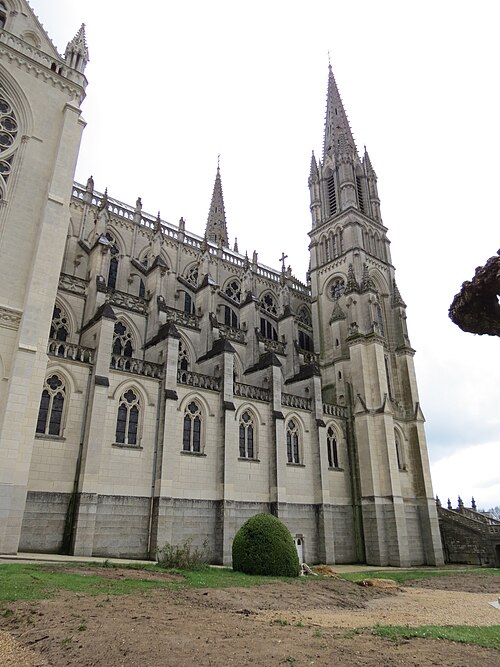 De style néo‑gothique, l’édifice se développe en croix latine ; il comprend une nef à six travées flanquée de deux bas‑côtés avec chapelles latérales, un transept saillant et un chœur pourvu d’un déambulatoire et de chapelles rayonnantes. Deux flèches relativement étroites de 60 mètres encadrent la façade, tandis qu’un projet d’élévation d’une tour‑lanterne à la croisée du transept n’a pas été réalisé pour raisons financières. L’église, implantée sur une terrasse et précédée d’un parvis accessible par un grand escalier, présente des voûtes sur croisées d’ogives soutenues par six piliers et vingt colonnes d’inspiration xiii e siècle ; les clefs de voûte culminent à 23 mètres. Les matériaux proviennent de diverses régions — sables, calcaires et granits — acheminés par chemin de fer puis par attelages locaux.