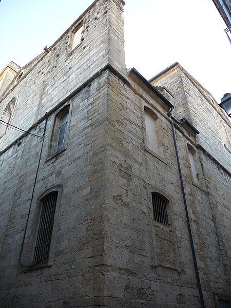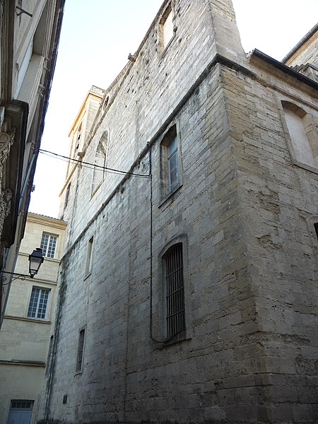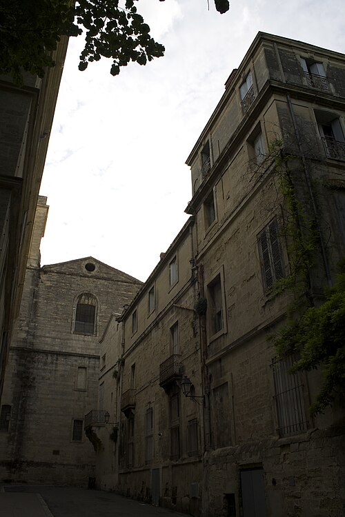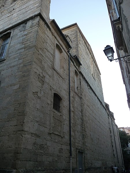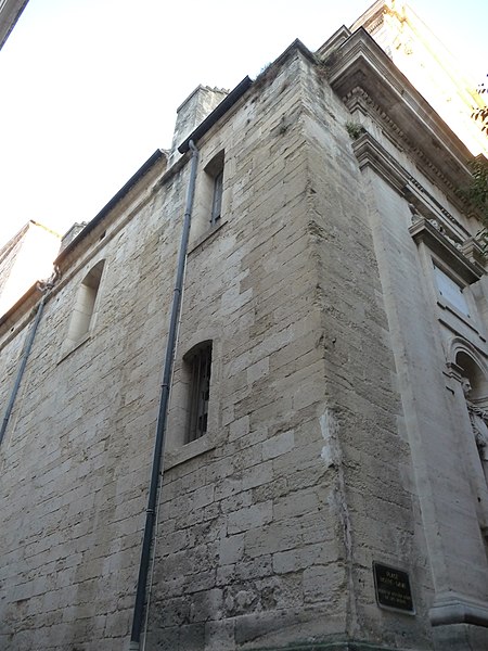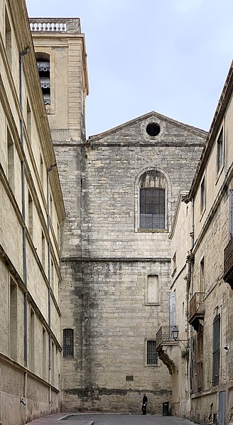 L'ancienne église primitive se dressait sur l'actuelle place Jean-Jaurès; elle fut successivement appelée Sainte-Marie, puis Sainte-Marie des Tables dès 1204, et enfin Notre-Dame des Tables. Il ne subsiste de cet ancien édifice que des vestiges de la crypte et des caveaux funéraires; la crypte a été transformée en musée, le musée du Vieux Montpellier. Au Moyen Âge, la proximité des tables des changeurs et des étals des marchands, sur la route de Saint-Jacques-de-Compostelle, a donné son nom au sanctuaire. Embellie aux XIVe et XVe siècles, l'église a subi de graves destructions pendant les guerres de religion: affectée au culte réformé comme « Temple de la Loge » en 1561, elle est partiellement détruite en 1568 et 1581, à l'exception de la tour de l'horloge érigée en 1432. L'évêque Guittard de Ratte reprend possession en décembre 1600; la reconstruction commence entre 1605 et 1608, mais l'édifice est à nouveau détruit en 1621, reconstruit entre 1650 et 1655, puis définitivement démantelé à partir de 1794.