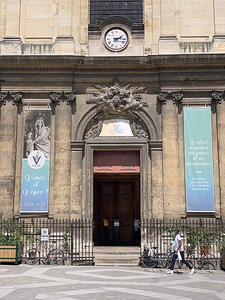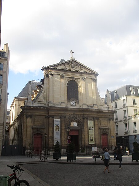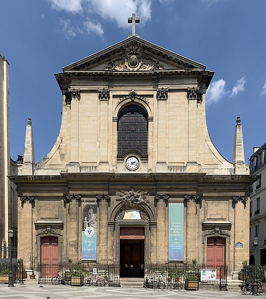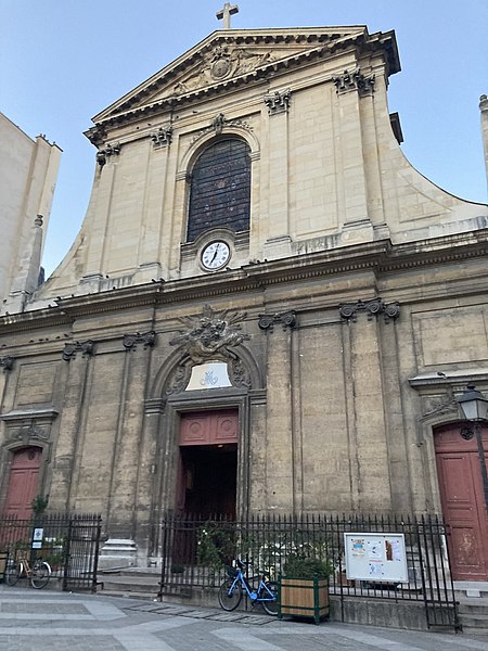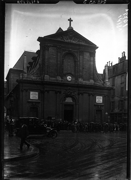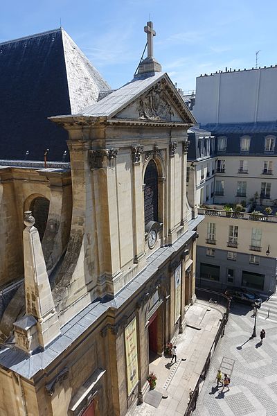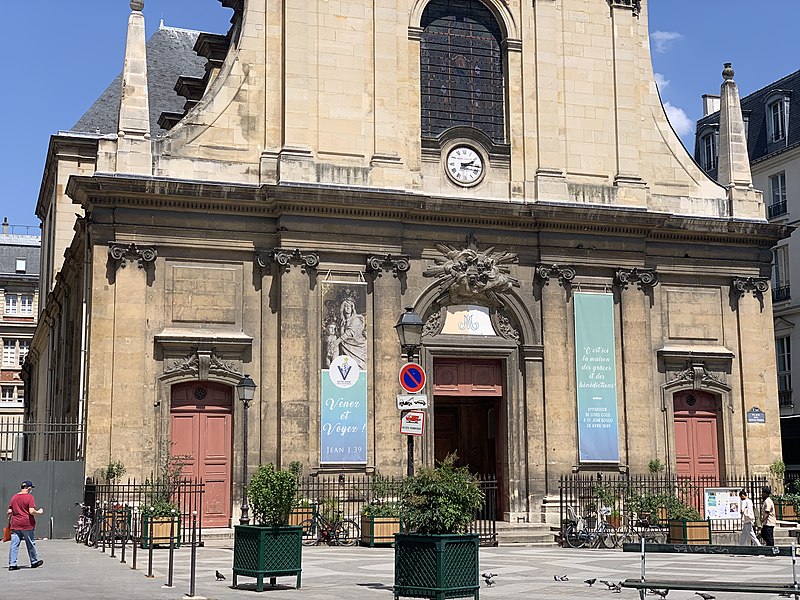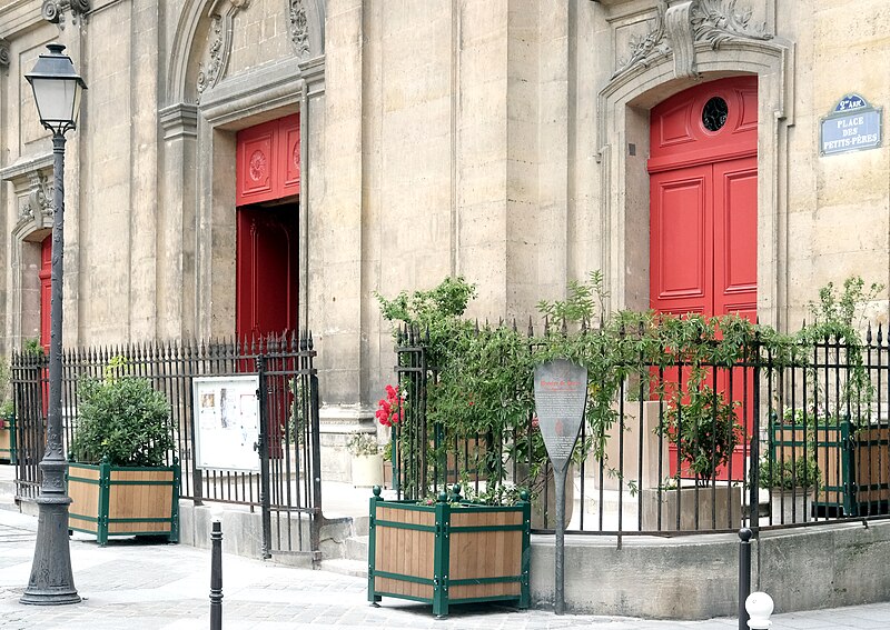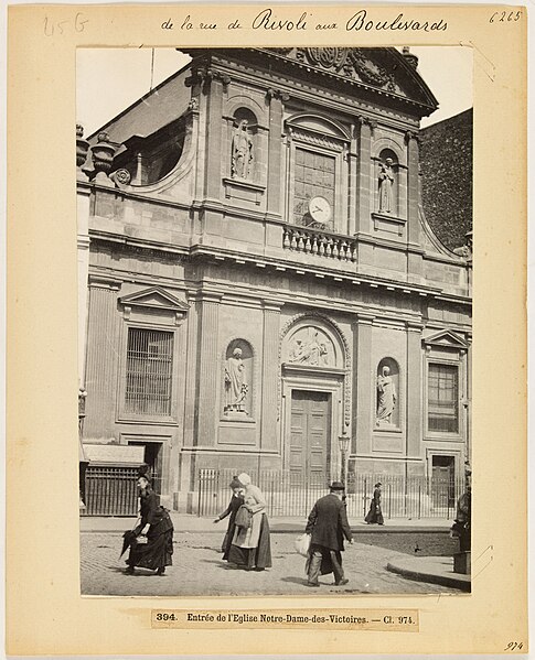 La basilique Notre-Dame-des-Victoires de Paris, située place des Petits-Pères dans le 2e arrondissement, est un lieu de culte catholique dont la construction a commencé en 1629 et s'est achevée en 1740 ; elle constitue le dernier vestige du couvent des Augustins déchaussés, dit couvent des Petits Pères, et est classée au titre des monuments historiques depuis le 12 mai 1972. Elle est dédiée à la Vierge Marie sous le titre de Notre‑Dame‑des‑Victoires et, dans la dévotion populaire, aussi appelée Notre‑Dame‑des‑Victoires, refuge des malades et des pécheurs ; elle fait partie des cinq basiliques mineures de Paris. En 1614 Louis XIII fit le vœu de bâtir une église dédiée à la Vierge si une victoire militaire était remportée, vœu considéré comme accompli après le siège de La Rochelle en 1628 ; cette origine est cependant l'objet d'une tradition contestée par certains historiens. Le plan fut établi par Pierre Le Muet pour les Augustins déchaussés, mais les travaux commencés en 1629 furent d'abord interrompus par manque de fonds ; la construction reprit vers 1656 sous la direction de Libéral Bruant, puis de Gabriel Le Duc, et l'église fut bénie en 1666 malgré son inachèvement. Le portail, réalisé par Jean‑Sylvain Cartaud, acheva l'édifice entre 1737 et 1740, et la basilique fut consacrée le 13 novembre 1740 par Hyacinthe Leblanc et l'archevêque de Paris. À la Révolution, privée de ses religieux, l'église servit de siège à la Loterie nationale puis à la Bourse des valeurs sous le Directoire avant d'être rendue au culte en 1802. En décembre 1836 l'abbé Charles‑Éléonore Dufriche‑Desgenettes consacra la paroisse au Cœur Immaculé de Marie et fonda l'archiconfrérie qui y demeure active ; les bâtiments conventuels furent détruits lors du percement de la rue de la Banque et de la rue Paul‑Lelong. La statue de la Vierge de la basilique fut, à la demande du pape Pie IX, la première statue couronnée en France en action de grâces pour la délivrance de Rome par les Français. La basilique est également célèbre pour ses ex‑voto, au nombre de plus de trente‑sept mille, qui témoignent de son rôle de sanctuaire marial. Dans le chœur sont exposées sept toiles monumentales de Carle van Loo, la toile centrale représentant le Vœu de Louis XIII et les autres illustrant des épisodes de la vie de saint Augustin ; on y trouve aussi une Conversion de saint Augustin par Bernard Gaillot. La façade sud de Cartaud présente un portail à deux ordres superposés, ionique et corinthien, surmonté d'un fronton avec un écusson aux armes de la France et d'une gloire en bas‑relief au‑dessus de la porte, et le clocher abrite quatre cloches dont deux fondues en 1819 et deux plus récentes fondues en 1997. L'intérieur, marqué par la succession d'architectes, réunit des vitraux d'Antoine Lusson, un orgue d'origine XVIIIe siècle, la chaire de Louis‑Alexandre Régnier, divers bénitiers et bas‑reliefs ainsi que une Pietà de Charles Gonthier. La chapelle Sainte‑Anne, autrefois dédiée à saint Nicolas de Tolentino, fut restaurée puis reconstruite en 1879 ; elle conserve un bas‑relief intitulé L'Éducation de la Vierge et est couverte d'ex‑voto des années 1870. La statue de Notre‑Dame‑des‑Victoires installée en 1809, en plâtre durci et probablement d'un sculpteur italien, remplaça une statue disparue en 1796 ; le corps de sainte Aurélie fut déposé au pied de l'autel en 1843. L'orgue de tribune possède un buffet sculpté par Louis‑Alexandre Régnier, daté de 1739 et protégé comme objet ; l'instrument actuel, remonté par Alfred Kern en 1973, compte 49 jeux. L'orgue de chœur, construit par Victor Gonzalez en 1937, comporte 19 jeux avec transmissions électriques. Le vitrail prit une place importante au XIXe siècle grâce aux initiatives des curés successifs : Claudius Lavergne dessina des cartons en 1854 pour des verrières exécutées par Antoine Lusson, puis des campagnes de vitraux menées par des ateliers tels que ceux de Desgranges et Mauméjean illustrèrent la Vie de la Vierge, des saints et le pèlerinage de sainte Thérèse de Lisieux. Plusieurs personnalités sont liées à l'église, parmi lesquelles les compositeurs François Roberday et Jean‑Baptiste Lully, dont la sépulture fut profanée pendant la Commune et dont subsiste un cénotaphe, Paolo Lorenzani, saint Louis Martin et sa fille Thérèse, ainsi que Joris‑Karl Huysmans et Emmanuel d'Alzon, dont une représentation figure sur l'autel. Une chapelle dédiée aux saints Louis et Zélie Martin a été consacrée récemment et la basilique accueille chaque année les reliques de sainte Thérèse pour une neuvaine. Depuis 2018 le père Antoine d'Augustin est curé‑recteur ; la vie spirituelle du sanctuaire est animée par plusieurs prêtres confesseurs et par les bénédictines du Sacré‑Cœur de Montmartre installées au prieuré attenant. L'édifice est accessible par la ligne 3 du métro, station Bourse.