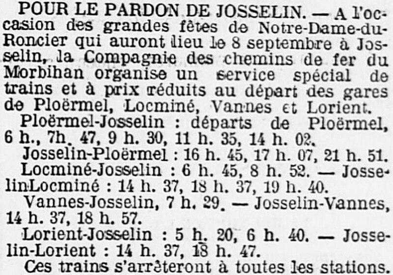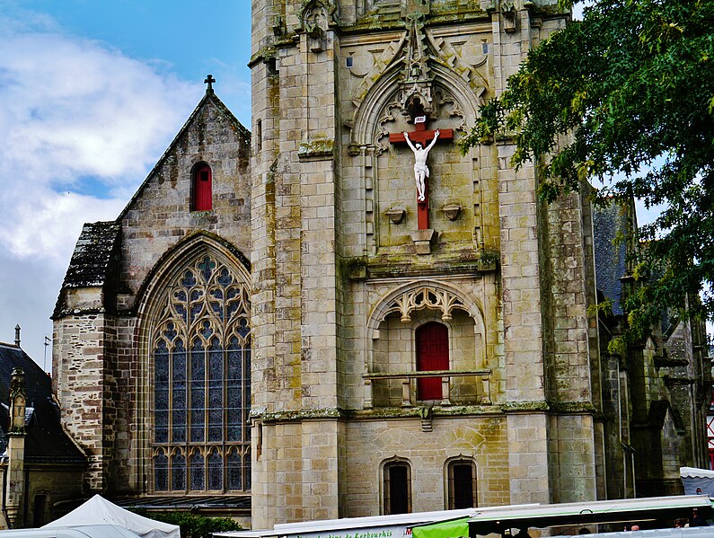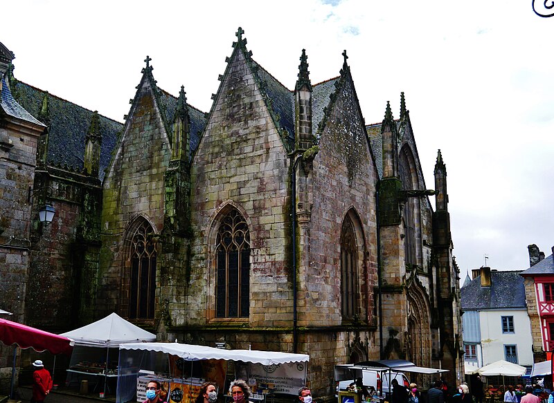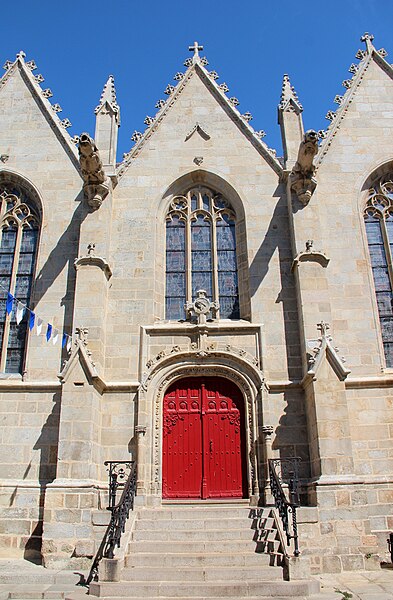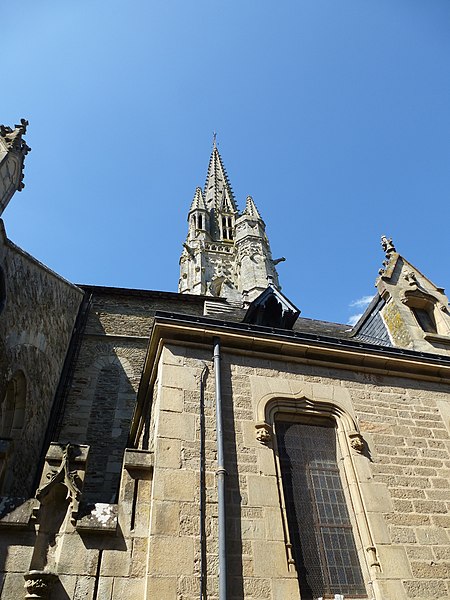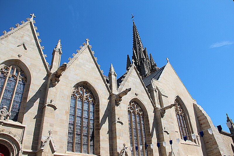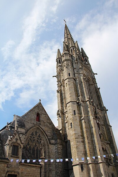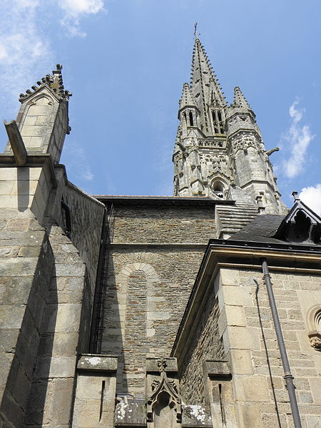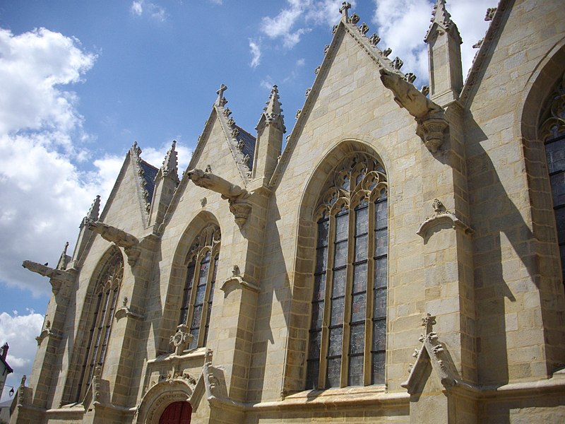 La basilique Notre‑Dame‑du‑Roncier, à Josselin, est une église paroissiale et un sanctuaire marial dont l’histoire architecturale s’étend du XIIe au XXe siècle. Reconstruite à la fin du XIIe siècle après la destruction de la ville, elle conserve des vestiges romans visibles dans le chœur et dans une arcade liée à une ancienne absidiole nord. La croisée du transept appartient au XIIIe siècle ; à la fin de ce même siècle le chœur est agrandi et le transept voûté en pierre, un procédé réservé aux grands sanctuaires médiévaux en Bretagne. À la fin du XIVe siècle, Olivier de Clisson et Marguerite de Rohan transforment l’absidiole sud en oratoire et chapelle privée, dite Sainte‑Marguerite. Entre 1461 et 1470 sont élevés la nef et le bas‑côté sud ; ces travaux, liés aux seigneurs de Rohan, semblent avoir bénéficié du soutien du grand vicaire Jean de la Bouère, dont les armes figurent dans une verrière du bas‑côté sud. Le bas‑côté nord est achevé en 1491, période où apparaissent aussi des marques de tâcherons sur l’élévation nord. Une tour carrée, comprenant une chambre forte, est ensuite implantée dans le bas‑côté nord ; sa partie haute s’écroule en 1705 et l’on place un clocher au sommet entre 1731 et 1734. Une importante campagne de restructuration a lieu à la fin du XIXe siècle et au début du XXe siècle : la chapelle sud est transformée en 1890 par l’architecte Pierre‑Marie Arsène Lafargue, qui réalise aussi l’autel et les bancs, la chapelle nord est réaménagée pour le pèlerinage à partir de 1893, la voûte du chœur et celle du transept sont remplacées par des voûtes en plâtre en 1891, la sacristie est reconstruite en 1895 par René Michel Ménard et une nouvelle tour du chevet est engagée à la fin du siècle par les architectes Lagaury et Émile Libaudière. L’ancienne tour du bas‑côté nord et son clocher sont démolis en 1923 ; la flèche de la tour du chevet, restée inachevée pendant un demi‑siècle, est finalement élevée en 1949 sur les plans de René Charles Ménard. Les façades conservent une forte empreinte gothique du XVe siècle ; l’édifice, initialement en croix, présente aujourd’hui une configuration quasi rectangulaire regroupant la nef et le chœur, les deux transepts, les deux bas‑côtés et les chapelles Sainte‑Marguerite et Sainte‑Catherine, complétée par une tour moderne et la sacristie. À l’intérieur, les piliers romans séparant le chœur de la chapelle Sainte‑Catherine portent des chapiteaux sculptés de personnages, d’animaux et de volutes, et les fenestrages conservent d’anciens vitraux. Le clocher abrite plusieurs cloches, dont le bourdon Marie‑Joseph de Notre‑Dame‑du‑Roncier fondu par Cornille‑Havard en 1925. La clôture du chœur et deux piscines du XVe siècle sont inscrites aux monuments historiques en 1927 ; l’ensemble de l’édifice est inscrit en 1929 puis classé en 2020. La tradition locale rapporte une fondation légendaire remontant à 808, autour d’une statue de la Vierge trouvée dans un roncier, et de nombreux miracles y sont attribués, notamment des guérisons. Le pèlerinage et le pardon de Notre‑Dame‑du‑Roncier, connu sous le nom de pardon des aboyeuses, constituent toujours un moment fort de la vie paroissiale ; jusqu’au milieu du XXe siècle la procession était parfois accompagnée de véritables aboiements, et elle conserve des rites et la présence des autorités locales et religieuses.
