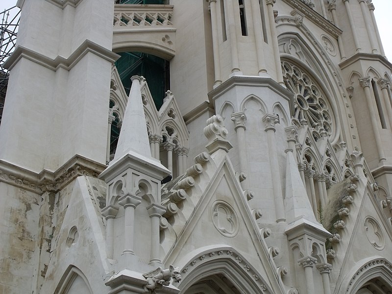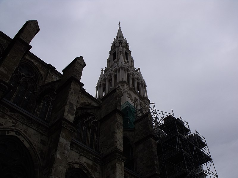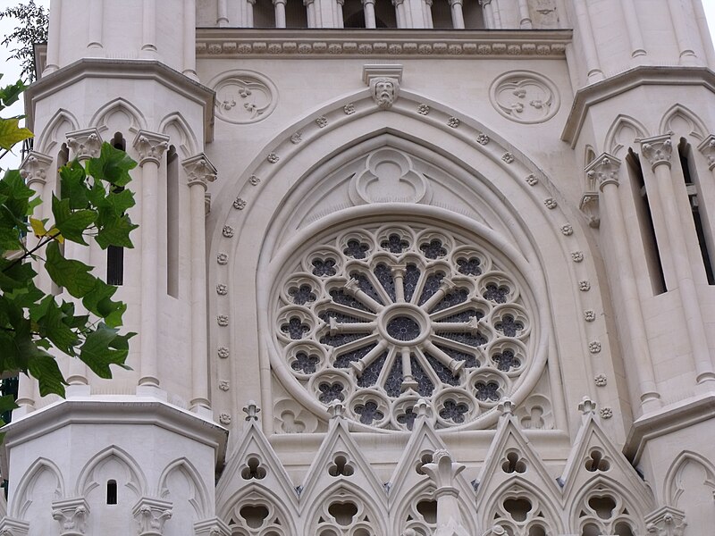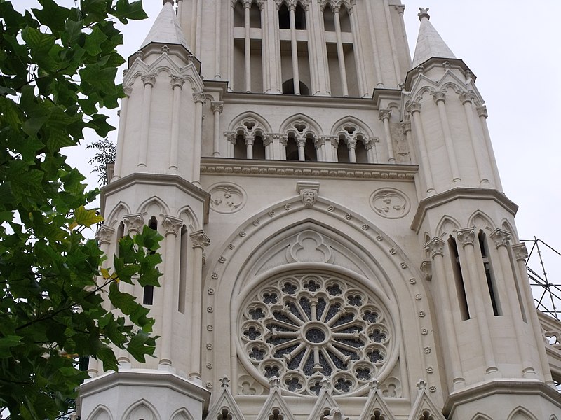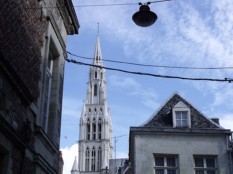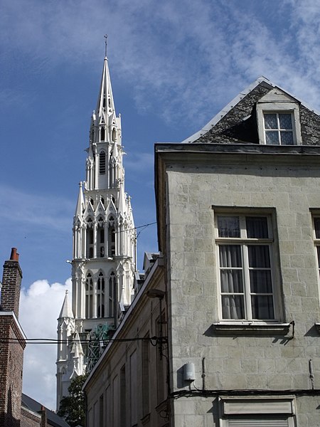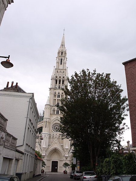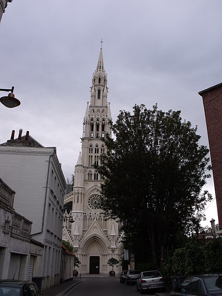 La basilique Notre-Dame-du-Saint-Cordon de Valenciennes est une basilique mineure catholique située dans le département du Nord. Elle a été édifiée au milieu du XIXe siècle par l'architecte diocésain Alexandre Grigny, le chantier s'étant déroulé entre 1852 et 1864. Le sanctuaire a été conçu pour accueillir la dévotion à Notre-Dame du Saint Cordon, protectrice de Valenciennes depuis le XIe siècle et liée à la procession du « Tour du Saint Cordon » évoquée en 1008. Cette dévotion se tenait auparavant dans l'église Notre-Dame-la-Grande, détruite à la Révolution; après le rétablissement du culte, la paroisse trouva refuge dans la salle des malades de l'Hôtel-Dieu, dite Notre-Dame-la-Grange. La relique du cordon ayant disparu, une statue de la Vierge en bois peint fut réalisée en 1804, traditionnellement attribuée à Jean-Baptiste Cadet de Beaupré et possiblement à Pierre Gillet, à laquelle des anges furent ajoutés en 1891 par René Fache. La renaissance du culte entraîna la recréation de la confrérie des Royés et la reprise de la procession du Saint Cordon. Face à l'accroissement de la dévotion et aux épidémies, la petite église paroissiale devint insuffisante, ce qui motiva la construction d'un nouvel édifice au XIXe siècle. Après un concours et l'intervention d'une commission présidée par Viollet-le-Duc, Alexandre Grigny fut chargé du projet et des artistes locaux furent associés aux décors intérieurs. L'édifice présente un chevet à déambulatoire et trois chapelles rayonnantes d'inspiration normande, un transept percé de portails qui assure l'autonomie du sanctuaire, et une nef de cinq travées flanquée de bas-côtés. Son élévation sur trois niveaux, évoquant le modèle d'Amiens, confère une grande clarté intérieure, tandis que la façade, plus austère, est dominée par une tour-porche inspirée du Clocher Vieux de Chartres et par une composition pyramidale de portails, tourelles polygonales, clochetons ajourés et tabernacles entourant une flèche octogonale. Le décor sculpté a été exécuté notamment par Charles Boulanger, Ernest-Eugène Hiolle et Louis Auvray; le buffet de l'orgue porte également la signature sculptée de Charles Boulanger. Les verrières réalisées par Charles Lévêque furent partiellement détruites en 1918. La chapelle axiale, dédiée à Notre-Dame du Saint Cordon, fut décorée sous la direction de l'architecte Jules Batigny par Louis Auvray et le peintre Gustave Houzet et consacrée le 16 septembre 1872 pour accueillir la statue de dévotion. Parmi les œuvres conservées figurent la Mise au tombeau de René Fache, un Christ montrant ses plaies de Gustave Crauk, des médaillons du XVIIe siècle représentant saint Pierre et saint Gilles, une Célébration de l'Eucharistie d'Auguste Moreau-Deschanvres, des anges d'Ernest Hiolle, un Christ en Croix de Henri Coroënne, une œuvre de Lucien Jonas et un émail Notre-Dame de Grâce du XIXe siècle. L'ostensoir du Saint Cordon de 1864, commandé lors de la construction, a été réalisé par la maison Poussielgue-Rusand. Les orgues ont connu une longue évolution: un orgue de chœur Merklin-Schütze fut installé en 1864, agrandi et modifié à plusieurs reprises, et un grand orgue électrique Merklin de 42 jeux fut inauguré en 1891; l'instrument, dont la tuyauterie est en grande partie d'origine Merklin avec des apports ultérieurs, est classé aux monuments historiques et a fait l'objet d'une restauration en 2014. Le clocher, qui culmine à 83 mètres, abrite plusieurs cloches anciennes, parmi lesquelles la Bancloque datée de 1358, renommée « Jeanne de Flandre » au XIXe siècle, une cloche dite Jeanne datée de 1533 sonnant le fa, la cloche Notre-Dame baptisée en 1889 sonnant le ré, et la cloche Bertholin baptisée en 2008 sonnant mi bémol. L'édifice a souffert de la mauvaise qualité de la pierre dès sa construction et a subi des dommages pendant la Première Guerre mondiale, ce qui a entraîné des restaurations successives au XXe siècle, notamment dans les années 1931-1932, 1950, 1955 et 1971. Une nouvelle campagne de restauration a été lancée en 2007 et se poursuivait en 2013; des associations locales sont fortement impliquées dans la sauvegarde du monument, les travaux ayant été estimés à 13 millions d'euros en 2003 et ayant donné lieu à des affaissements et à des procédures judiciaires. Depuis 1864 la basilique sert de point de départ au Tour du Saint Cordon; en 1892 un office propre fut composé pour Notre-Dame du Saint Cordon, la Vierge fut déclarée patronne de la ville et couronnée en 1897, le pape Pie XI donna le titre de basilique mineure en 1922, et l'édifice est inscrit aux monuments historiques depuis 1996. Malgré son importance culturelle et cultuelle, la messe inaugurale du Tour du Saint Cordon se tient désormais hors de la basilique pour des raisons de capacité, et la conduite des travaux demeure un enjeu local, comme l'a rappelé la position du maire en 2024.