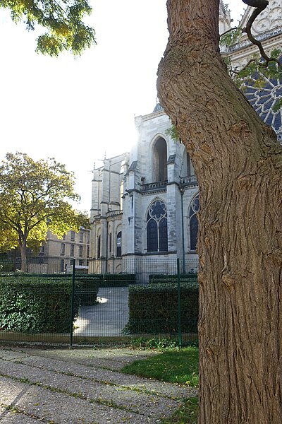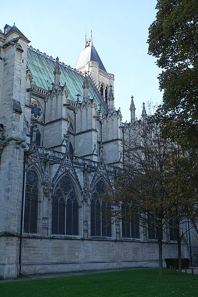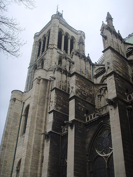 La basilique Saint-Denis, située au centre de la ville de Saint-Denis en Seine-Saint-Denis, est une église de style gothique qui conserve l'ancienne fonction d'abbatiale et exerce le rôle de cathédrale depuis 1966. Elle s'élève sur une nécropole gallo-romaine et sur l'emplacement traditionnel du martyre de saint Denis, sanctuaire qui a reçu très tôt la dénomination de « basilique ». Les récits hagiographiques et les traditions — parfois incertaines — rendent compte d'une dévotion ancienne autour du tombeau du martyr, relayée par des figures comme sainte Geneviève et par des légendes populaires. Dès l'époque mérovingienne et carolingienne le lieu attire les sépultures princières : la nécropole devient progressivement le lieu d'inhumation des souverains françois et, à partir des Robertiens et des Capétiens directs, la nécropole royale par excellence. L'abbaye adopte alors une organisation monastique durable et compte, au long du Moyen Âge, une communauté nombreuse qui dessert le sanctuaire et ses pèlerinages. Au haut Moyen Âge l'édifice carolingien se dote d'une crypte annulaire destinée à accueillir les reliques et à recevoir les fidèles, et il conserve des éléments provenant de constructions antérieures, mais de modestes vestiges seulement subsistent des réalisations de Dagobert et de Charlemagne. Le IXe siècle est marqué par des raids vikings et des destructions partielles, puis par des aménagements défensifs et des reconstructions. À la fin du XIe siècle et surtout au XIIe siècle l'abbé Suger entreprend une importante rénovation : il construit un nouveau massif occidental avec rose et trois portails, rehausse le chœur, introduit de vastes baies et des chapelles rayonnantes et emploie la croisée d'ogives, innovations qui annoncent le francigenum opus, appelé plus tard art gothique. Les travaux conduits sous l'autorité de Suger conduisent à une double consécration et à la consécration du chevet en 1144 ; la lumière et la mise en valeur des reliques deviennent des principes organisateurs de l'espace liturgique. Au XIIIe siècle la nef vétuste est reconstruite, le transept et le chœur sont élevés et les tours de la façade sont achevées, tandis que le programme funéraire royal est réorganisé pour affirmer la continuité dynastique, expression visible lors de l'inauguration des monuments sépulcraux sous Louis IX. Les siècles suivants voient l'ajout de chapelles, des transformations décoratives et des projets architecturaux inaboutis, ainsi que des dommages lors des guerres de Religion ; la Révolution entraîne la nationalisation des biens de l'abbaye, la suppression de la communauté et, en 1793, la profanation systématique des tombeaux, le pillage du trésor et l'endommagement ou la dispersion des gisants. Au début du XIXe siècle Napoléon Ier propose de redonner à l'édifice une fonction mémoriale, fait procéder à des travaux de couverture et d'aménagement et installe une maison d'éducation ; sous la Restauration Louis XVIII fait ramener et rassembler dans la crypte les restes retrouvés dans les fosses révolutionnaires. De vastes campagnes de restauration se déroulent au XIXe siècle, d'abord sous la conduite de plusieurs architectes puis sous l'autorité d'Eugène Viollet‑le‑Duc, qui restaure, réorganise les tombeaux et répare de nombreuses mutilations héritées des décennies précédentes. Au XXe et au début du XXIe siècle des fouilles et des campagnes de conservation sont poursuivies, la basilique reçoit le statut de cathédrale en 1966 et fait l'objet de restaurations ciblées : la façade occidentale a ainsi été nettoyée et restaurée entre 2012 et 2015 et des campagnes de réfection du chœur et des vitraux se sont poursuivies jusqu'en 2023. Malgré ces interventions, la nécropole et la crypte ont souffert d'infiltrations, d'humidité et d'un manque durable de financements qui ont compromis l'état de certains caveaux et monuments funéraires. Le projet de reconstruction de la flèche nord, discuté depuis la fin du XXe siècle et soutenu par des financements publics et privés, a été relancé avec des études, des débats de conservation et le lancement officiel du chantier en 2025, accompagné d'un dispositif de médiation dit « La Fabrique de la flèche ». Aujourd'hui la basilique demeure à la fois un lieu de culte, une nécropole royale et un monument-musée présentant les tombeaux, la crypte archéologique et des collections d'orfèvrerie et de vitraux, tout en restant au centre des enjeux de conservation et d'interprétation de ce patrimoine majeur.