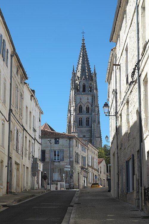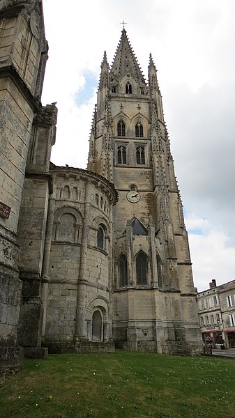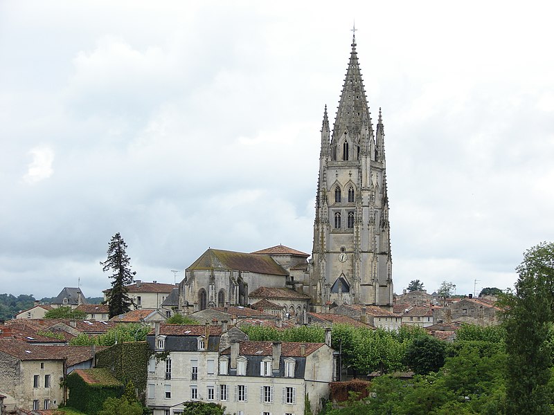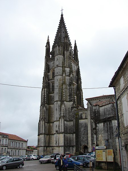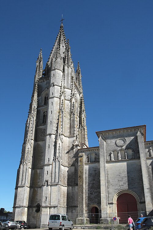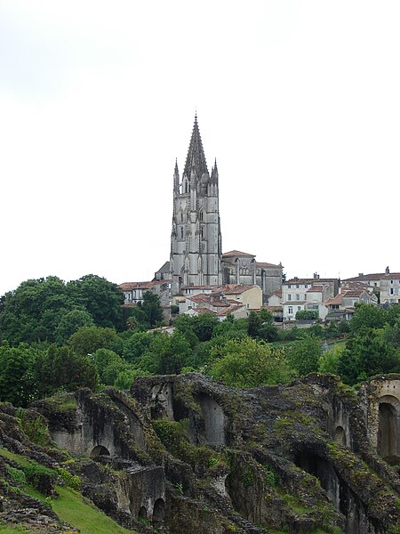 La basilique Saint-Eutrope de Saintes, en Charente-Maritime, est l’un des principaux sanctuaires catholiques de la ville. Un bref apostolique du pape Léon XIII l’a élevée au rang de basilique mineure le 11 mai 1886. Fondée en 1081 à l’initiative du duc Guillaume VIII d’Aquitaine et consacrée par le pape Urbain II en 1096, elle honore saint Eutrope, martyr et premier évêque de la région, dont le tombeau dans la crypte a attiré des pèlerins sur le chemin de Saint-Jacques-de-Compostelle. Dès l’origine, l’abbaye de Cluny fut chargée du sanctuaire et y établit un prieuré d’une vingtaine de moines qui assurèrent le culte et l’accueil des pèlerins ; la Révolution entraîna la fermeture définitive du prieuré. Considérée comme vétuste, l’église fut amputée de sa nef en 1803 sur ordre du préfet Ferdinand Guillemardet ; auparavant elle figurait parmi les plus vastes édifices religieux de la région et présentait une organisation originale en église haute et église basse avec escaliers centraux facilitant la circulation des pèlerins. Chef-d’œuvre de l’art roman saintongeais, l’édifice intègre aussi des apports gothiques et modernes : la flèche flamboyante du clocher, élevée grâce à une donation de Louis XI et réalisée par l’architecte Jean Lebas, le chœur gothique et la façade néo-romane du XIXe siècle. La basilique conserve de nombreux chapiteaux romans finement sculptés et des vitraux provenant des ateliers Gesta (Toulouse), Dagrant (Bordeaux) et Léglise (Paris). Elle a été classée parmi les monuments historiques par la liste de 1840 et inscrite au patrimoine mondial de l’Unesco au titre des chemins de Saint-Jacques-de-Compostelle en France.