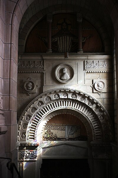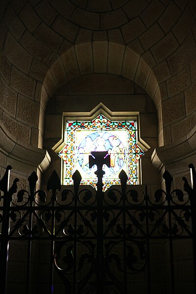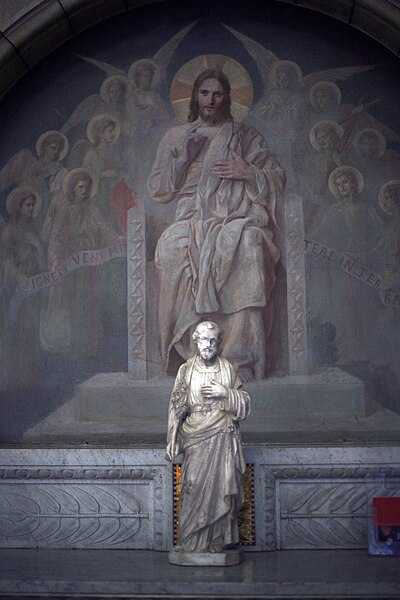 Le tambour de la coupole repose sur quatre pendentifs ornés des évangélistes Matthieu, Marc, Luc et Jean ; il figure le Christ faisant face à la Jérusalem céleste et est entouré des saints du diocèse, parmi lesquels figurent notamment saint Ferréol, saint Ferjeux, sainte Colette, sainte Jeanne-Antide Thouret, saint Colomban et d’autres saints locaux. Au pied du tambour se lit l’inscription latine « Passi pro Christo, reliquerunt exemplum ut sequamur vestigia eorum, qui credidimus per verbum eorum in Christum » (« Ayant souffert pour le Christ, ils ont laissé un exemple, afin que nous suivions leurs traces, nous qui avons cru au Christ grâce à leur parole »). Dans le chœur, une frise latine au‑dessus des arcades de l’abside proclame : « Corpora ipsorum in pace sepulta sunt ; dans testamento stetit semen horum ; ad usque in aeternum manebit » (« Leurs corps ont été ensevelis dans la paix ; leur semence est restée en témoignage : elle demeurera pour l'éternité »).
