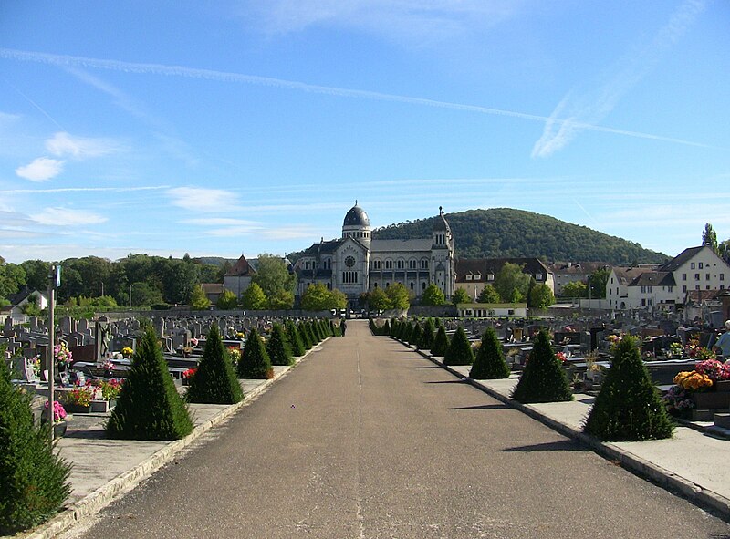 L’architecture présente une façade encadrée par deux imposantes tours et une coupole à lanterne sur la croisée du transept qui domine la composition. Sous le chœur, le transept et une partie de la nef se trouve une crypte accessible par deux grands escaliers latéraux, et cinq chapelles rayonnent autour de l’abside. Des peintures murales réalisées par des artistes comtois déroulent leur programme décoratif au-dessus des grandes arcades de la nef, sur lequel Pierre Pfister a travaillé à partir de recherches archéologiques dans les catacombes romaines. La coupole est ornée de mosaïques d’Ulysse Camille Drupt, un ensemble complet de vitraux est dû à l’atelier Gaudin et des sculptures de Just Becquet achèvent le décor.