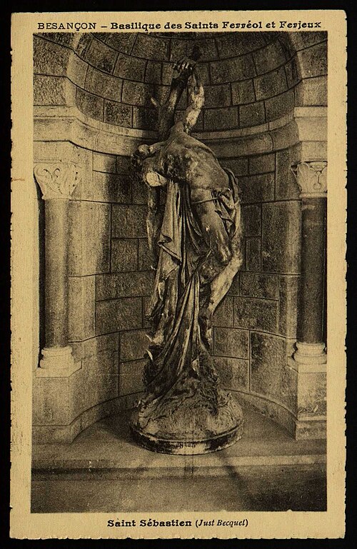 La basilique célèbre aussi la lignée spirituelle associée aux missions évangélisatrices : selon la tradition, vers la fin du IIe siècle l’évêque Irénée de Lyon, disciple de Polycarpe et héritier de l’apôtre Jean, envoya Ferréol et Ferjeux, originaires d’Athènes, évangéliser la Séquanie et fonder l’église de Vesontio. Ils se seraient installés dans la grotte proche de Besançon et, après avoir tenté de convertir la femme du gouverneur romain Claude, furent décapités le 10 juin 212 ; ils sont fêtés conjointement le 16 juin.