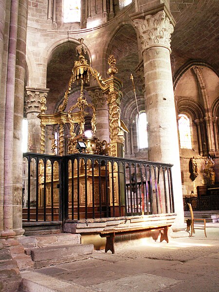 Le mobilier et les œuvres d'art témoignent d'une riche histoire liturgique mais ont subi pillages et pertes ; la basilique conserve néanmoins des statues notables, parmi lesquelles la Vierge dite du Chariol (XIVe siècle), une Vierge à l'oiseau en bois doré, une Vierge parturiente polychrome du XVe siècle, un Christ en croix provenant de la léproserie de la Bajasse et une statue en marbre de saint Jacques. Les vitraux anciens ont disparu à la Révolution ; des verrières contemporaines ont été posées en 1983 et en 2008.
