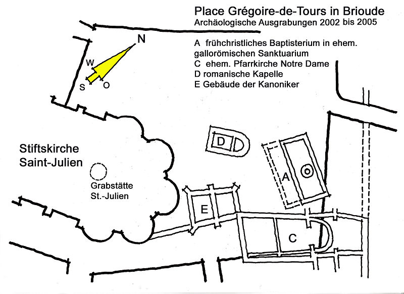 La basilique Saint-Julien de Brioude, située dans la commune de Brioude en Haute-Loire, est un important édifice roman d'Auvergne classé monument historique. Le premier sanctuaire élevé sur le tombeau présumé de saint Julien remonte à la fin du IVe siècle et, selon Grégoire de Tours, sa renommée attira rapidement les pèlerins. Une église mérovingienne, ornée de colonnes de marbre issues de monuments antiques dont des vestiges subsistent dans la crypte, fut suivie d'une construction carolingienne attestée par une mosaïque du chœur. Après des destructions partielles au haut Moyen Âge, l'édifice connut de multiples campagnes de reconstruction et d'agrandissement, notamment un vaste chantier engagé au premier quart du XIIe siècle et prolongé jusqu'au début du XIIIe siècle, avec des interventions ultérieures aux XIIIe et XIVe siècles. Les attaques normandes au début du Xe siècle et d'autres dommages entraînèrent plusieurs reconstructions, tandis que la Révolution provoqua l'abattage ou la décapitation de clochers. Au XIXe siècle, des restaurations menées par les architectes Bravard et Mallay ont restitué et consolidé les tours et la flèche, et au XXe siècle des campagnes de remise au jour des peintures murales et du pavement ont permis de retrouver des décors anciens. La garde du tombeau, assurée initialement par une milice de chevaliers devenue corps de chanoines, transforma la collégiale en un chapitre canonial puissant ; les chanoines reçurent la règle des chanoines réguliers et exercèrent la seigneurie et la justice sur la ville jusqu'à la Révolution. Le chapitre acquit au fil du temps des prérogatives d'autonomie confirmées par des autorités ecclésiastiques et royales, et la collégiale fut réaffectée au culte paroissial à la fin du XVIIIe siècle. L'édifice fut élevé au rang de basilique mineure par Pie XII en 1957.