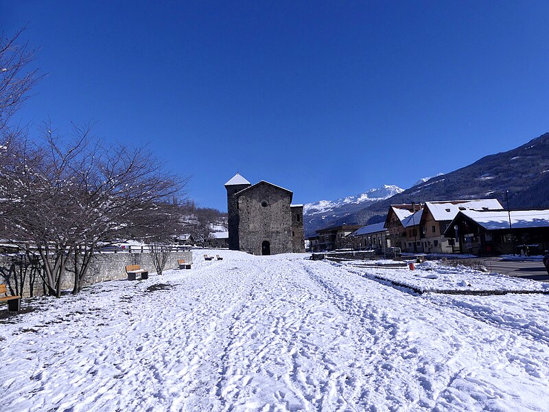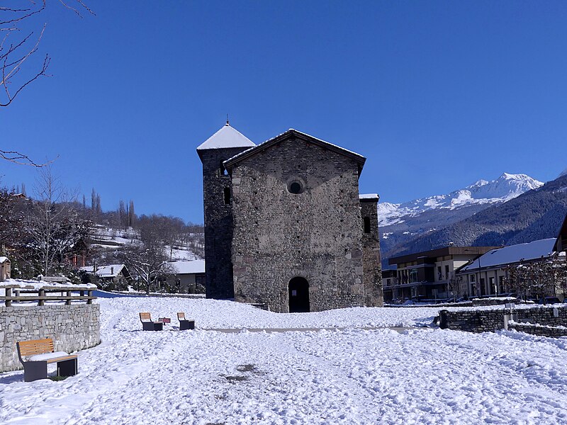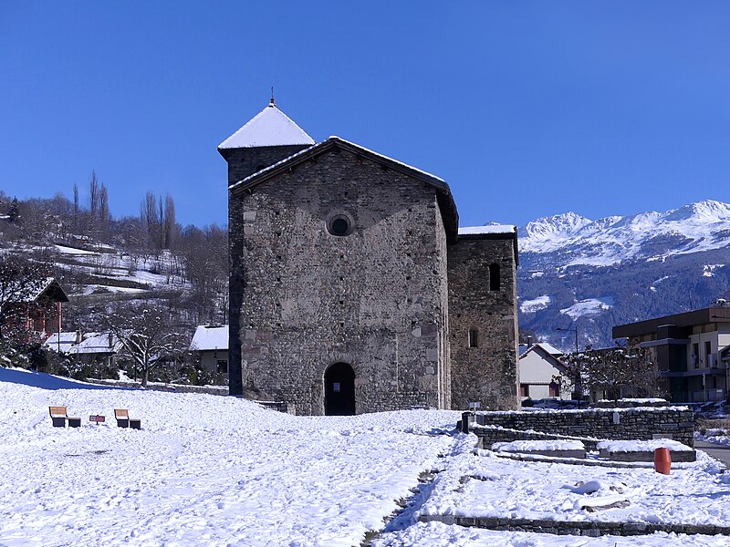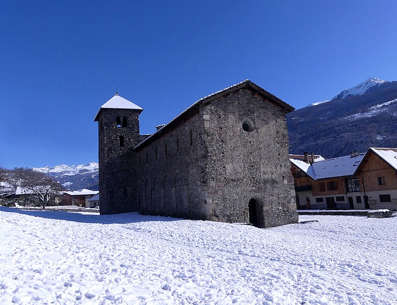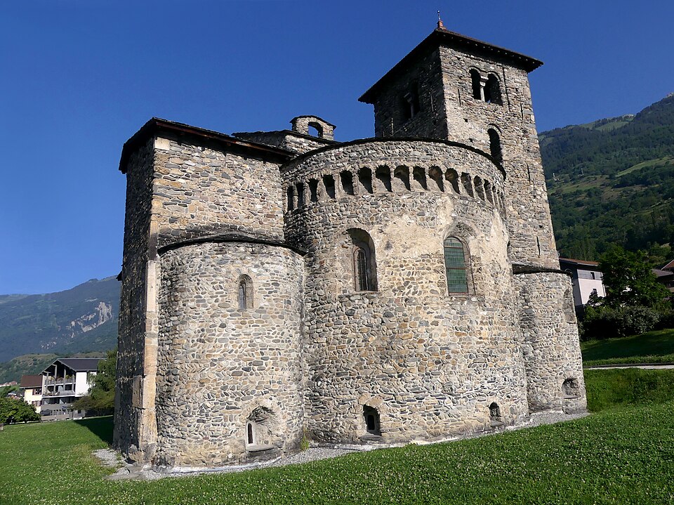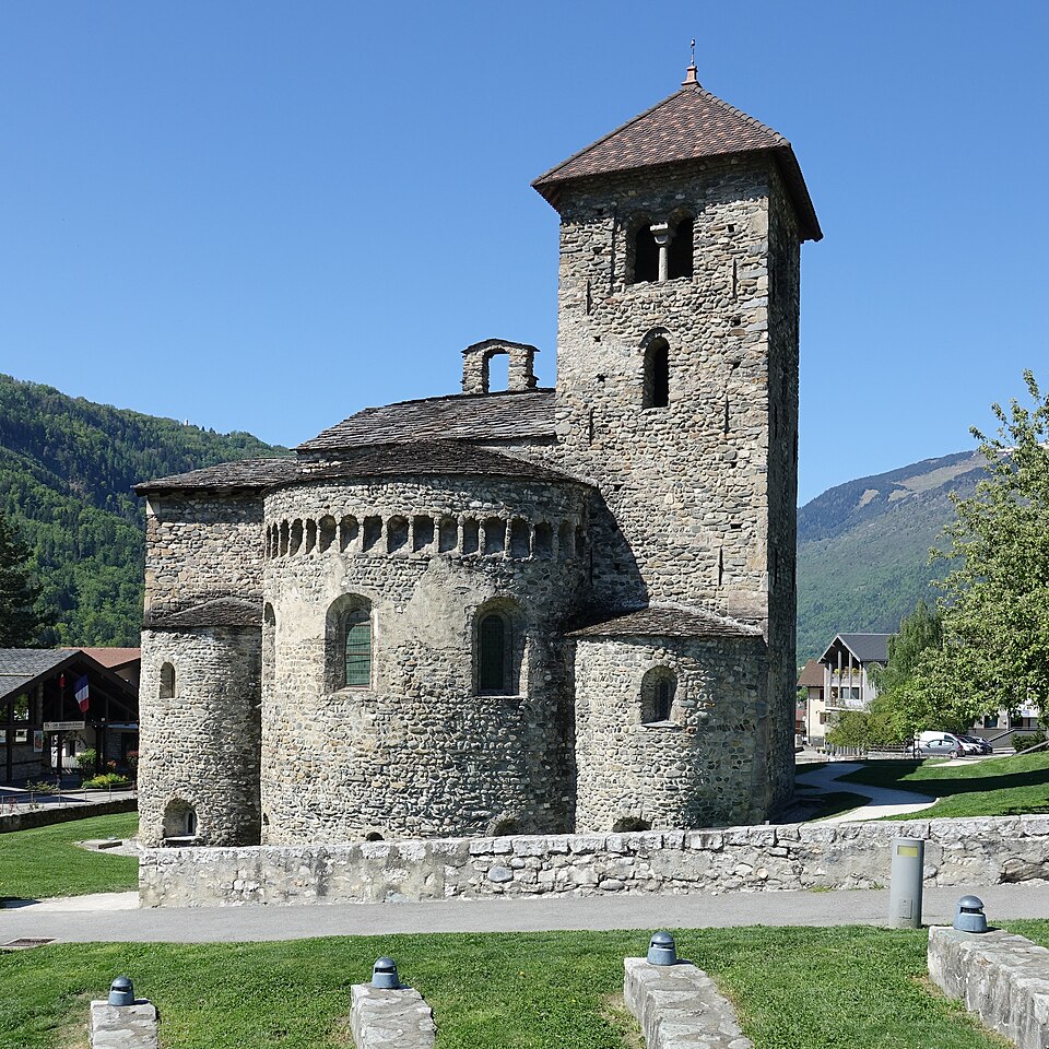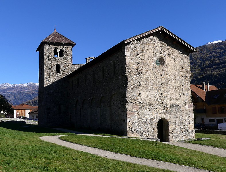Entre 1868 et 1877, des fouilles dirigées par l'architecte Étienne-Louis Borrel ont mis au jour, sous la basilique actuelle, une basilique civile romaine estimée du IIe siècle et les vestiges d'une église primitive dont certains éléments paraissent dater du VIIe siècle. L'édifice actuel relève du premier âge roman, qualifié d'art roman lombard. La basilique était une église prieurale dépendant de l'abbaye Saint-Michel-de-la-Cluse, en Val de Suse ; ses prieurs ont cessé d'y résider à partir du XVe siècle, la dignité ayant été mise en commende. Elle n'exerçait pas le rôle d'église paroissiale puisque seule une grande messe dominicale et des messes basses lors des fêtes y étaient célébrées. Au cours du Moyen Âge, elle a servi de sépulture à certains vicomtes de Tarentaise, les Briançon.