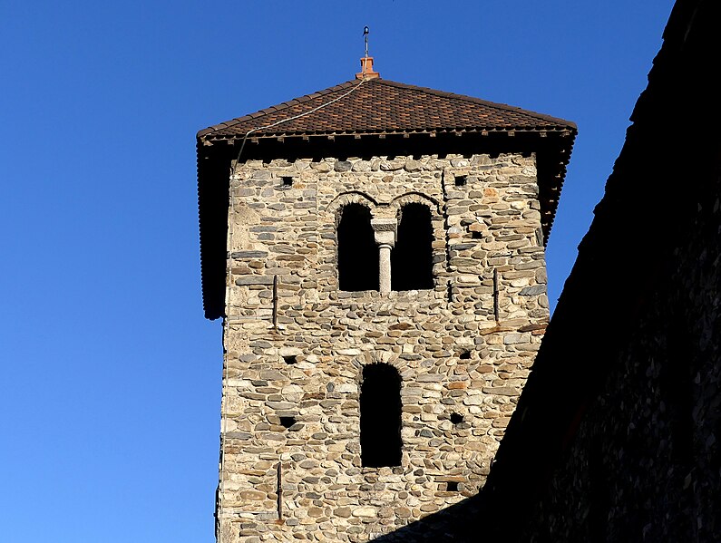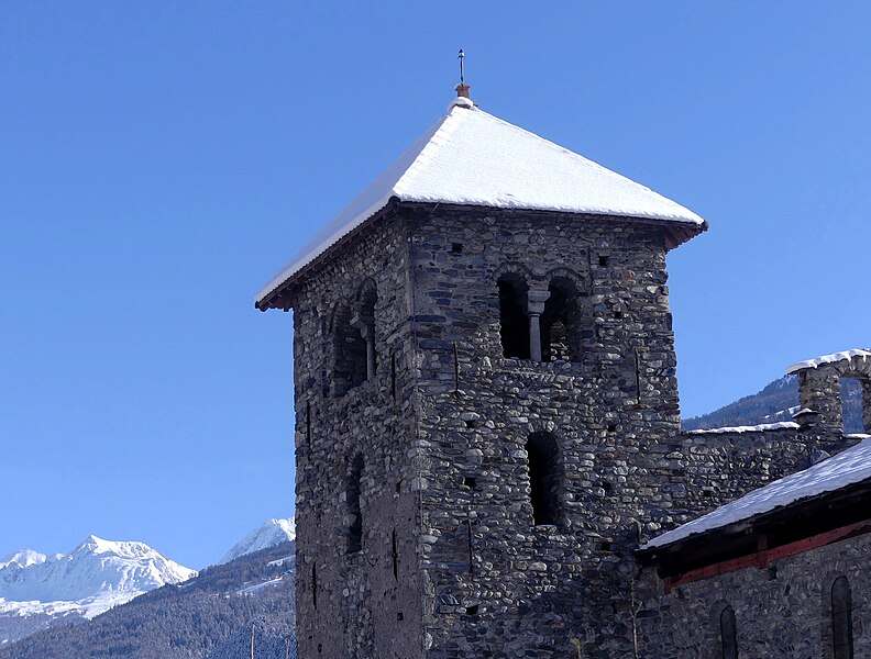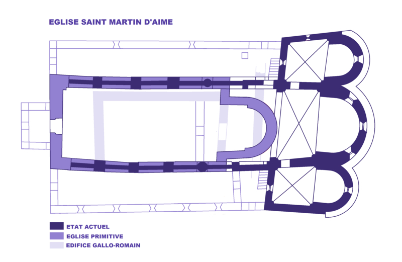 L'édifice est orienté : l'entrée se situe à l'ouest et le chevet à l'est. Il se compose d'une grande nef de six travées, non voûtée, associée à un transept dont le bras nord supporte un clocher carré. Le chevet est tripartite, avec une abside principale flanquée de deux absidioles. À l'origine, deux clochers existaient, mais l'un d'eux a été détruit en 1794 lors de l'occupation du duché de Savoie par les troupes révolutionnaires françaises ; seul l'autre a été reconstruit. Le chœur et ses abords conservent des fresques datées de la fin du XIIe et du début du XIIIe siècle ; recouvertes de plâtre en 1696, elles ont été mises au jour lors des fouilles et montrent, malgré des dégradations, des scènes de la Création et du Paradis, tandis que le Massacre des Innocents n'est que partiellement lisible. Sous l'édifice se trouve une crypte d'aspect approximativement carré, de dimensions 7,95 m sur 7,50 m.