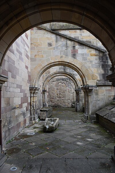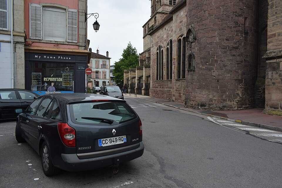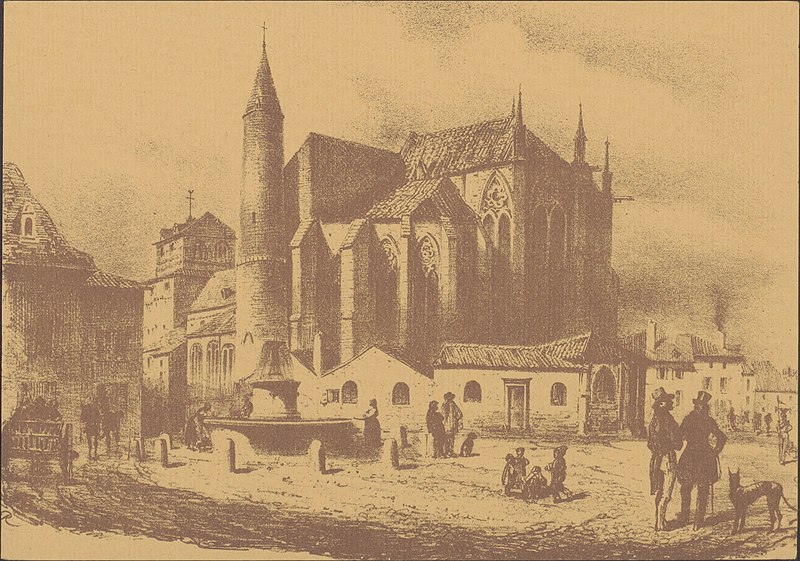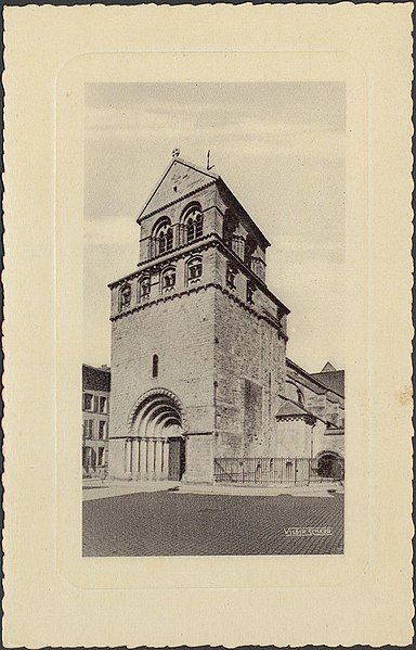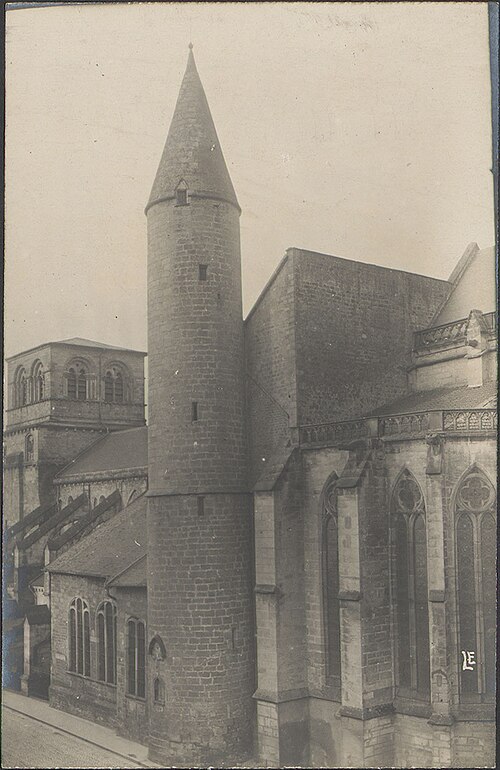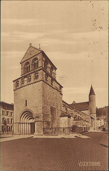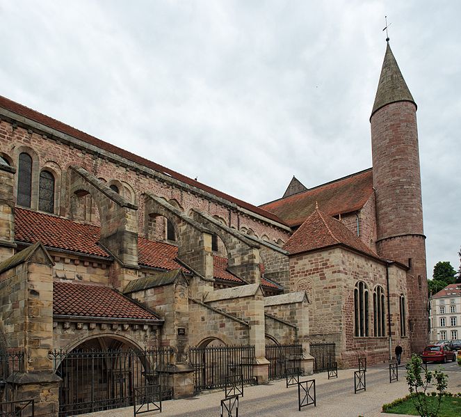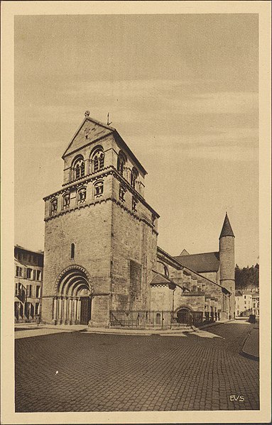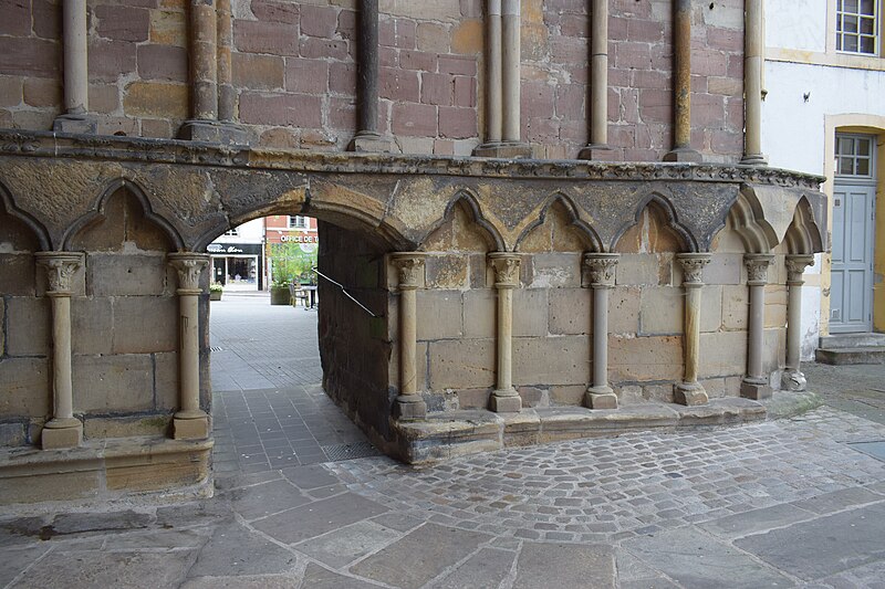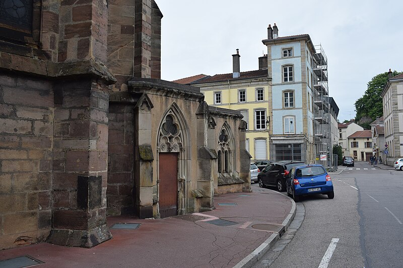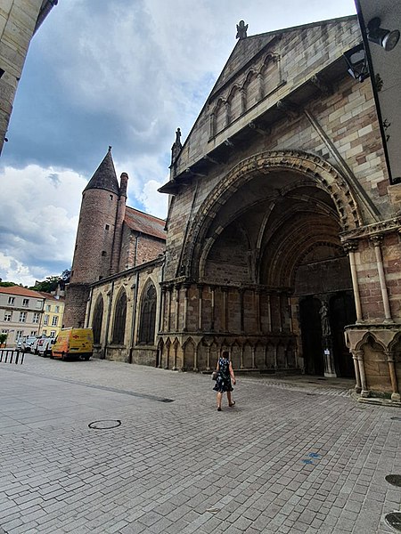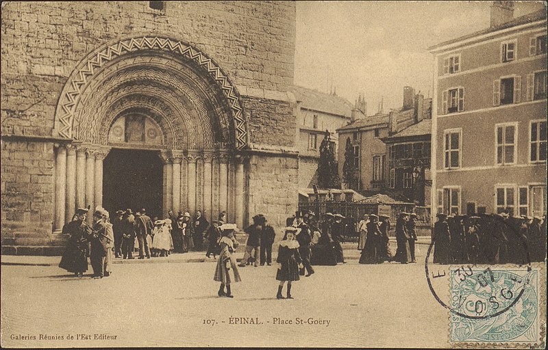 Le portail dit des Bourgeois reflète l'organisation spatiale médiévale : au XIIIe siècle, le cloître et les bâtiments conventuels bordaient le côté sud et les chanoinesses disposaient d'une entrée particulière, tandis que les paroissiens entraient par la porte nord dite des bourgeois ; cette disposition subsista jusqu'au XIXe siècle, quand fut percée dans la tour une nouvelle entrée, nommée Antrée Mons St-Goéry. Le portail présentait un riche décor sculpté avec statues sur les parois latérales, trois tympans et des voussures ornées ; il fut fortement dégradé en 1793, puis fait l'objet de travaux sous la direction d'Émile Boeswillwald exécutés par Schuler. L'entrée, de forme trapézoïdale et large de 7,6 mètres, comporte une croisée d'ogive dont la clé représente un agneau entouré d'un cercle de feuillage et d'une figure très abîmée, peut-être un ange ; l'arc sur la rue est légèrement brisé et muni d'une archivolte à deux voussures décorées de feuilles se terminant en crochets, le tout étant surmonté d'une arête en saillie portée par des corbeaux en forme de gargouilles. Au centre, sur le trumeau, se trouve une statue de la Vierge à l'Enfant haute de 2,25 mètres, avec des traces de polychromie et attribuée au XIIIe siècle ; cinq têtes provenant du portail sont conservées au Musée départemental d'art ancien et contemporain d'Épinal.