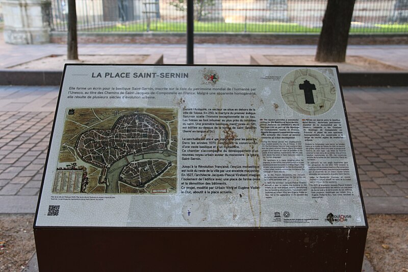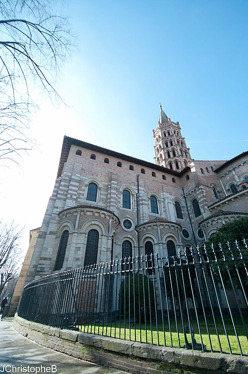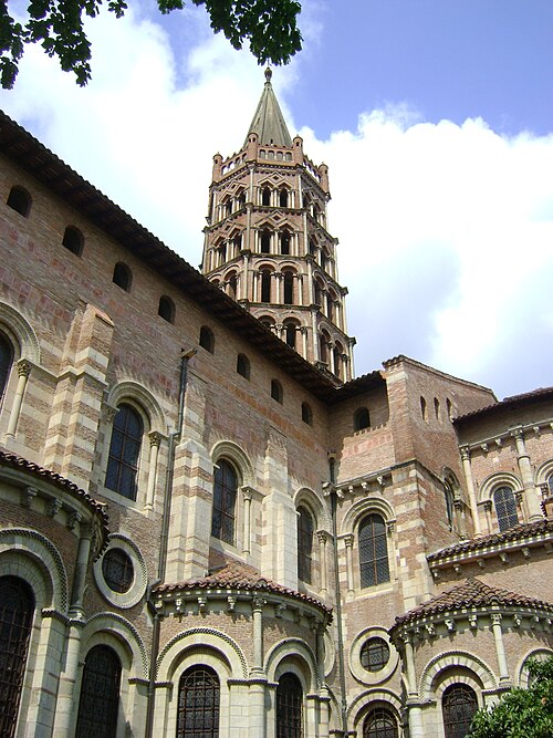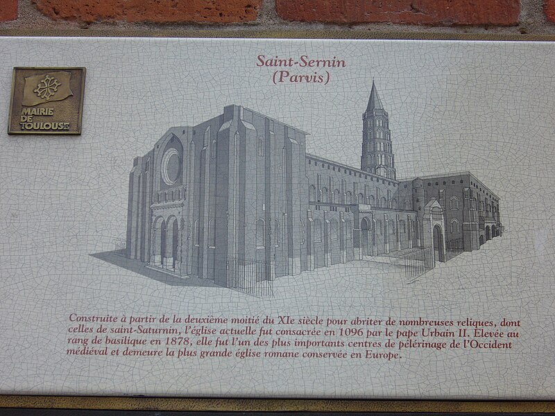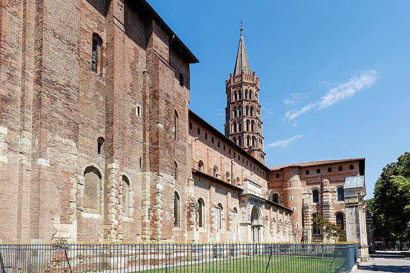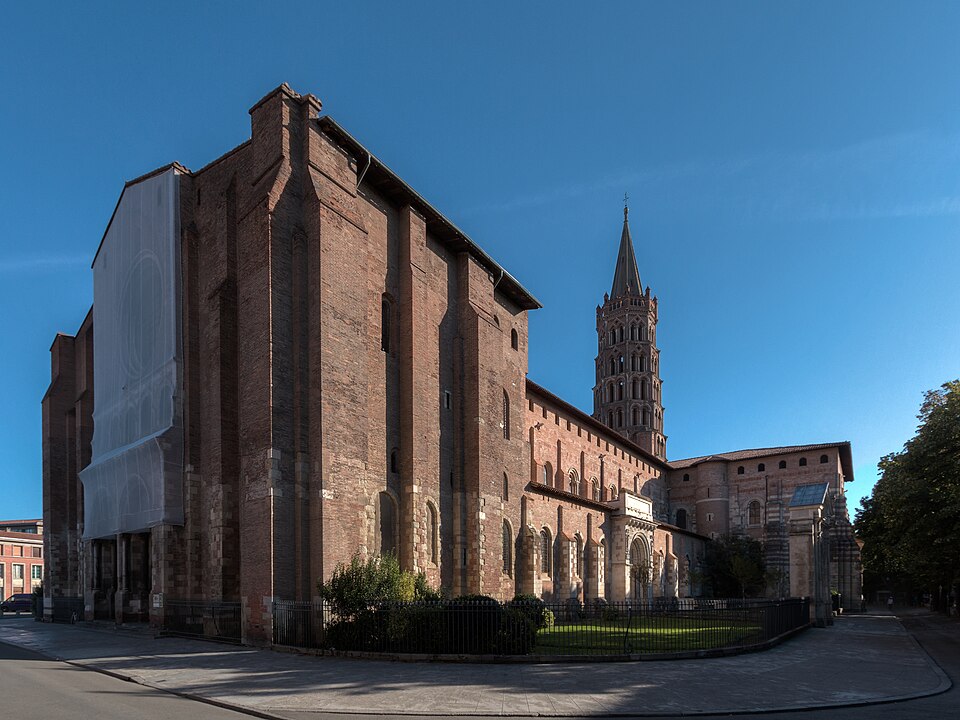 La basilique Saint‑Sernin, située au cœur de Toulouse, est l’un des plus vastes et des mieux conservés exemples d’architecture romane en Europe. Elle a été élevée à la fin du XIe siècle pour abriter les reliques de saint Saturnin, martyr et premier évêque de Toulouse, et les parties les plus anciennes de l’édifice datent de sa consécration en 1096. Un sanctuaire paléochrétien, attesté dès l’Antiquité tardive, avait précédemment accueilli le tombeau du martyr et favorisé le développement d’une nécropole chrétienne autour du site. La basilique devint rapidement un centre de pèlerinage majeur et une étape importante sur les chemins de Saint‑Jacques‑de‑Compostelle.