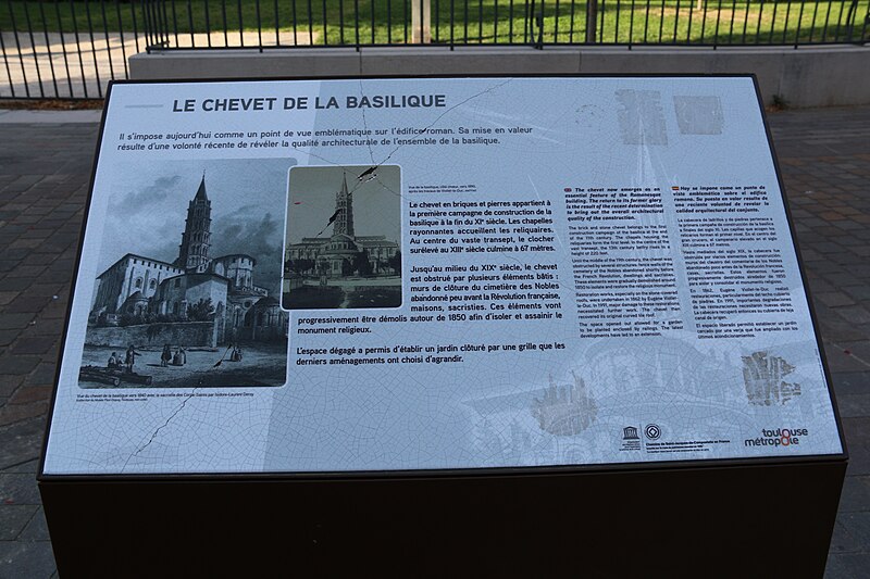 La communauté de chanoines, active dès le haut Moyen Âge, fit de l’abbaye un pouvoir influent, doté de ressources et d’un vaste temporel ; cette puissance se manifesta dans les rivalités avec les autorités urbaines et féodales et contribua à l’essor urbain et artistique de Toulouse. Le chantier roman, lancé à la fin du XIe siècle et poursuivi pendant plusieurs siècles, répondait au besoin d’accueillir un grand afflux de pèlerins : le plan, conçu pour permettre la circulation autour des reliques sans gêner le culte, a fait date dans l’architecture des grandes églises de pèlerinage. L’église comprenait à l’origine cinq vaisseaux séparés par quatre rangées de piliers et conserve un riche décor sculpté, avec notamment deux cent soixante chapiteaux romans.