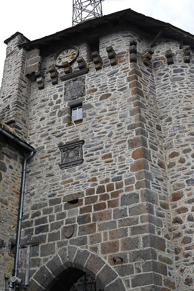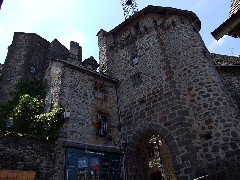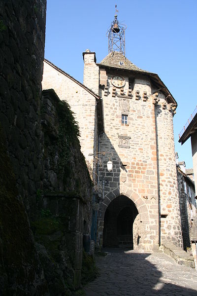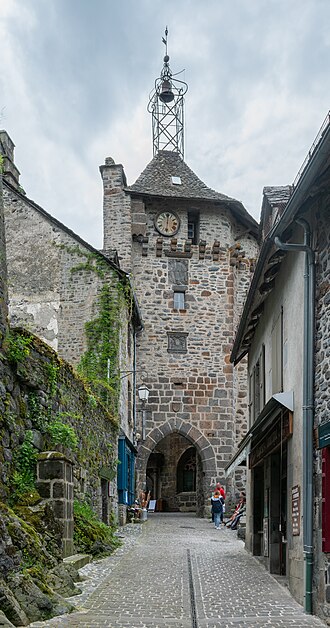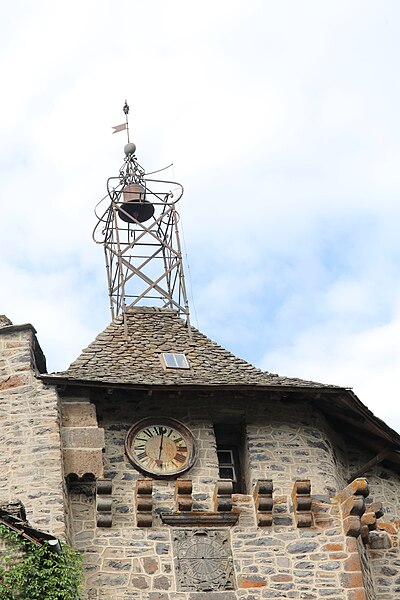 Le beffroi, également appelé Tour de l'horloge, se situe rue du Beffroi, au centre de Salers (Cantal, Auvergne‑Rhône‑Alpes). Il s'élève au‑dessus d'une porte voûtée en ogive, dite porte Sainte‑Anne. Une tour carrée surmonte cette porte et une tour ronde s'appuie contre son flanc droit. La partie inférieure de l'ouvrage pourrait dater du XIVe siècle. Des mâchicoulis et des corbeaux ornent la construction, qui est coiffée d'une toiture surmontée d'une structure en ferronnerie. Le beffroi est classé au titre des monuments historiques par arrêté du 29 janvier 1929.