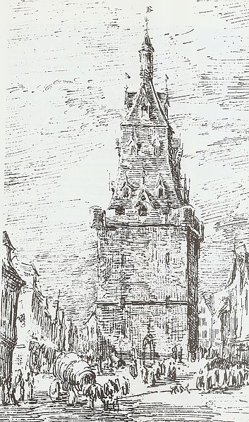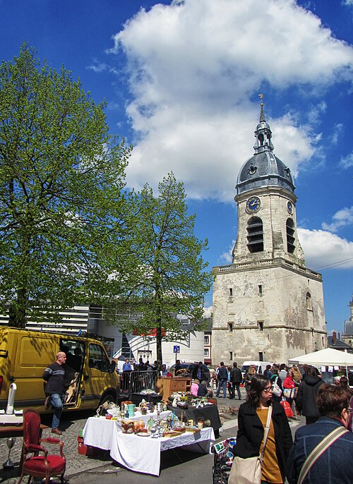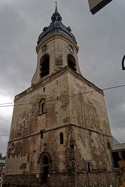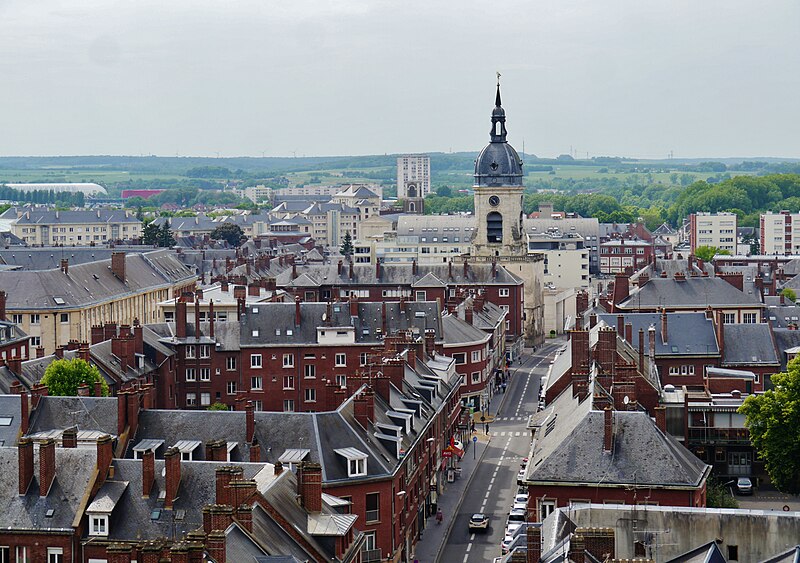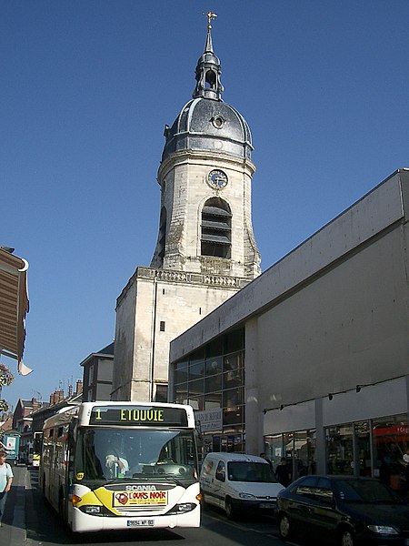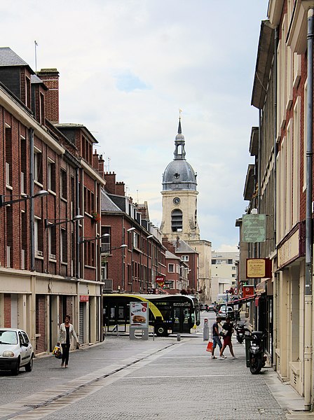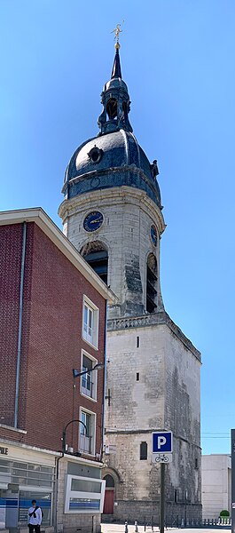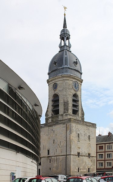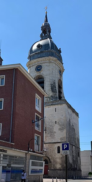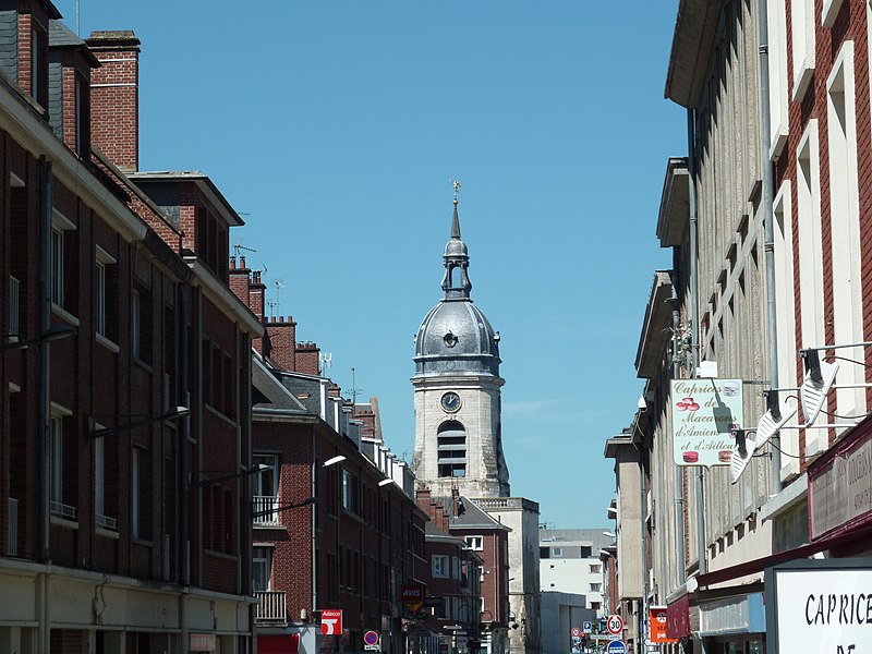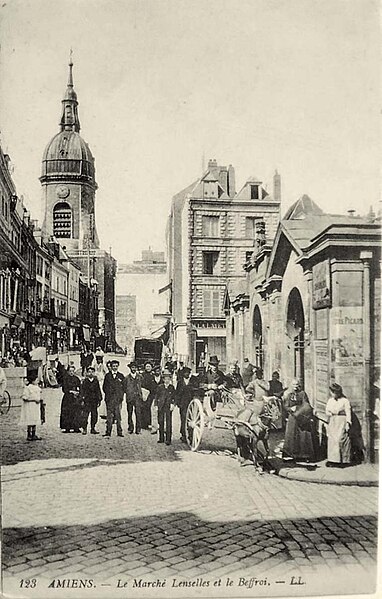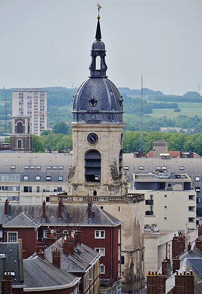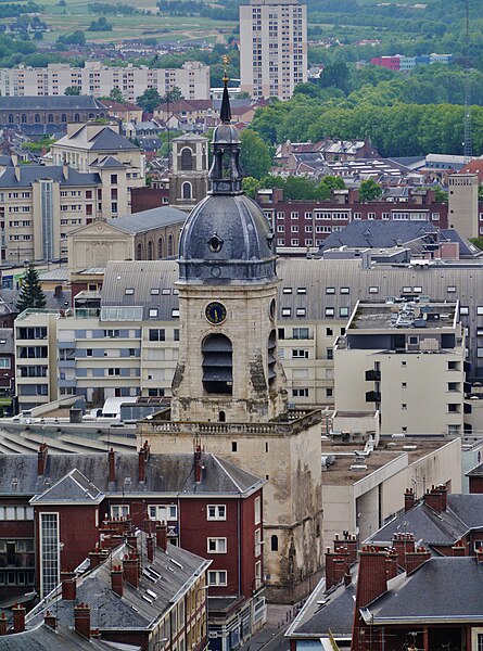 Le beffroi d'Amiens, situé place au Fil dans le centre-ville, est inscrit à l'inventaire supplémentaire des Monuments historiques depuis le 7 août 1926 et figure depuis 2005 au patrimoine mondial de l'UNESCO au titre des Beffrois de Belgique et de France. Les Amiénois le surnomment en picard « Ch' Bédouf ». L'origine du beffroi remonte à la fondation de la commune d'Amiens en 1113, reconnue par l'évêque Geoffroy et le roi Louis VI. Les comte Enguerrand de Boves et son fils Thomas de Marle refusèrent d'abord cette reconnaissance ; Guibert de Nogent et Suger rapportent ces événements et l'intervention militaire du roi. Les opposants se retranchèrent dans la forteresse du Castillon, héritée de l'époque romaine ; Louis VI tenta un assaut en 1115, fut blessé, puis le siège se prolongea deux ans ; en 1117 le Castillon tomba et fut détruit sur ordre du roi, et les bourgeois firent édifier le beffroi sur son emplacement. Le monument est mentionné pour la première fois dans une sentence arbitrale du chapitre d'Amiens en 1244. Reconstruit au début du XVe siècle entre 1406 et 1410, il symbolisait l'indépendance communale et servit successivement de salle de réunion pour les notables, de dépôt d'archives, de magasin d'armes et de prison, tandis qu'un guetteur surveillait les abords et alertait la population. Un règlement du 29 mai 1782 impose que, sur le son de la cloche du beffroi, les quatre compagnies privilégiées se rendent sur les lieux d'un sinistre vêtues de leurs chapeaux d'uniforme et de leur giberne, pour maintenir l'ordre sous la direction des officiers municipaux et du commandant de place. Le beffroi jouxte les Halles et l'arrière de l'Hôtel de ville et sonnait chaque heure. Il a subi des incendies les 13 août 1562 et 16 avril 1742 ; les réparations ne commencèrent qu'en 1749 et le projet de l'architecte Beffara fut finalement retenu, donnant au beffroi l'aspect qu'il présente aujourd'hui. La grosse cloche « Marie-Firmine » fut fondue le 2 août 1748 dans les jardins de l'évêché par Jean et Charles Cavillier, fondeurs à Carrépuis : elle mesurait 2,43 m de diamètre, 2,06 m de hauteur, pesait 11 tonnes et son battant pesait 315 kg. Le 19 mai 1940, un violent bombardement de la Luftwaffe détruisit la toiture et la charpente ; la cloche de 11 tonnes se brisa en tombant au sol. Le monument resta à l'abandon et dépourvu de toiture jusqu'aux travaux de restauration engagés en 1988 ; il retrouva une nouvelle charpente, inspirée du XVIIIe siècle, en 1989 et une nouvelle girouette dite « renommée » fut posée en 1990. La grosse cloche ne fut pas refondue et un carillon fut installé à sa place, conformément à la décision du maire Gilles de Robien. Le beffroi s'élève à 52 mètres de hauteur ; il présente une base en pierre de taille blanche construite au XVe siècle, surmontée d'un clocher en pierre édifié à partir de 1749, avec des volutes de style baroque à sa base, un dôme couvert d'ardoises, une flèche et la girouette sommitale. À l'intérieur subsistent des cachots ornés de graffitis et les fragments de la cloche brisée. Lors de la restauration, un tailleur de pierre a sculpté, aux arrêts de la moulure de l'archivolte de la porte, les portraits des deux maires qui se sont succédé pendant ces travaux, René Lamps (1988-1989) et Gilles de Robien (1989-1990).