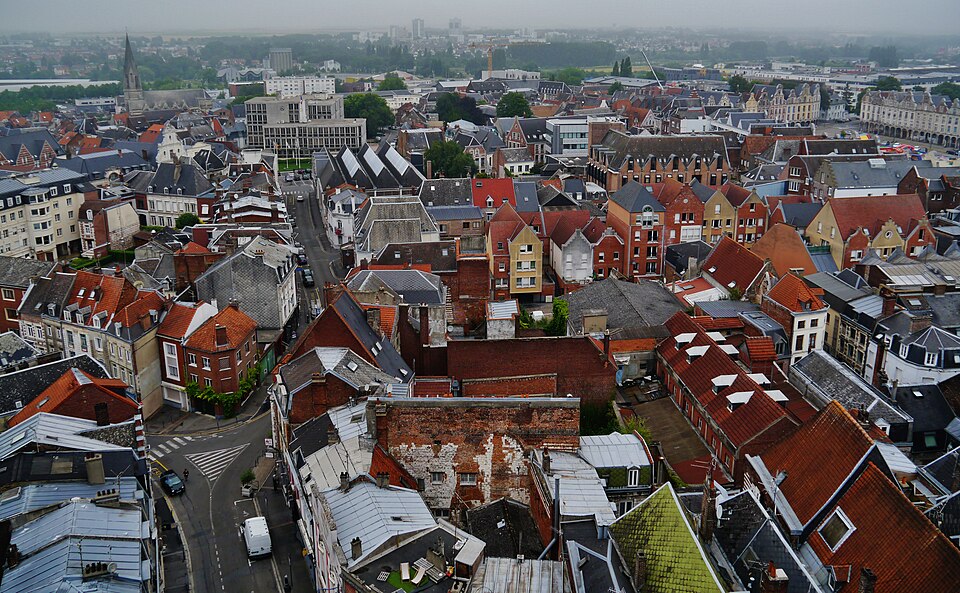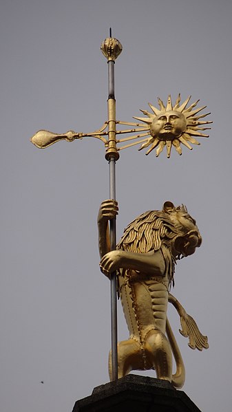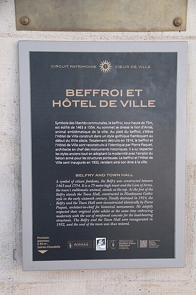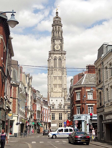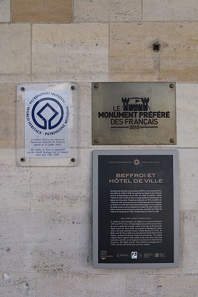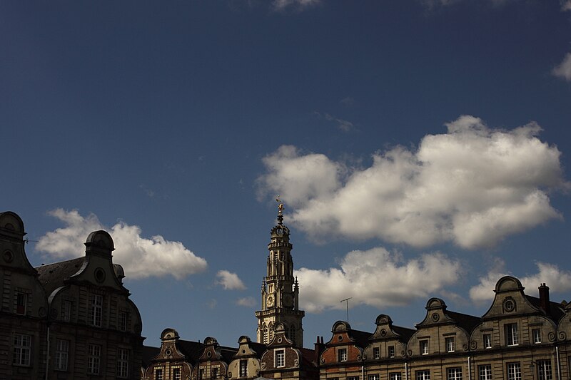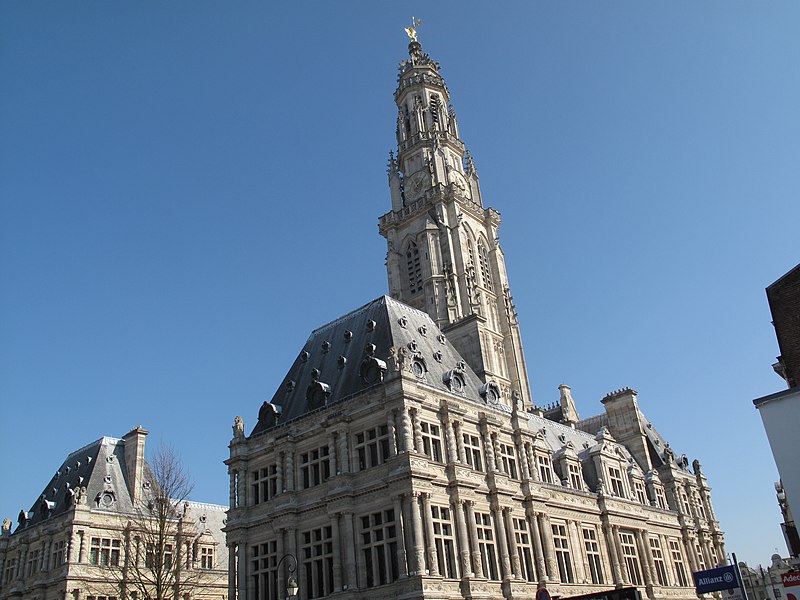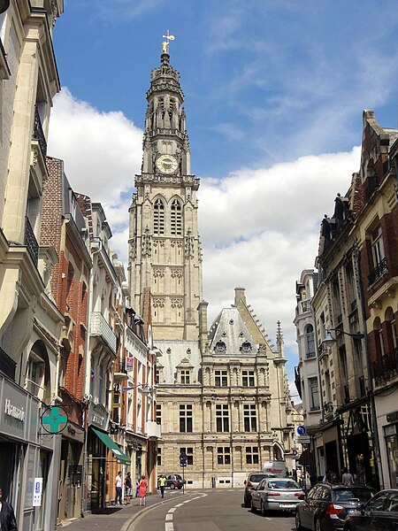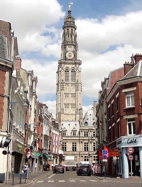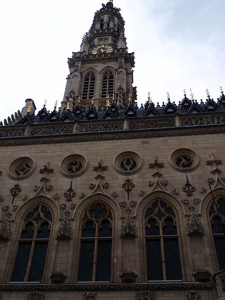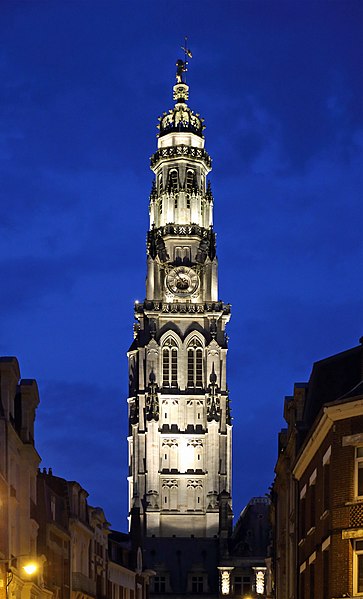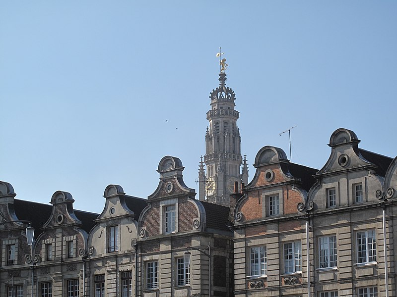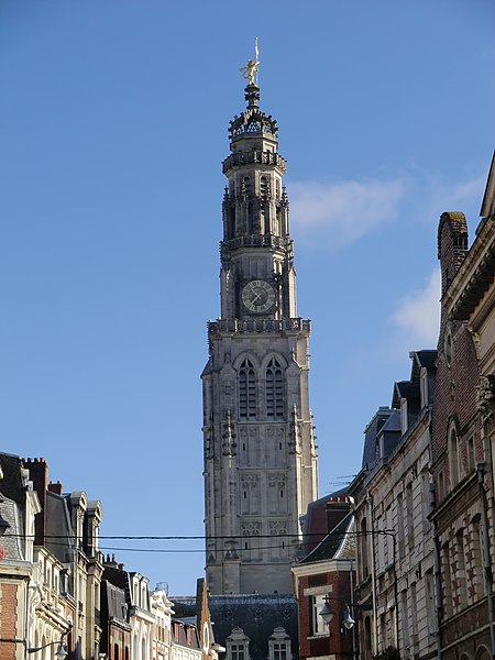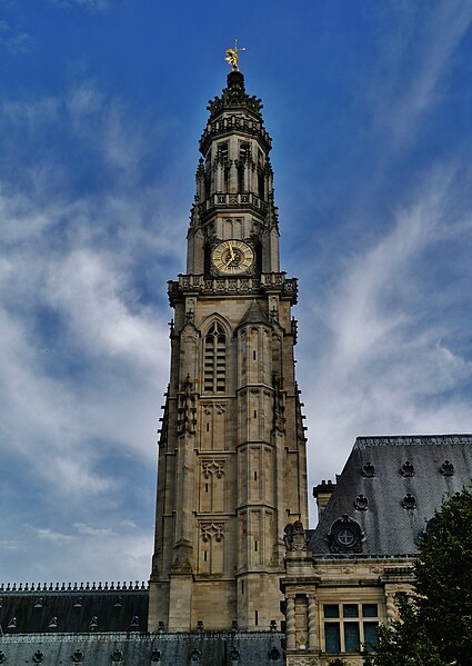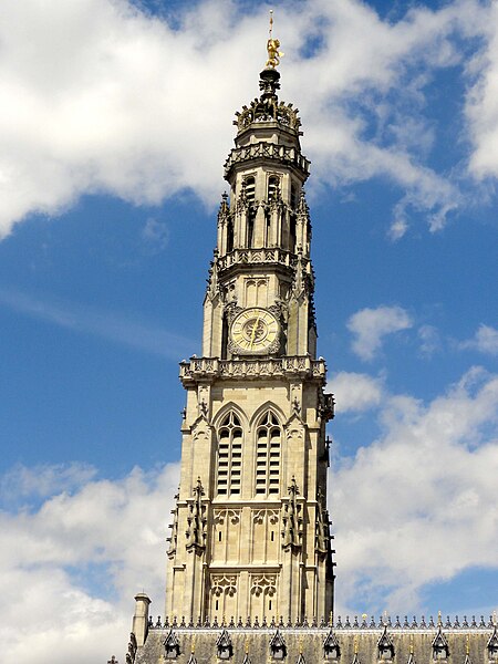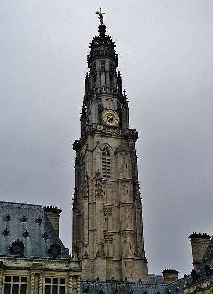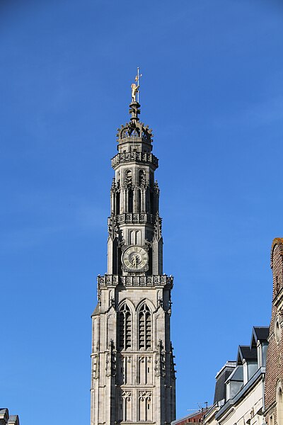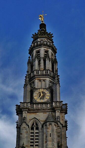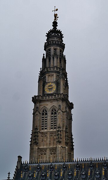 Le lion d'or qui domine la flèche, réplique de l'original installé sous Louis XIV, est lié à l'histoire de l'édifice, l'original étant exposé au musée des beaux-arts d'Arras après avoir subi les destructions de la guerre.