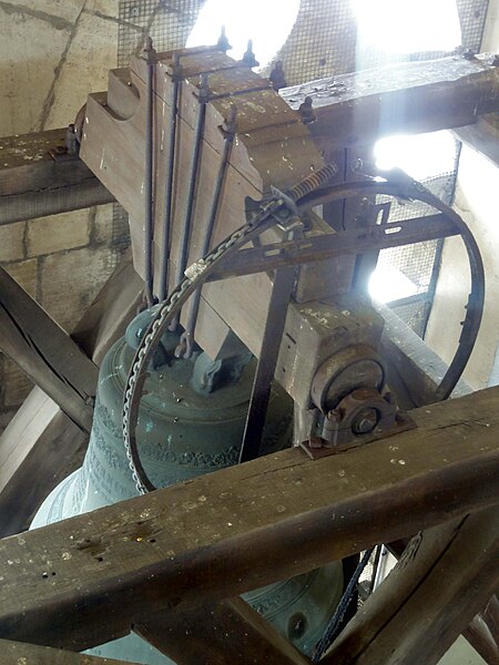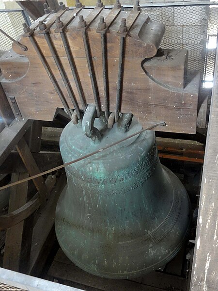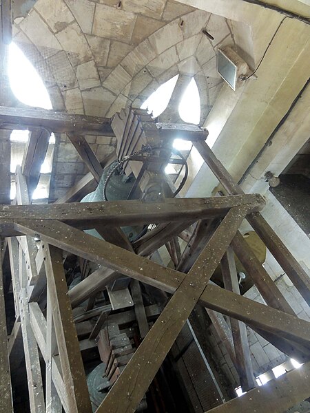 En 1877 il abritait quatre cloches principales ; lors de la présentation pour le classement au patrimoine mondial, le beffroi comptait quarante cloches et un carillon électrique.