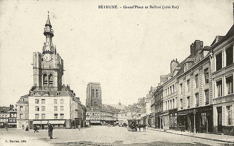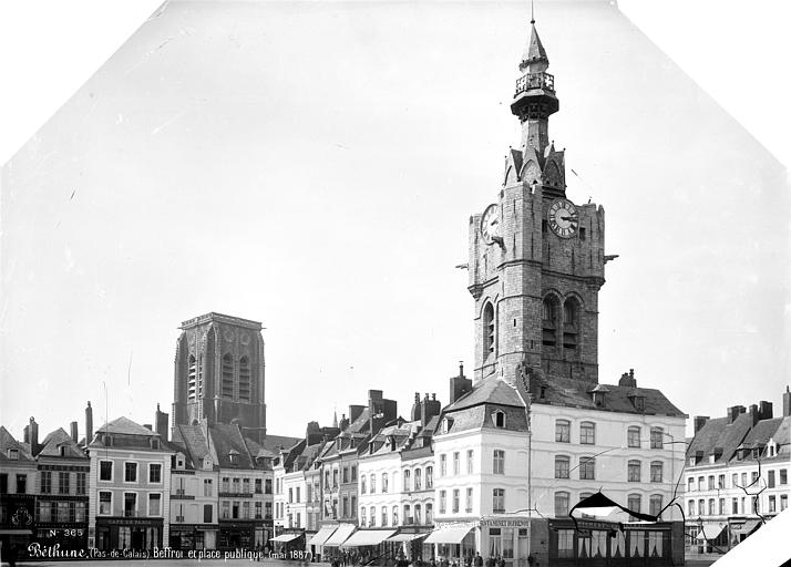 Le beffroi de Béthune, érigé au centre de la Grand‑Place, est un symbole de la ville et se dresse depuis 1388. Classé monument historique en 1862, il fait partie des 23 beffrois inscrits au patrimoine mondial de l'UNESCO en 2005.