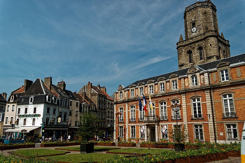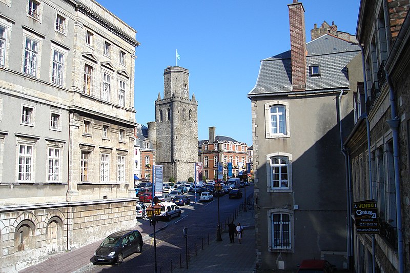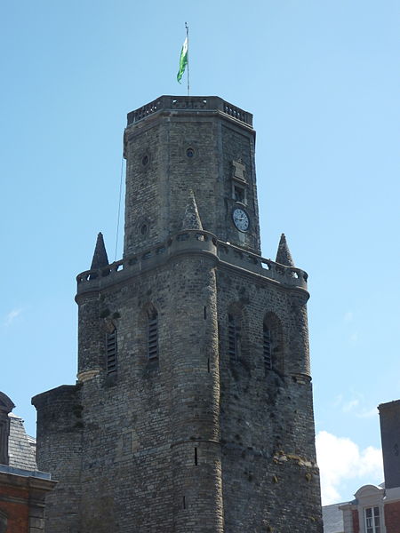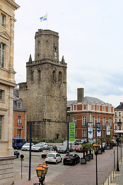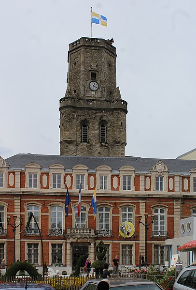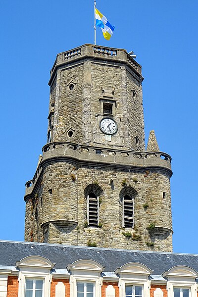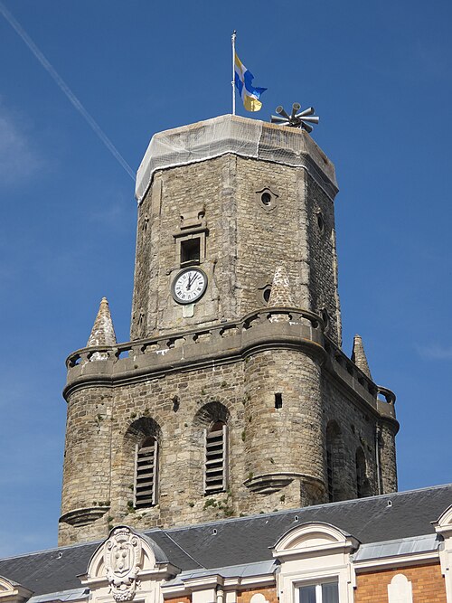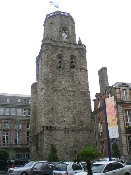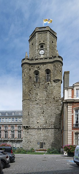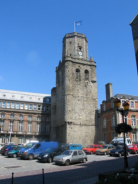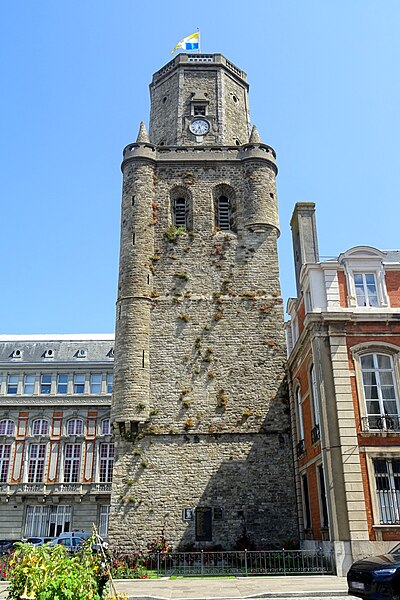 Le beffroi de Boulogne-sur-Mer, ancien donjon élevé au XIIe siècle pour le premier château comtal, se dresse place Godefroy-de-Bouillon. Il est inscrit au titre des monuments historiques depuis le 10 juin 1926. Sa construction est attribuée à Renaud de Dammartin, comte de Boulogne, l’un des seigneurs puissants du royaume qui s’opposa au roi Philippe Auguste. Ce donjon constitue le dernier vestige du château comtal, qui comportait d’autres bâtiments vraisemblablement plus spacieux et en grande partie en bois. Philippe Hurepel, son successeur, fit édifier un nouveau château à l’angle oriental de l’enceinte urbaine et céda l’ancien donjon aux bourgeois de la haute ville, qui en firent leur beffroi. La tour abritait la cloche marquant le rythme de la vie sociale et servait d’écrin sûr pour le sceau, la charte et les autres documents communaux. Face aux tours du seigneur et de l’église, elle symbolisait la liberté communale et l’affirmation du pouvoir échevinal, bien que ce pouvoir fût en réalité limité. En 1268, après le refus des bourgeois de payer un subside pour la croisade, Louis IX supprima la charte communale, brisa le sceau et la cloche, et le beffroi fut partiellement détruit; il fut reconstruit l’année suivante lorsque les privilèges furent rétablis, et c’est probablement de cette période que date l’étage destiné aux cloches. L’étage octogonal que l’on voit aujourd’hui a été établi au début du XVIIIe siècle par l’ingénieur Martinet pour remplacer une flèche en ardoise détruite par un incendie en 1712. Avant cette transformation, le beffroi, coiffé d’une flèche en charpente et en ardoise cantonnée de quatre petites flèches au-dessus des échauguettes d’angle médiévales, devait ressembler à celui de Douai. Le beffroi fut le seul monument historique de la ville épargné lors des bombardements de la Seconde Guerre mondiale. Depuis 2005, il fait partie, avec d’autres beffrois de la région, du patrimoine mondial de l’humanité.