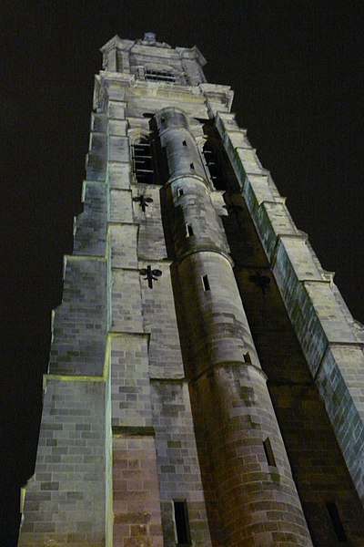 La Tour Saint-Martin, dite aussi beffroi, se situe à Cambrai dans le département du Nord. Elle est inscrite au titre des monuments historiques depuis le 15 juillet 1965 et fait partie des vingt-trois beffrois du Nord-Pas-de-Calais et de Picardie inscrits au patrimoine mondial de l'UNESCO en 2005. L'existence d'un beffroi à Cambrai est attestée dès le XIe siècle, l'évêque Manassès l'ayant fait détruire en 1095. Rétabli en 1207, il fut de nouveau démoli sur l'ordre de l'empereur Henri et connut plusieurs constructions et démolitions liées aux révoltes communales. Symbole des libertés municipales, le beffroi sonnait pour rassembler les magistrats, annoncer les réjouissances publiques et parfois appeler au soulèvement contre l'autorité ecclésiastique et impériale. En 1395, Cambrai obtint de l'empereur Venceslas l'autorisation de posséder un beffroi. Le clocher de l'église Saint-Martin remplit cette fonction à partir du XVIe siècle ; si l'église fut détruite à la Révolution, le beffroi fut préservé. Édifié en style gothique entre 1447 et 1474, il culminait alors à près de 57 mètres. Endommagé en 1528 par la foudre puis lors du siège de 1595, sa partie supérieure fut démolie en 1698. Sa reconstruction, achevée en 1736, a donné au clocher les proportions actuelles. Entre 1732 et 1736 la flèche torsadée fut remplacée par un dôme surmonté d'un lanternon, conférant au beffroi une silhouette d'environ 62 mètres. En 1918, les Allemands, en repliant leurs troupes, enlevèrent la grosse cloche et la précipitèrent du haut du clocher pour l'envoyer à la fonte ; malgré la chute elle ne se brisa pas et fut retrouvée à Bruxelles après l'Armistice. Cambrai célébra le retour de ses cloches et statues en 1919. Lors des fêtes du 15 août 1920, un incendie se déclara au beffroi ; un feu de Bengale aurait communiqué le feu au bois de la plate-forme supérieure. Les pompiers ne purent atteindre les flammes, les lances ne portant pas jusqu'à plus de 60 mètres, et à 14 h 30 le lendemain la grosse cloche s'écrasa au sol en se fissurant. La cloche fut refondue et sonna de nouveau le 14 juillet 1921. La tour fut réparée et conserva sa silhouette traditionnelle. Les quatre statues d'angle originelles, réduites en masses informes par l'incendie, furent remplacées par des personnages sculptés par Marcel Gaumont. Ces sculptures représentent un chef franc au nord‑est, un archer des milices communales au sud‑est, Louise de Savoie au sud‑ouest — qui signa la Paix des Dames en 1529 — et le marquis de Cézen au nord‑ouest, premier gouverneur de Cambrai après la prise de la ville par Louis XIV. L'institution du guet existe depuis plusieurs siècles : un guetteur était en place en 1400 et on en comptait quatre en 1681. Ces guetteurs, appelés gallus (du latin gallus, le coq), annonçaient l'arrivée d'ennemis, alertaient les habitants en cas d'incendie, marquaient les heures et demi-heures sur la cloche, indiquaient l'heure du couvre-feu et annonçaient l'ouverture et la fermeture des portes de la ville. Deux gallus se relayaient au clocher de 21 heures à 6 heures et veillaient depuis une chambre aménagée dans le dôme. Pour atteindre leur loge, ils devaient gravir 248 marches. Les derniers gallus connus, MM. Saliege et Caudron, exercèrent jusqu'en 1934, date à laquelle la fonction disparut avec l'électrification des cloches. En septembre 1674, les pasteurs de Saint‑Martin se plaignirent que les gallus laissaient tomber pierres, immondices et urine sur la toiture de l'église, l'endommageant ; le magistrat se contenta d'ordonner aux gallus de cesser ces pratiques. Au XVe siècle le sommet était couronné d'une flèche torsadée remplacée au XVIIIe siècle par un lanternon. Quatre sculptures réalisées en 1922 par Marcel Gaumont ornent les angles et évoquent les figures historiques mentionnées ci‑dessus. Le beffroi est fermé au public en raison de l'état des marches.