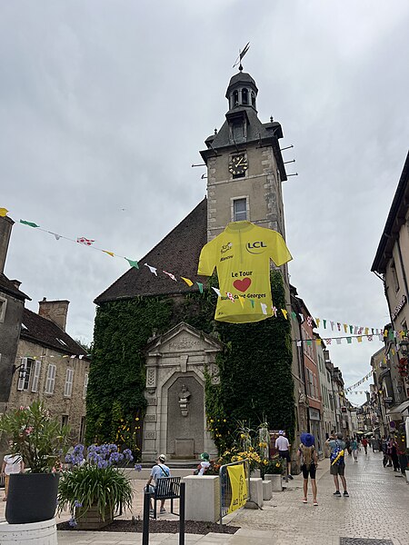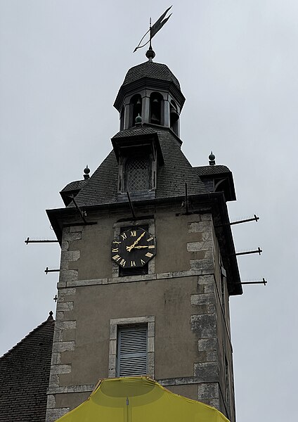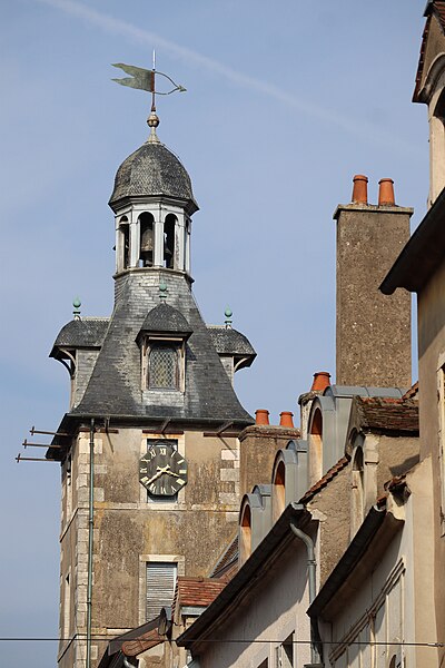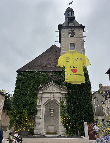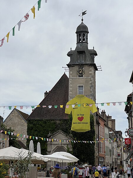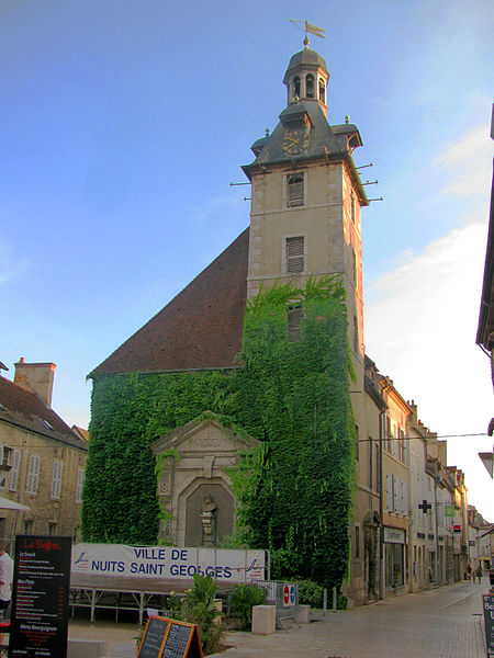 Le beffroi de Nuits-Saint-Georges, d'inspiration flamande et daté du XVIIe siècle, se situe sur la place de la République, au cœur du centre historique commerçant de la cité. Le bâtiment carré qui l'intègre a été construit entre 1610 et 1619, sur la route des Grands Crus du vignoble de Bourgogne, à proximité du château du Clos de Vougeot. Entre 1619 et 1629, une tour de deux étages et une cave a été intégrée à cet édifice comme tour de garde ; en 1633 on a ajouté au sommet un campanile en forme de lanterneau octogonal abritant un carillon automatique composé de plusieurs cloches, dont l'une, datée de 1619, est classée. L'ensemble abrita l'hôtel de ville jusqu'en 1833 ; le bailliage où se réunissaient les échevins se trouvait à l'arrière, séparé par des halles en bois. La démolition du bailliage en 1832 puis celle des halles en 1848 libéra une vaste place, faisant du beffroi un monument symbolique de la ville. En 1830, un édicule rappelant l'ancienne porte de la ville fut élevé sur le mur donnant sur la place de la République. Un buste du sculpteur nuiton Paul Cabet (1815-1876), que la plaque historique attribue à Hébert et date de 1885, se trouve actuellement sur la façade ; en 1933 Paul Gasq a par ailleurs érigé un monument à Paul Cabet au-dessus d'une fontaine. L'édifice, souvent recouvert de vigne vierge, a été restauré en 1989 et fait toujours entendre son carillon automatique. Il est inscrit aux monuments historiques depuis le 24 janvier 1947 et n'est pas ouvert à la visite.