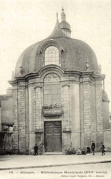 La bibliothèque municipale d'Alençon, ancienne chapelle des Jésuites, se situe 33 rue du Collège à Alençon (Orne). Les Jésuites ouvrent un collège en 1620 ; l'ancienne église du collège, construite entre 1679 et 1708, servait de lieu de culte et, occasionnellement, de salle pour des représentations théâtrales et des activités culturelles. Lorsque les Jésuites sont bannis en 1763, le collège passe en d'autres mains. Sécularisée pendant la Révolution, l'église est divisée horizontalement par un plancher qui crée à l'étage l'espace destiné à la bibliothèque et isole celui-ci du rez-de-chaussée. La bibliothèque municipale, aujourd'hui médiathèque, est ouverte au public depuis 1803 et est installée dans cette ancienne église. Au XVIIIe siècle, une construction a été accolée à la face sud du bâtiment pour recevoir une collection particulière léguée à la ville. Les boiseries qui encadrent la bibliothèque proviennent de la chartreuse Notre-Dame du Val-Dieu et ont sans doute été sculptées par des chartreux. Le monument présente des lignes ondulées et un profil galbé qui s'écartent des préceptes de l'Académie Royale d'Architecture fondée par Colbert en 1671, faisant de lui l'un des rares témoignages de l'architecture baroque dans l'ouest du royaume. L'édifice est inscrit au titre des monuments historiques par arrêté du 22 octobre 1926.