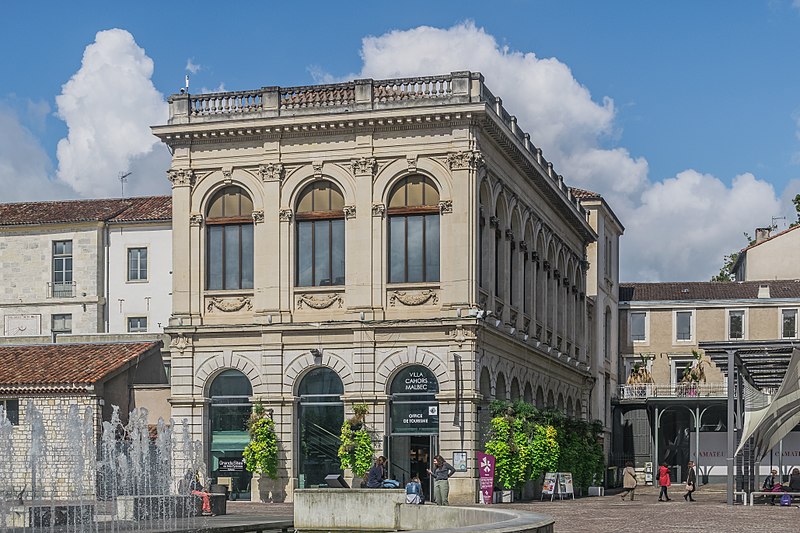 La bibliothèque municipale de Cahors, située place François-Mitterrand sur le boulevard Léon-Gambetta, est un monument historique. Ses origines remontent à 1790, quand elle fut installée dans deux grandes pièces de l'école centrale, ancien collège des Jésuites, et gérée par cet établissement. La collection initiale provient des bibliothèques monastiques de la ville réquisitionnées pendant la Révolution. La gestion fut confiée à la municipalité le 8 pluviôse an XI (28 janvier 1803). Le premier catalogue est daté de 1803 ; il fut cependant mis au point en 1877 par François Cangardel et sert encore aujourd'hui. À la fin du XIXe siècle la bibliothèque est transférée dans un bâtiment spécialement construit, dont la construction fut confiée à l'architecte départemental Jean Rodolosse en 1895. Le projet, que l'on situe autour de 1890, a vu son gros-œuvre réalisé sous sa direction entre 1895 et 1899 ; Rodolosse avait envisagé une aile basse le long des allées Fénelon destinée à un promenoir et au musée, projet non réalisé. Le bâtiment rectangulaire est organisé en travées régulières sur deux niveaux et la structure prévoyait à l'origine un rez-de-chaussée largement évidé. Une ligne de poteaux en fonte soutient des poutres et porte des corbeaux en pierre alternant avec des piles de pierre ; ces éléments, rejetés derrière la façade principale, ponctuaient des espaces conçus pour des commerces et visaient à limiter les risques d'incendie. Les aménagements intérieurs de la salle de lecture furent exécutés sur les plans et devis de son prédécesseur et supervisés entre 1902 et 1908 par l'architecte Émile Toulouse. Le large escalier en bois à deux volées, éclairé par une verrière sommitale, est traité en faux appareil de plâtre au rez-de-chaussée puis en faux lambris à l'étage ; une série de bustes de marbre représentant des personnalités locales du XIXe siècle y est installée. La salle de lecture forme un ensemble très cohérent, avec ses meubles de rangement et ses boiseries murales, conçu selon la tradition héritée du XVIIe siècle comme une longue salle aux murs tapissés de livres et longée de fenêtres à l'est. L'espace central est occupé par des tables de lecture ovales et rectangulaires qui encerclent le calorifère. Le plafond est orné de gypseries : moulures et cordons feuillagés délimitent un vaste ovale ponctué de rosaces, tandis que les côtés nord et sud sont traités en bandes et en faux caissons et que les tympans des baies de l'élévation est portent des cartouches rococo non historiés. Le niveau de l'étage était décoré par de grandes toiles de Laury ; il ne subsiste que le tryptique du rez-de-chaussée, le "Marché Arabe" de 1903, ainsi qu'une "Chasse à cour" conservée au musée. La bibliothèque a bénéficié en 1999 de deux protections au titre des monuments historiques : une inscription pour la façade, la toiture et l'escalier, et un classement pour la salle de lecture. Elle recense 40 000 documents.