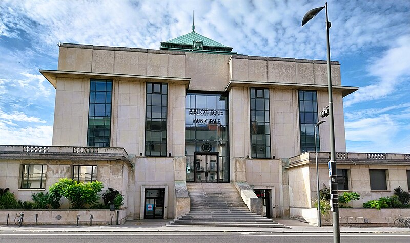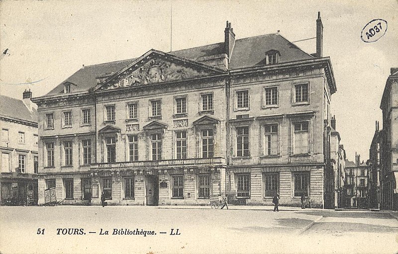 La bibliothèque municipale de Tours, située 2 bis avenue André-Malraux, en bordure de Loire près de la place Anatole‑France, du pont Wilson et de la rue Nationale, marque visuellement l'entrée nord de la ville. L'édifice actuel succède à un bâtiment détruit par un incendie lors des bombardements de juin 1940. Après la guerre, un projet fut confié à l'architecte Pierre Patout, chargé en 1948 de la création de l'entrée nord de la ville ; Jean et Charles Dorian ont assuré l'aménagement intérieur et la simplification du programme. Les travaux, conduits par Maurice Boille dans les années 1950, se sont achevés en 1957, année d'ouverture ; la pose de la première pierre avait fait l'objet d'une cérémonie officielle le 29 mai 1954. Le bâtiment, identifié aujourd'hui comme « bibliothèque centrale » au sein du réseau municipal, a été construit selon les exigences de la bibliothéconomie de l'époque et présentait un modèle hybride entre salle d'étude érudite et accès libre par rayonnages. Sa structure en béton, avec remplissage des façades en moellons et dallage de pierre, se distingue par un volume cubique surmonté d'un toit pyramidal en cuivre patiné abritant un étage vitré destiné à un auditorium. Intérieurement, les aménagements initiaux de Pierre Patout ont été largement modifiés : les espaces et les niveaux ont été doublés et sont aujourd'hui saturés, et l'accès principal a été déplacé au rez‑de‑chaussée, tandis que le monumental hall d'entrée précédé de degrés reste la trace la plus intacte du projet. La bibliothèque a fait l'objet d'une inscription au titre des Monuments historiques le 31 décembre 1996. D'importants travaux de mise aux normes ont entraîné la fermeture du site entre avril 2012 et décembre 2013. René Fillet, nommé en 1953 directeur à la fois de la bibliothèque municipale et de la bibliothèque centrale de prêt d'Indre‑et‑Loire, s'est illustré par le développement de la lecture publique, notamment en créant en 1956 le premier bibliobus scolaire de France et en promouvant un réseau de bibliobus et plusieurs annexes. Les collections municipales prennent leur origine dans les saisies révolutionnaires de 1791, mais des déménagements fréquents et un faible intérêt communal avaient favorisé vols et dispersion jusqu'à la mise en place d'un classement systématique au XIXe siècle et au premier catalogue de manuscrits établi par Auguste Dorange en 1875. L'incendie de juin 1940 entraîna la perte de l'essentiel des collections historiques et du riche fonds ancien ; seuls furent sauvés quelques manuscrits de grand prix et quelques incunables. Après-guerre, le fonds ancien a été partiellement reconstitué grâce à des achats et à des dons significatifs, notamment celui de l'abbé Raymond Marcel en 1972. En 2018, l'auteur et animateur Patrice Wolf fit don d'environ 15 000 documents de littérature jeunesse, rassemblés en 2019 au sein du Centre Patrice Wolf, dont le logo a été offert par Bruno Heitz. Aujourd'hui la bibliothèque centrale joue son rôle dans un réseau composé de sept bibliothèques, d'un médiabus et de quatre centres de documentation.