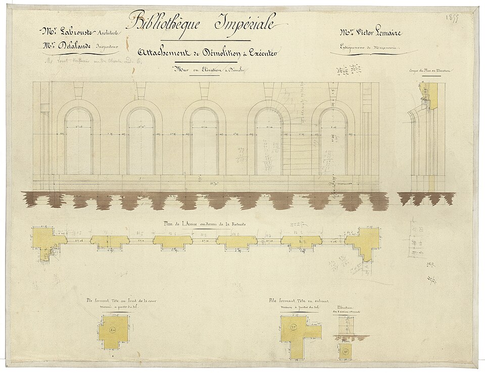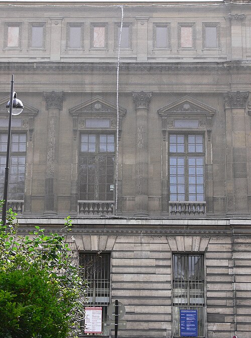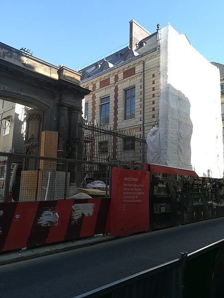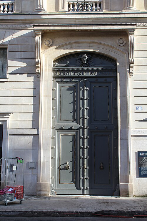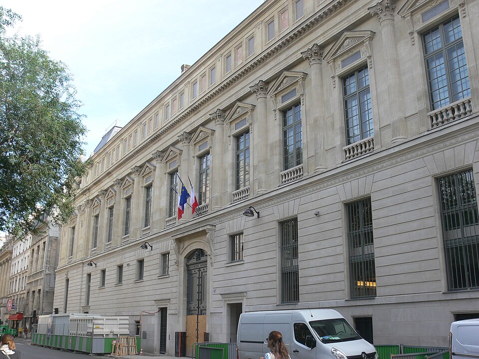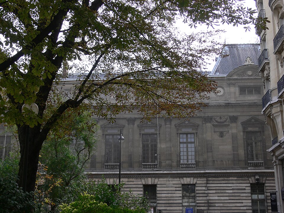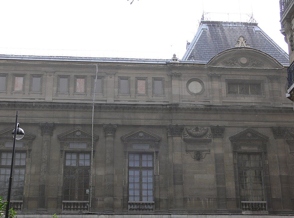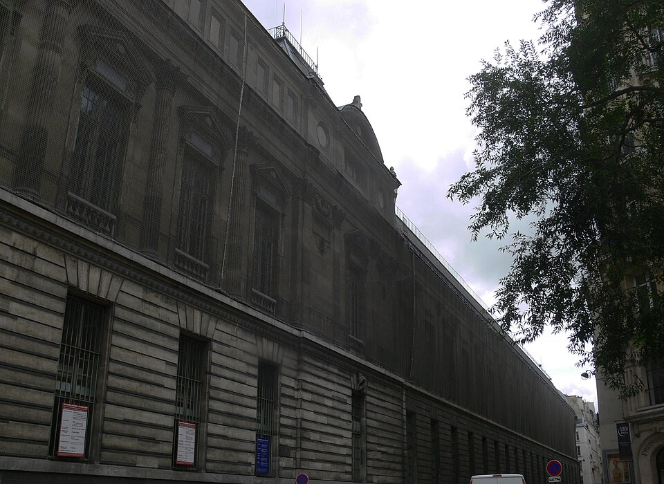 Ensemble des façades et des toitures sur rues, sur cours et sur jardins (sauf la façade est de Robert de Cotte) , le vestibule de la salle de lecture, la salle ovale (périodiques) , le salon de l'administration, le grand escalier d'honneur, la salle de lecture des manuscrits, la salle Barthélémy, le néo-cabinet du roi, l'escalier du Cabinet des Estampes (cad. 02 : 02 AE 43) : inscription par arrêté du 29 décembre 1983 - Façade est de Robert de Cotte sur la cour principale, les galeries Mansart et Mazarine avec leur vestibule, la pièce dite chambre de Mazarin, le plafond de la salle des vélins, la salle de travail du département des imprimés dite salle Labrouste (cad. 02 : 02 AE 43) : classement par arrêté du 29 décembre 1983