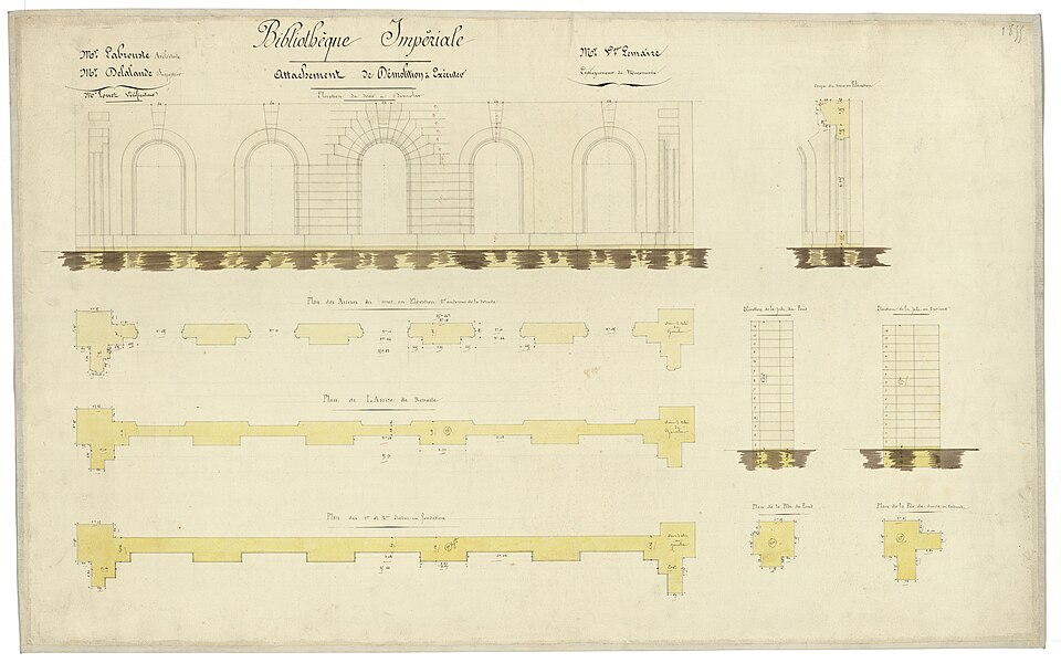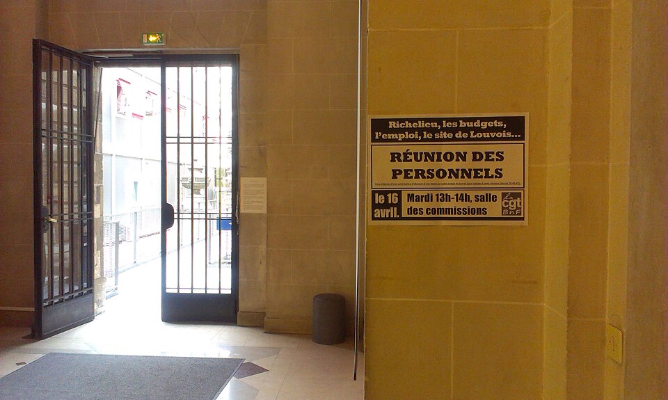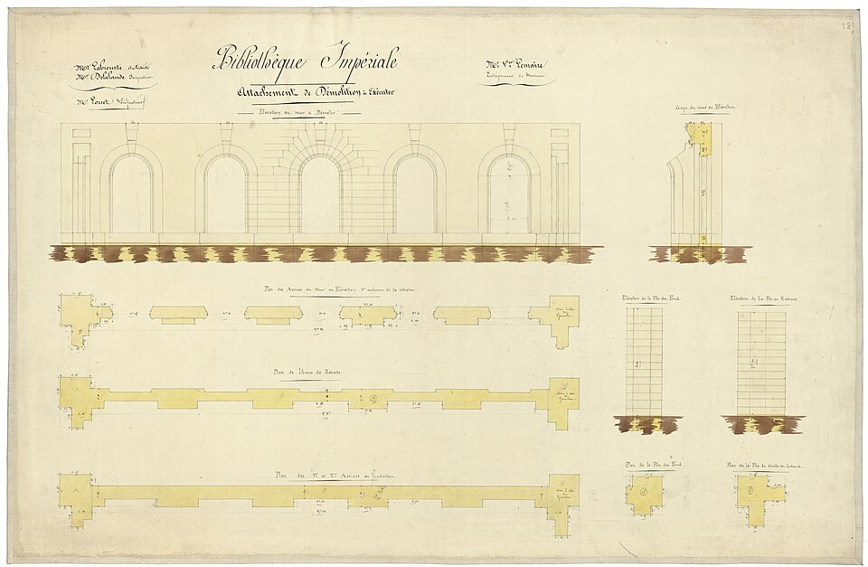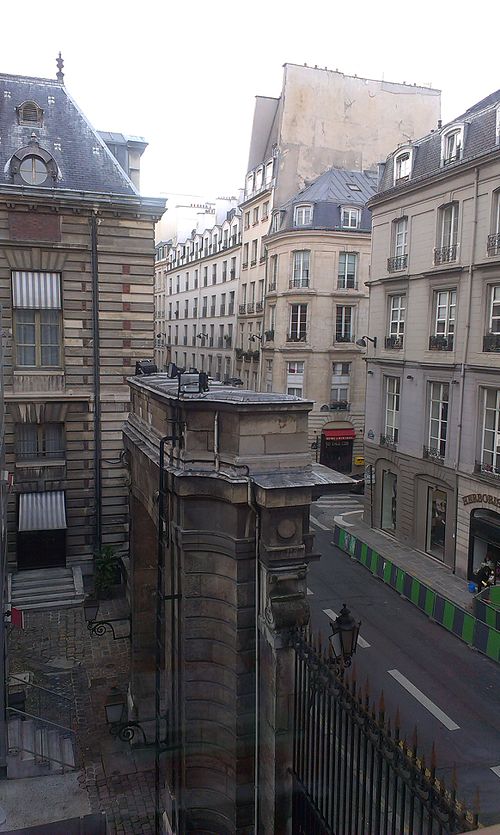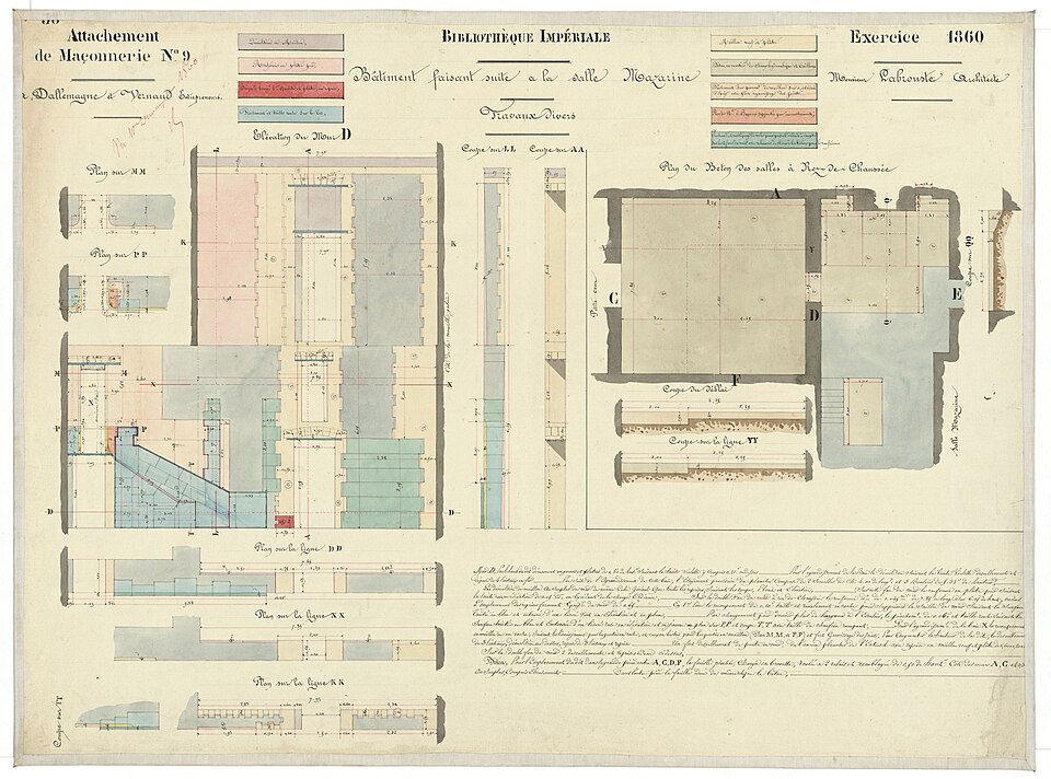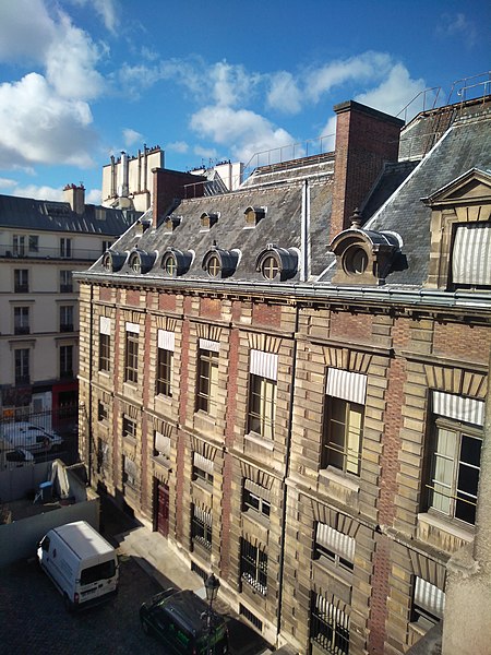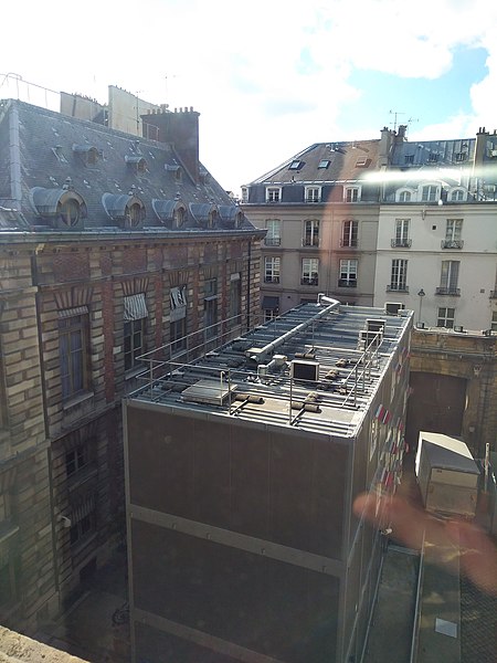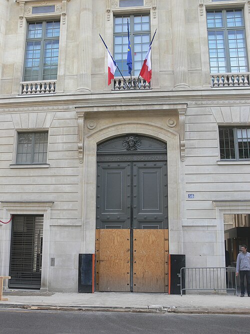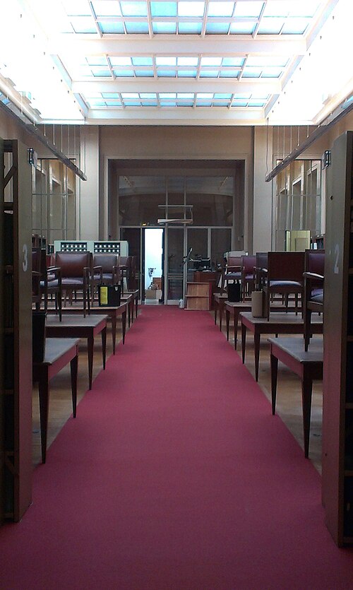 Ensemble des façades et des toitures sur rues, sur cours et sur jardins (sauf la façade est de Robert de Cotte) , le vestibule de la salle de lecture, la salle ovale (périodiques) , le salon de l'administration, le grand escalier d'honneur, la salle de lecture des manuscrits, la salle Barthélémy, le néo-cabinet du roi, l'escalier du Cabinet des Estampes (cad. 02 : 02 AE 43) : inscription par arrêté du 29 décembre 1983 - Façade est de Robert de Cotte sur la cour principale, les galeries Mansart et Mazarine avec leur vestibule, la pièce dite chambre de Mazarin, le plafond de la salle des vélins, la salle de travail du département des imprimés dite salle Labrouste (cad. 02 : 02 AE 43) : classement par arrêté du 29 décembre 1983