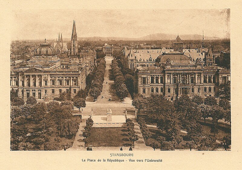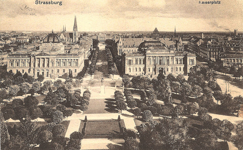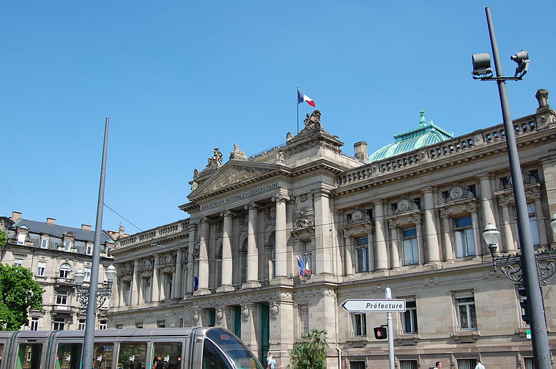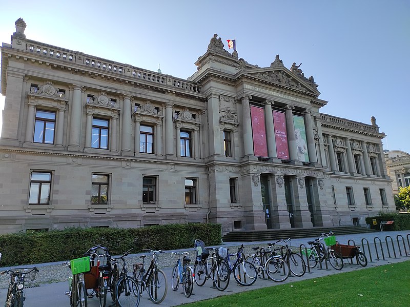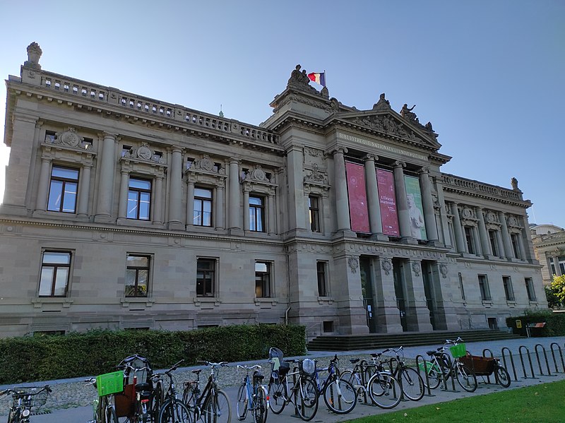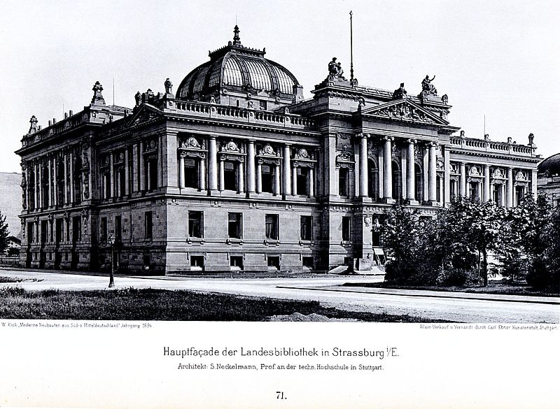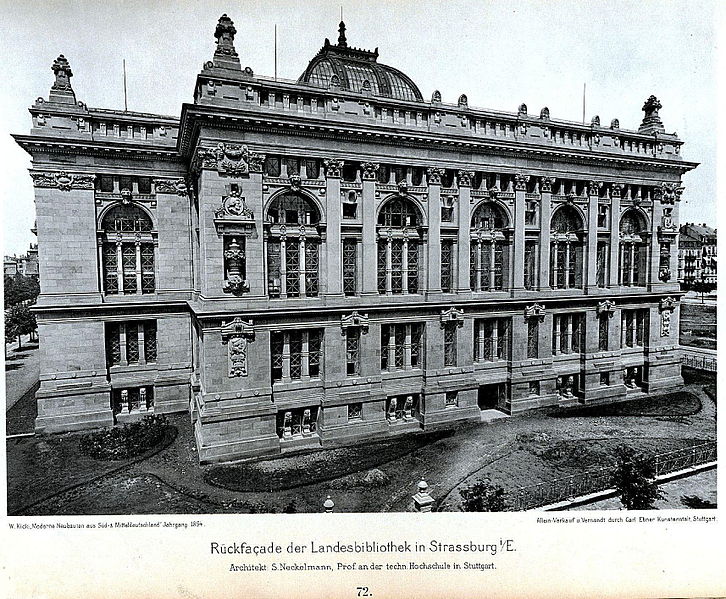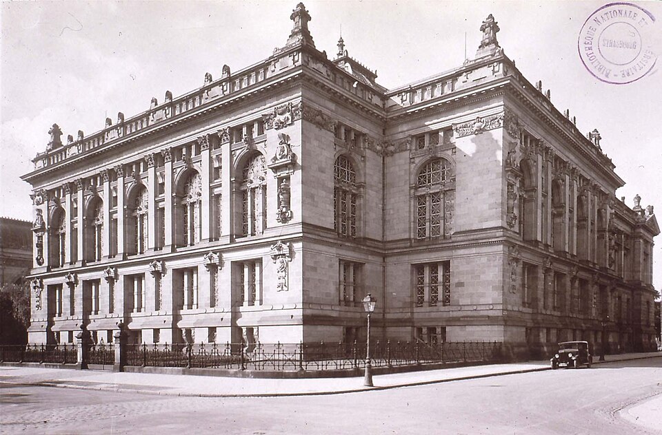 La bibliothèque prit officiellement le nom de Kaiserliche Universitäts- und Landesbibliothek zu Strassburg par déclaration du 19 juin 1872, confirmé par un décret du 29 juillet 1891. Le Palais Rohan devenant rapidement insuffisant, la bibliothèque intégra le bâtiment de la place de la République le 29 novembre 1895. De nombreux envois et dons originaires de bibliothèques et de libraires, ainsi que des apports tels que les 40 000 doubles venus de Königsberg (dont 27 incunables) et les 4 000 volumes offerts par l'empereur Guillaume I, contribuèrent à reconstituer et enrichir les collections ; en 1879 la bibliothèque comptait 386 073 volumes et figurait comme la quatrième d'Allemagne. Sous la direction de Julius Euting, la BNU constitua l’un des fonds d’orientalisme les plus riches d’Europe.