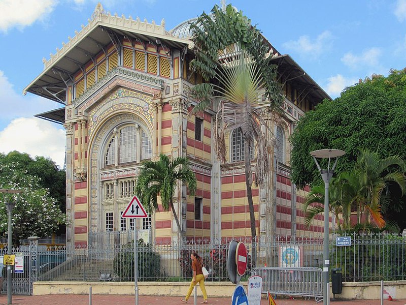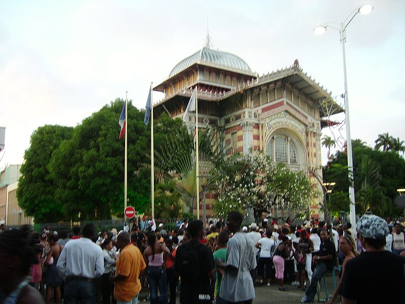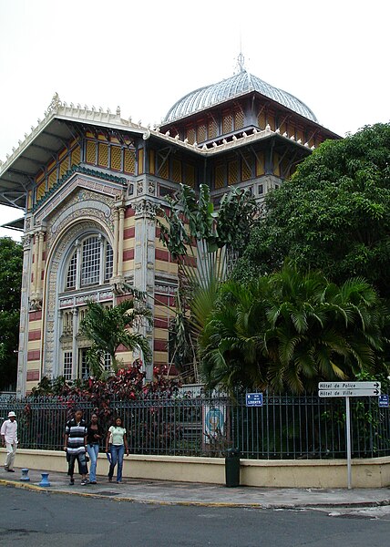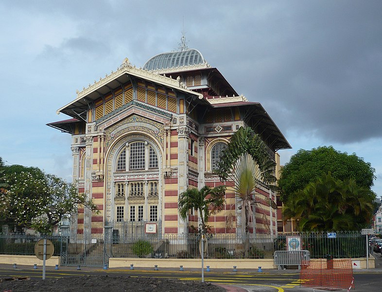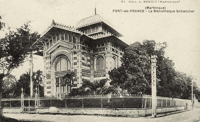 La bibliothèque Schœlcher, bibliothèque publique départementale de Fort-de-France en Martinique, porte le nom de l’homme politique et abolitionniste Victor Schœlcher et se situe à l’angle de la rue de la Liberté et de la rue Victor Sévère, face au coin nord de la place de la Savane. Victor Schœlcher, député de la Martinique et de la Guadeloupe de 1848 à 1850, légua sa collection de 10 000 livres et 250 partitions au conseil général de la Martinique à la condition que la bibliothèque soit ouverte à tous, notamment pour instruire les anciens esclaves, et placée sous la responsabilité d’un bibliothécaire attitré ; le premier bibliothécaire nommé fut Victor Cochinat. Le conseil général confia la conception du bâtiment à l’architecte Pierre-Henri Picq, qui érigea d’abord l’édifice entre 1886 et 1887 dans le jardin des Tuileries à Paris, puis le présenta comme pavillon de l’Indochine lors de l’Exposition universelle de 1889. Le bâtiment fut ensuite démonté, expédié par bateau et reconstruit sur le site de l’ancien Hôtel du Petit Gouvernement, au bord de la place de la Savane à Fort-de-France. Les travaux subirent plusieurs interruptions, liées notamment à une mise en examen judiciaire de l’entreprise de construction, au grand incendie de Fort-de-France en 1890 qui détruisit la plupart des livres originaux, et au cyclone tropical du 18 août 1891 ; la bibliothèque ouvrit enfin en 1893. Le bâtiment présente un plan carré de 17,75 m de côté et un porche rectangulaire ; sa charpente métallique en courbe pyramidale et sa grande coupole de verre abritent la salle de lecture. Le squelette métallique rappelle celui de la cathédrale Saint-Louis, autre œuvre de Pierre-Henri Picq, et le style de l’édifice mêle influences byzantines, art nouveau, art égyptien et éléments du classicisme occidental, avec des frises portant les noms de grands écrivains français et un fronton extérieur en mosaïque très coloré. Une grande partie des livres envoyés de métropole dès 1884 fit partie du don initial ; environ 1 200 volumes échappèrent à l’incendie de 1890, parmi lesquels un exemplaire de Quatrevingt-treize dédicacé par Victor Hugo. Parmi les pièces remarquables figurent également un Code noir et un traité de navigation en latin du XVIIe siècle. La bibliothèque conserve aujourd’hui un fonds d’environ 130 000 ouvrages, dont un important fonds antillais. L’édifice est inscrit à l’inventaire supplémentaire des monuments historiques depuis le 15 mars 1973 et classé au titre des monuments historiques depuis le 5 janvier 1993.
