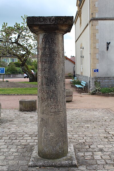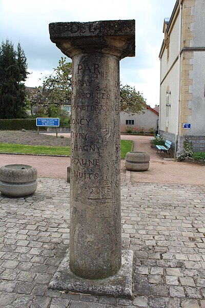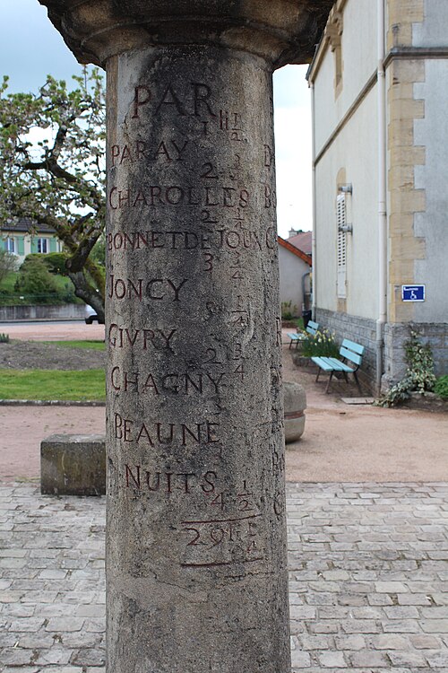 La borne itinéraire de Saint-Yan, borne routière de l'ancien régime, se trouve place de la mairie à Saint-Yan (Saône‑et‑Loire, Bourgogne‑Franche‑Comté). Elle est implantée au carrefour des routes départementales D 982 et D 352. Historiquement, elle matérialisait la bifurcation de la route n°16 de la Champagne, près de Châtillon, vers le Lyonnais et le Forez (Roanne) par Semur, Saulieu, Autun, Digoin et Marcigny, ainsi que de la route n°38, qui se dirigeait vers Mâcon par Charolles. La pierre indique également la direction de Dijon par Charolles, Joncy, Givry et Chagny, celle de Moulins par Chevagnes et celle de Decize par Bourbon‑Lancy. Placée en évidence devant la mairie, elle est peinte en noir pour faciliter la lecture des directions et des distances. La borne est inscrite au titre des monuments historiques depuis le 13 mars 1950.