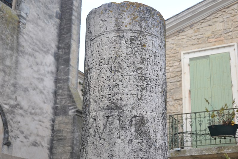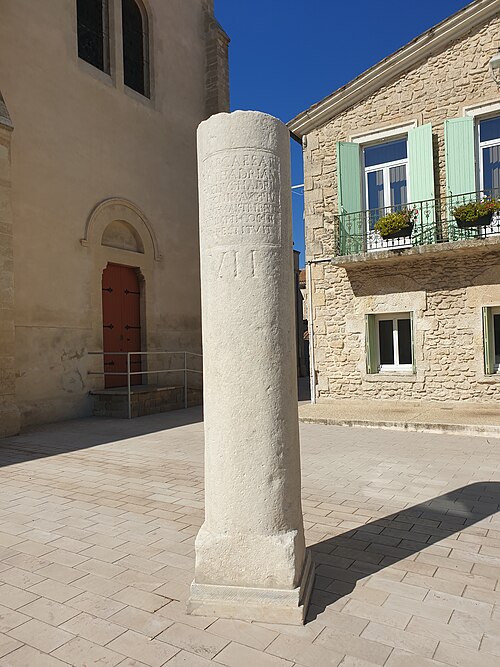 La borne milliaire d'Antonin-le-Pieux se trouve sur la commune de Manduel (Gard), au centre de la place de la Mairie. Au moins quatre autres bornes milliaires sont également présentes sur cette commune. La borne est classée au titre des monuments historiques en 1973. Des références et ressources sont disponibles : notice Mérimée, cote CIL 17-02, 00223, page sur Wikimedia Commons et portails consacrés aux monuments historiques, au Gard, à la Rome antique et à l'archéologie. Elle figure par ailleurs dans les listes des bornes milliaires de France protégées aux monuments historiques et des monuments historiques du Gard.