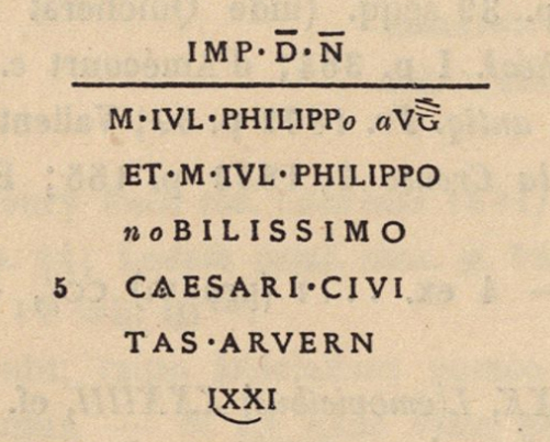 La borne milliaire de Vichy est une borne gallo-romaine découverte en 1880 à Vichy (Allier) et exposée depuis dans le grand hall des thermes des Dômes. Elle marquait la distance jusqu'à Clermont-Ferrand (Civitas Arvernorum) sur la voie romaine reliant Autun à la capitale auvergnate. Il s'agit en réalité d'une borne leugaire indiquant des lieues, et non d'une borne milliaire au sens strict. La pierre, en arkose, mesure 2,35 m de haut dont 1,78 m visibles et 0,65 m de diamètre. Sur l'un de ses côtés, un champ vertical porte une inscription honorant l'empereur Philippe l'Arabe et son fils, suivie de l'indication L XXI, c'est‑à‑dire 21 lieues depuis Clermont-Ferrand (environ 50 km). Le texte abrégé gravé est « IMP D N M PHILIPPO AUG E M IUL PHILIPPO NOBILISSIMO CAESARI CIVI TAS ARVERN L XXI », développé en latin et traduit par « Notre maître l'empereur Marcus Philippe Auguste et Marcus Julius Philippe, très noble César. Civitas Arvernorum, 21 lieues ». La borne a été érigée vers 248–249, sous le règne de Philippe l'Arabe, alors que Vichy dépendait de la cité des Arvernes, rattachée à la Gallia Aquitania. L'ancienne voie romaine de Clermont à Autun traversait la ville, correspondant à l'actuelle avenue Victoria. Lors de sa découverte en 1880, la borne était posée horizontalement dans l'angle nord‑est du mur d'enceinte de l'ancien cimetière du Vieux‑Moûtier, le côté non gravé tourné vers l'extérieur ; elle a ensuite été déplacée dans le hall des thermes des Dômes. La borne a été classée au titre des monuments historiques en 1916.