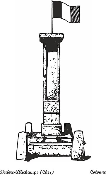 Une seconde borne similaire, signalée par de Caylus et retrouvée dans les mêmes circonstances, est mentionnée dans les corpus anciens mais n’a pas été retrouvée ultérieurement et est considérée comme disparue. La borne de Bruère-Allichamps reste un témoin rare des milliaires antiques portant une triple indication de voies, liées au réseau routier et aux stations de la cité des Bituriges Cubi.